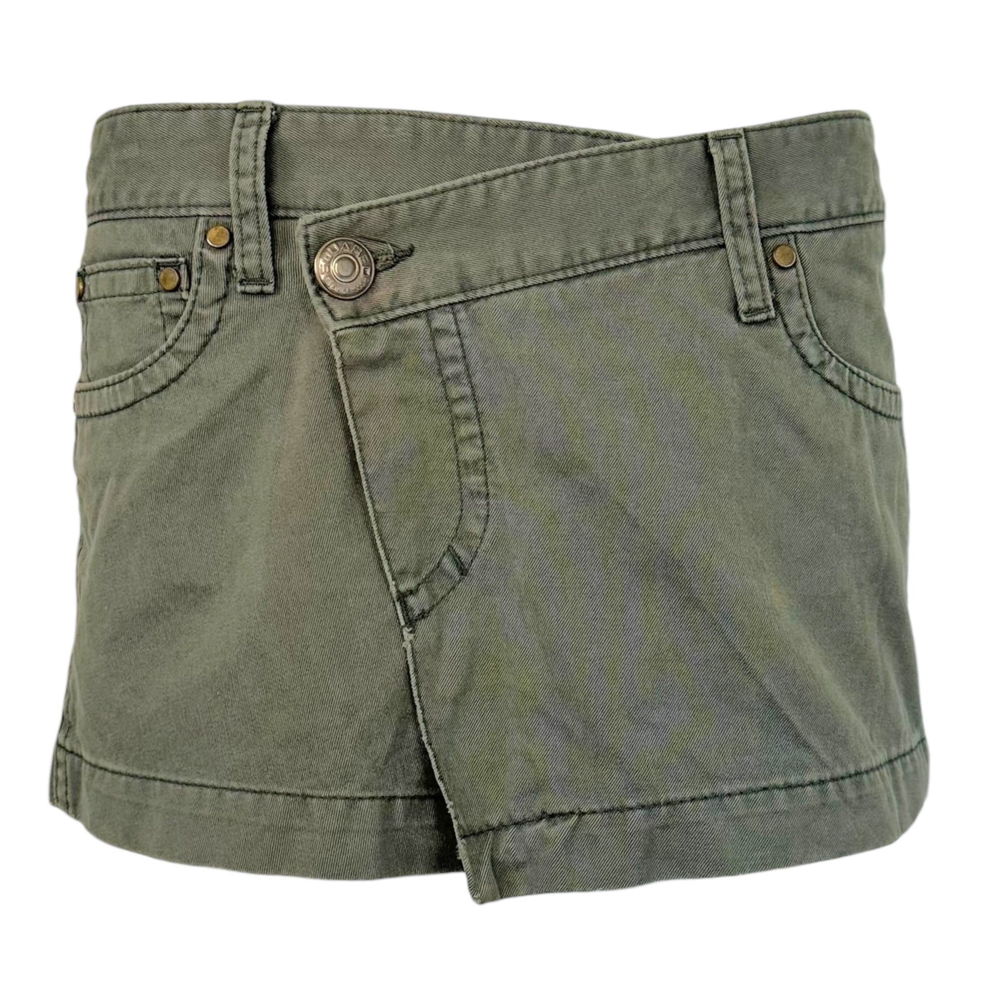 Dsquared2 Khaki Green Wrap Micro Mini Skirt