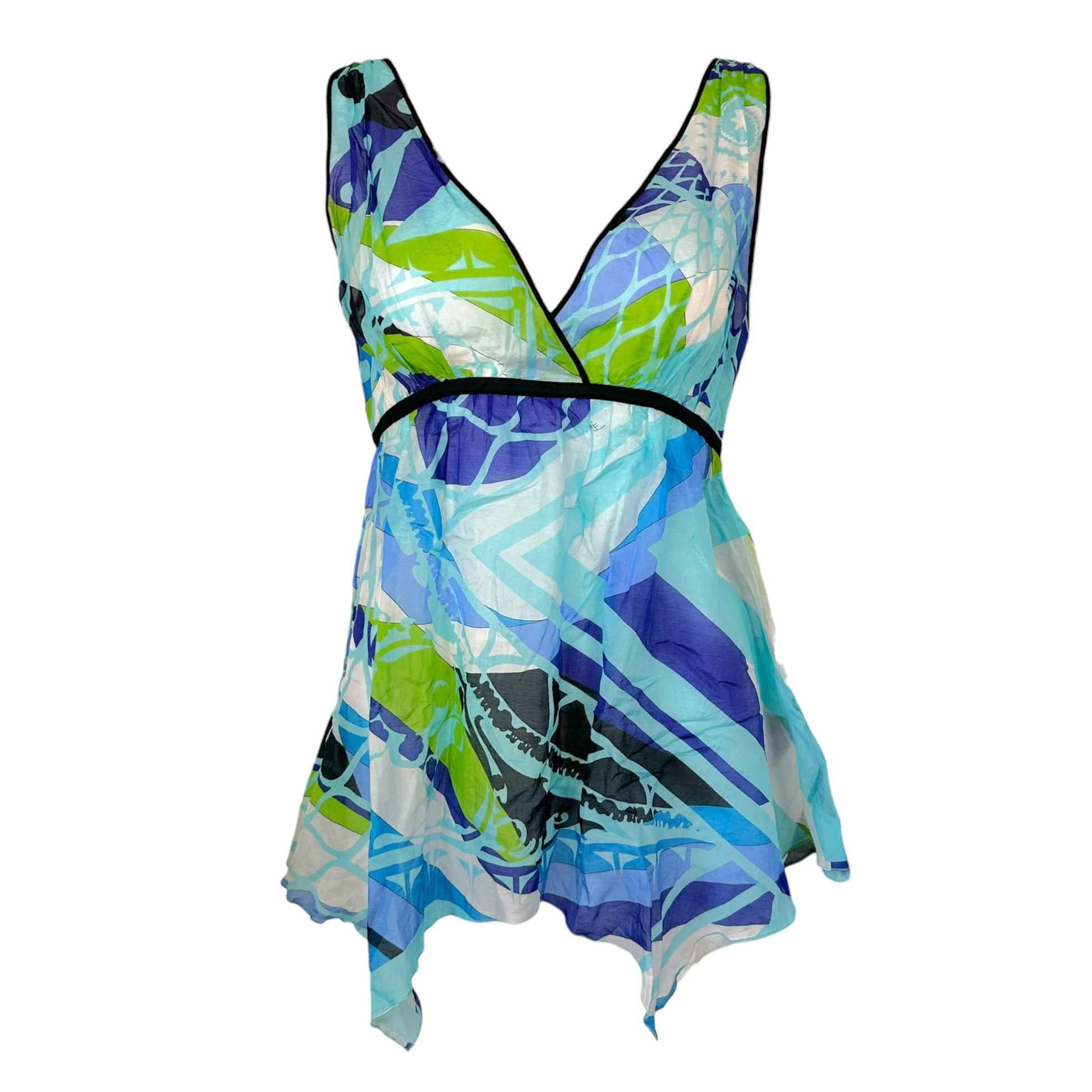 Emilio Pucci Blue & Green Silk Blend Semi-Sheer Blouse Top