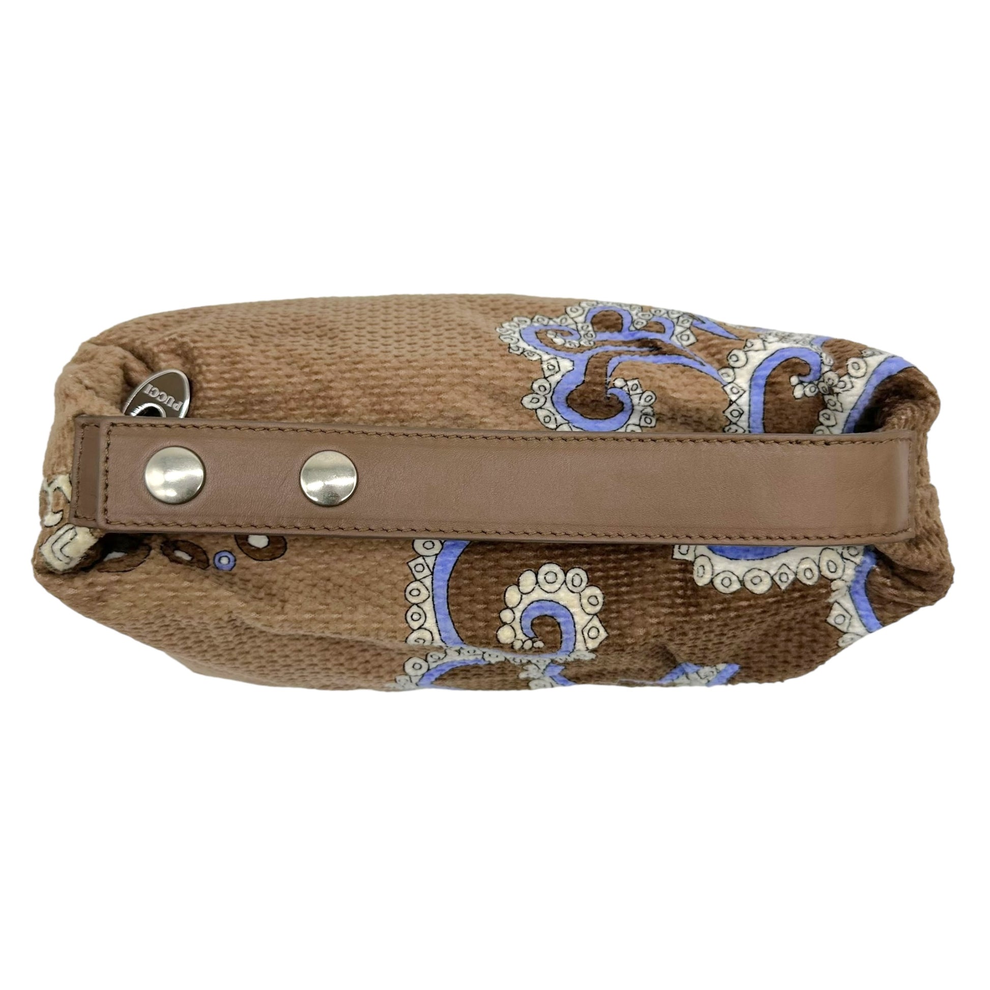 Emilio Pucci Brown & Blue Corduroy Printed Pochette Bag