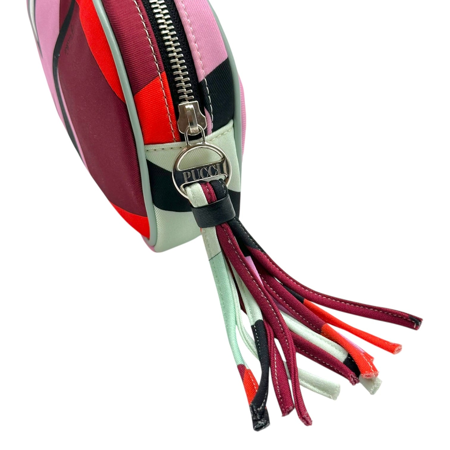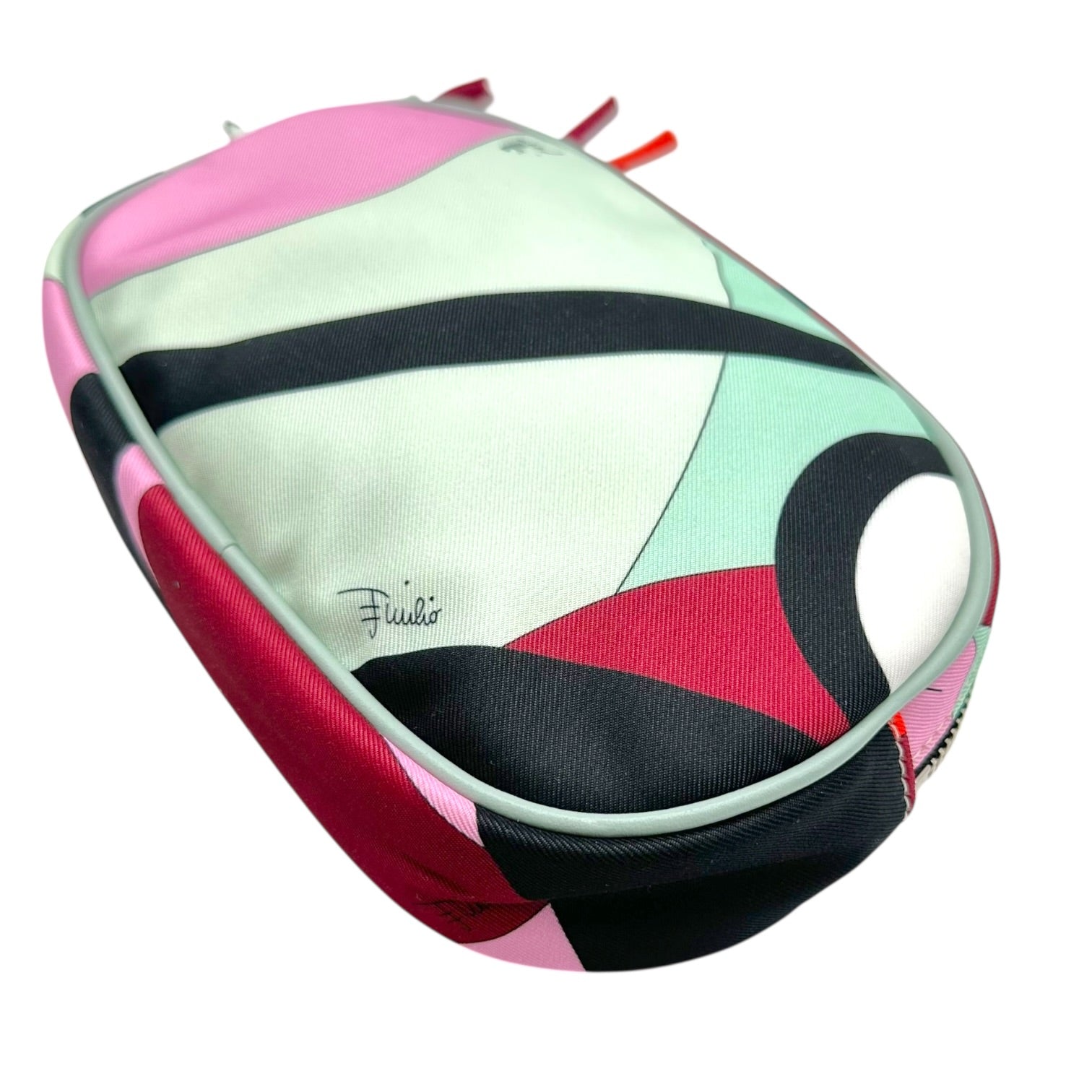 Emilio Pucci Burgundy & Blue Patterned Silk Cosmetic Pouch