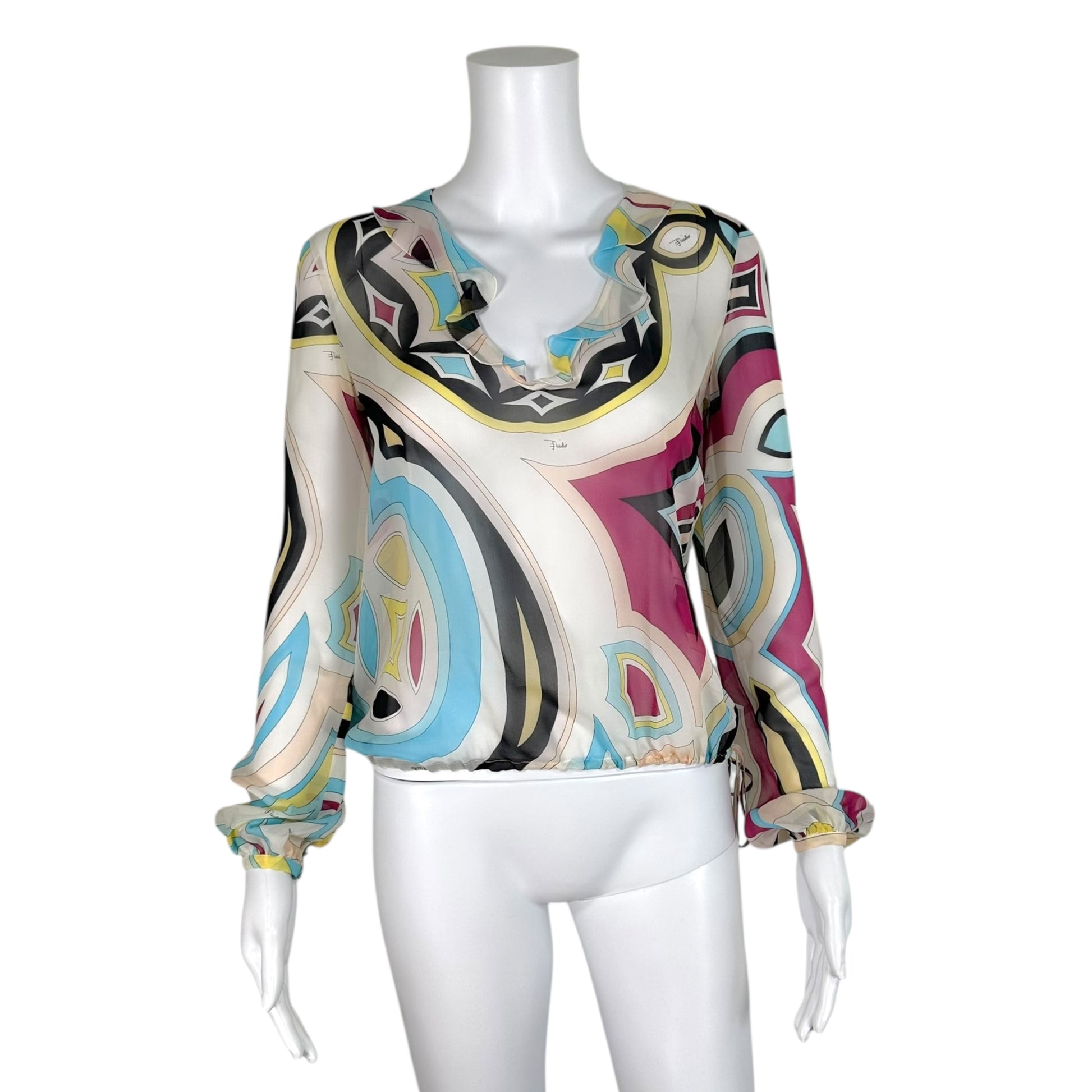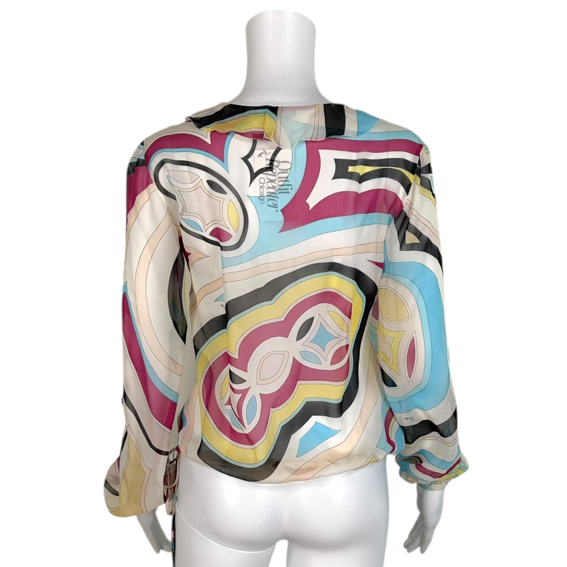 Emilio Pucci Pink & Blue Printed Sheer Silk Blouse