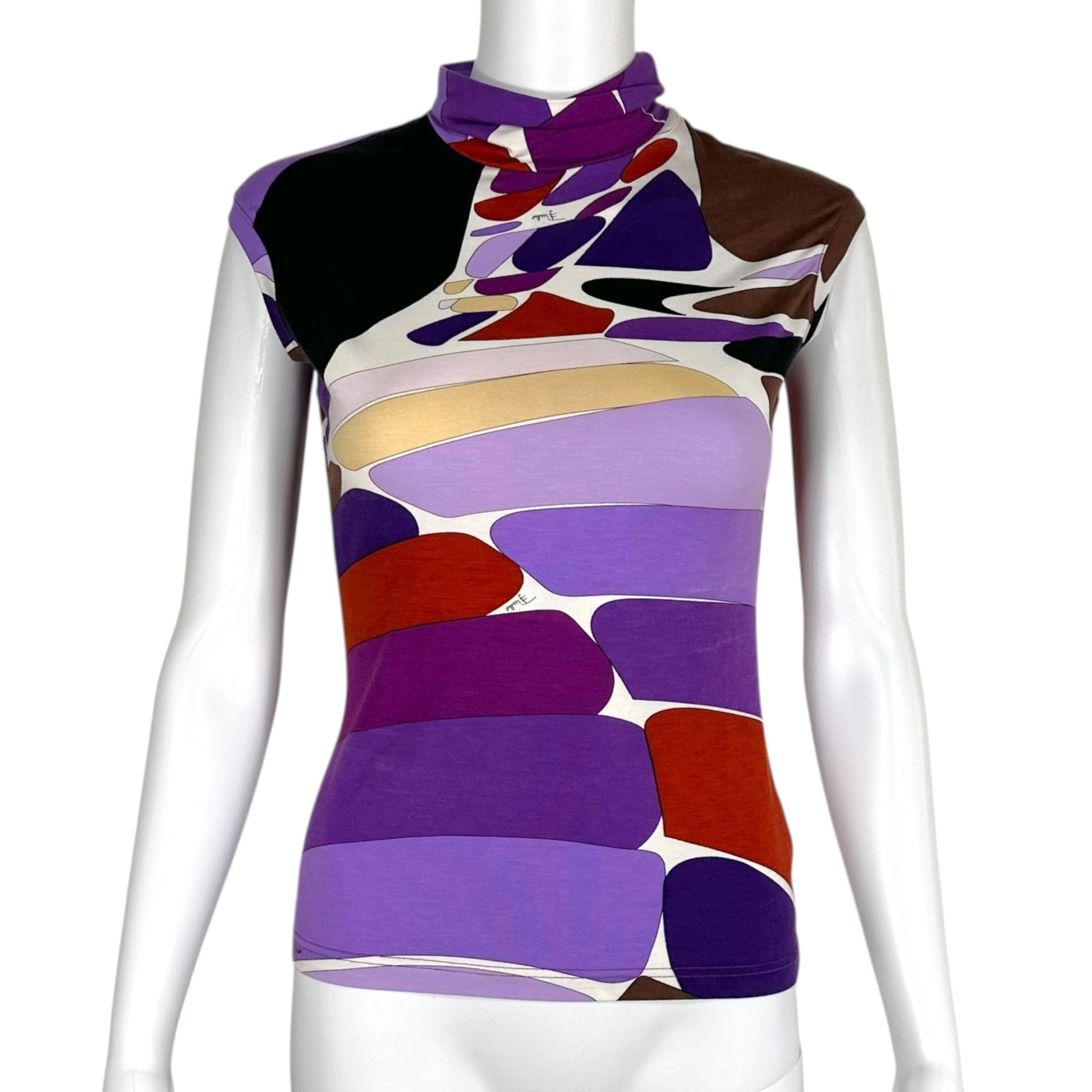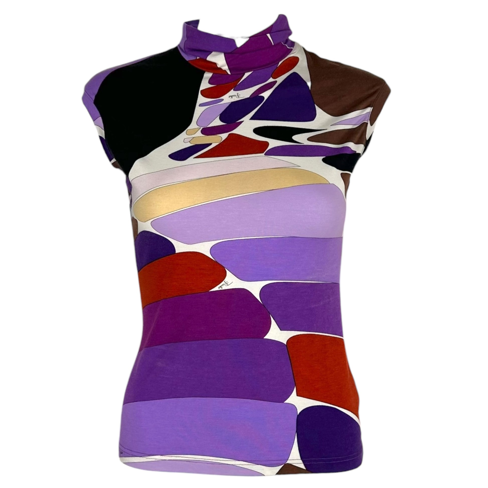 Emilio Pucci Purple Printed Mock Neck T-Shirt