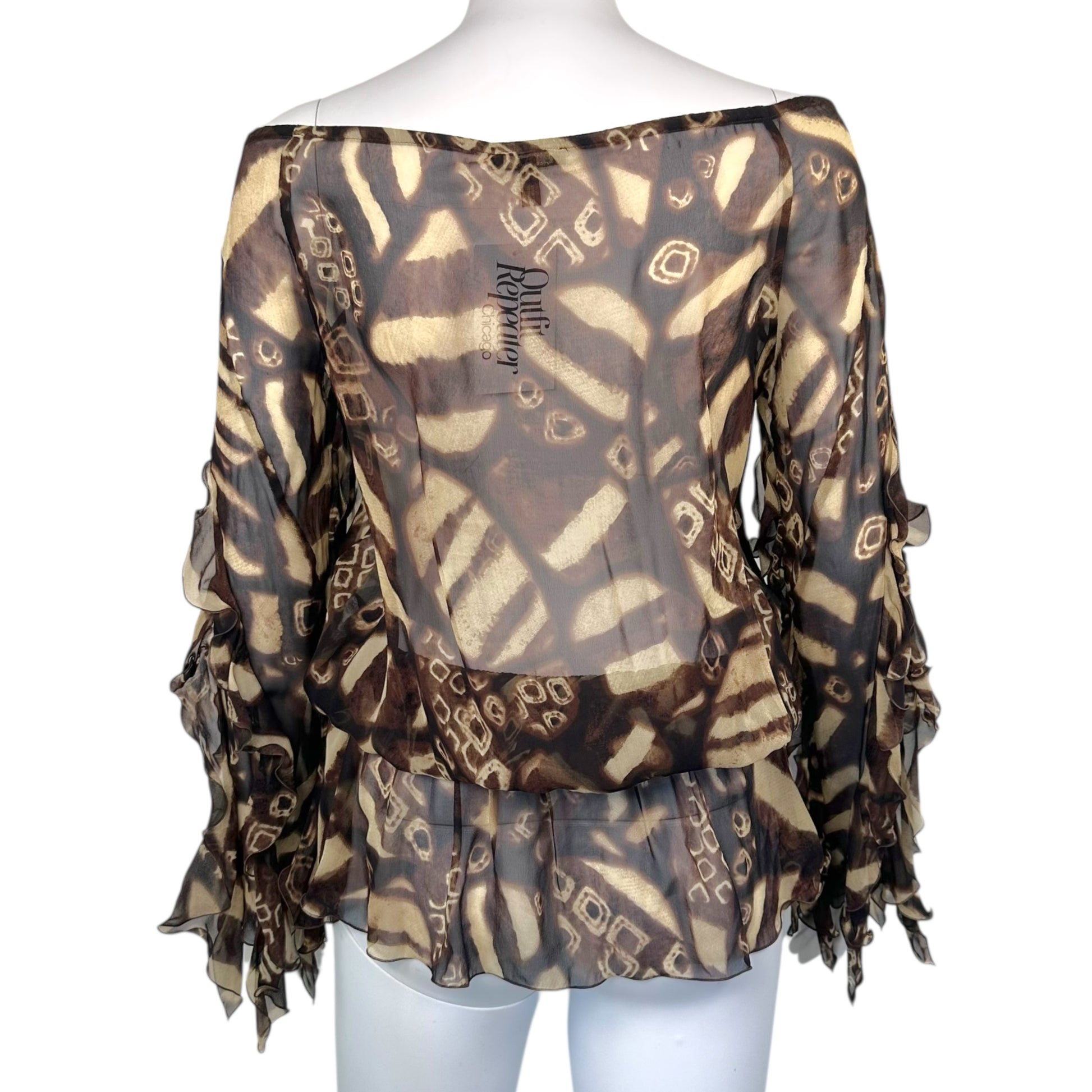 Escada Semi-Sheer Silk Off Shoulder Ruffle Blouse