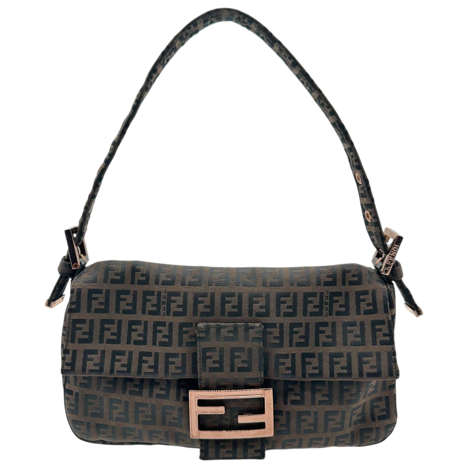 Fendi Black & Brown Zucchino Baguette Bag