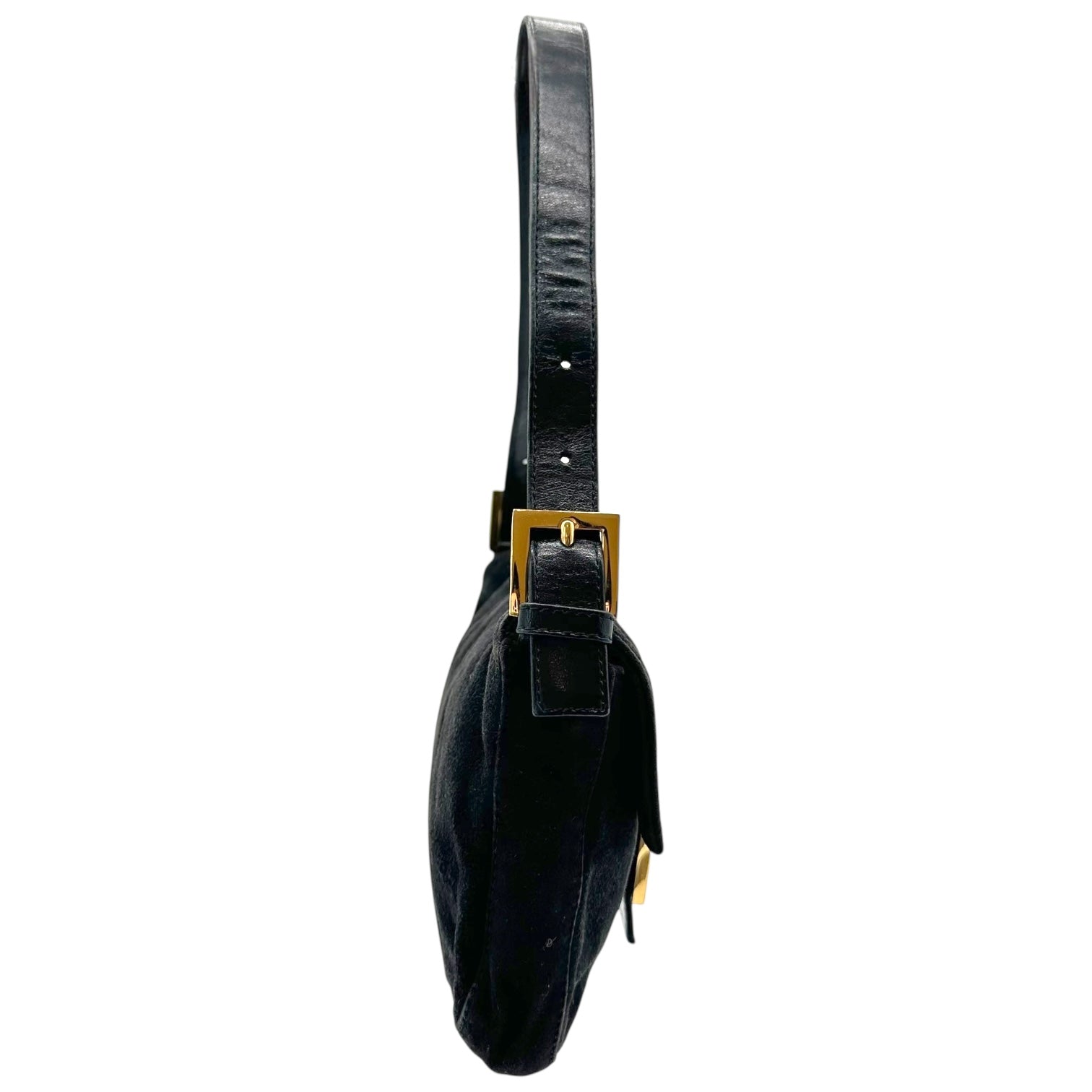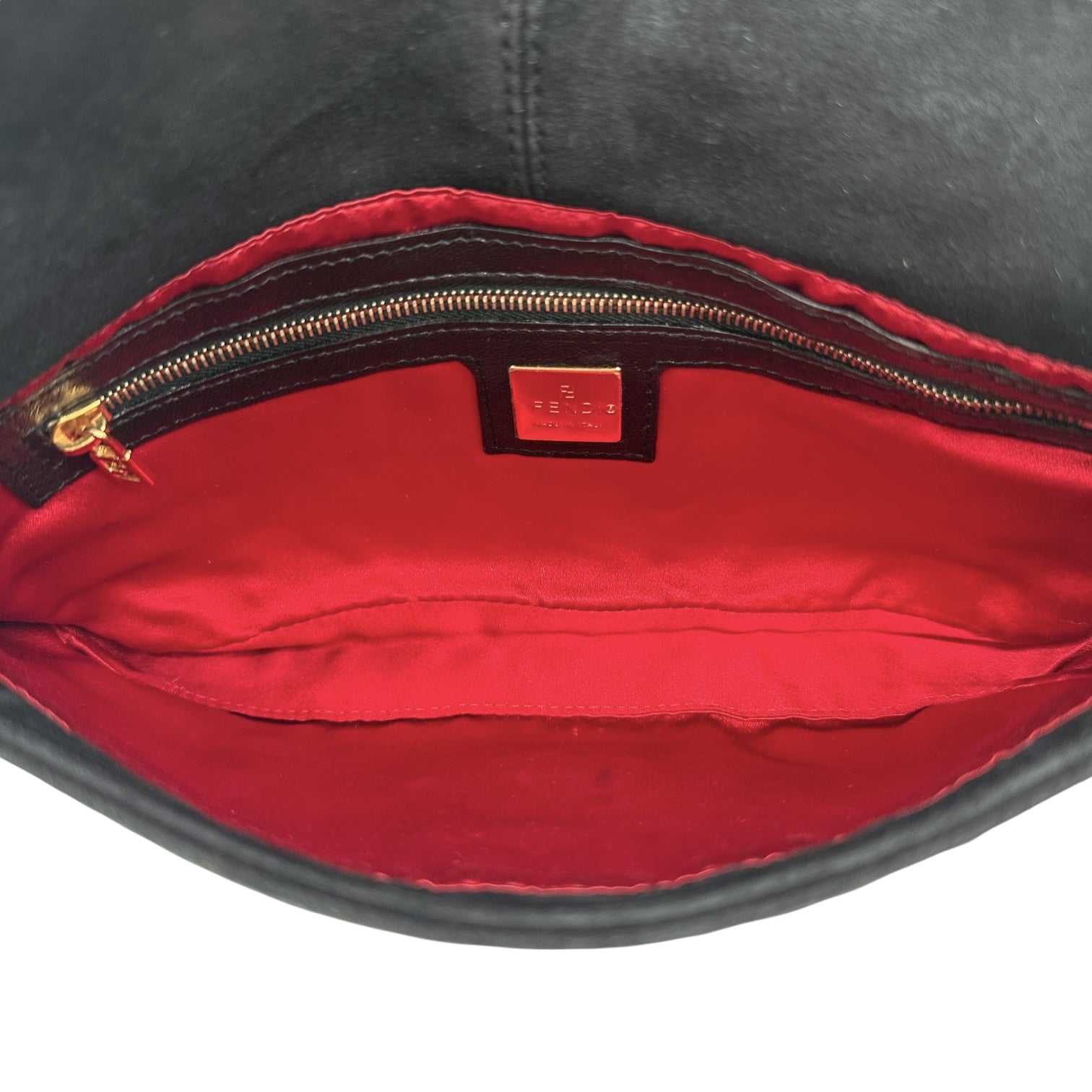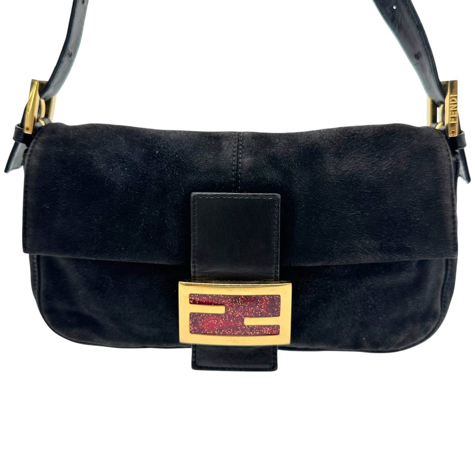 Fendi Black Suede & Red Glitter Enamel Baguette Bag