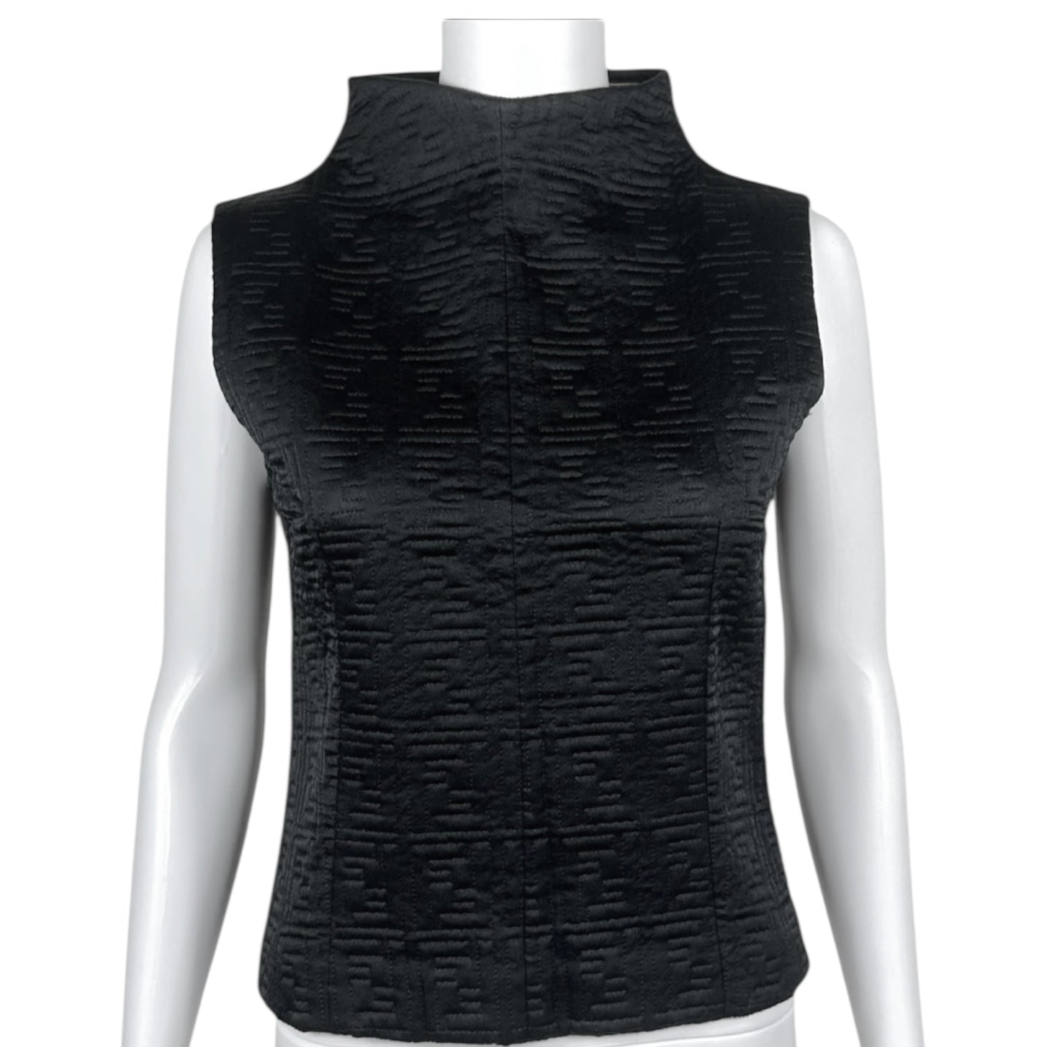 Fendi Black Zucchino Monogram Embroidered Silk Mock-Neck Top