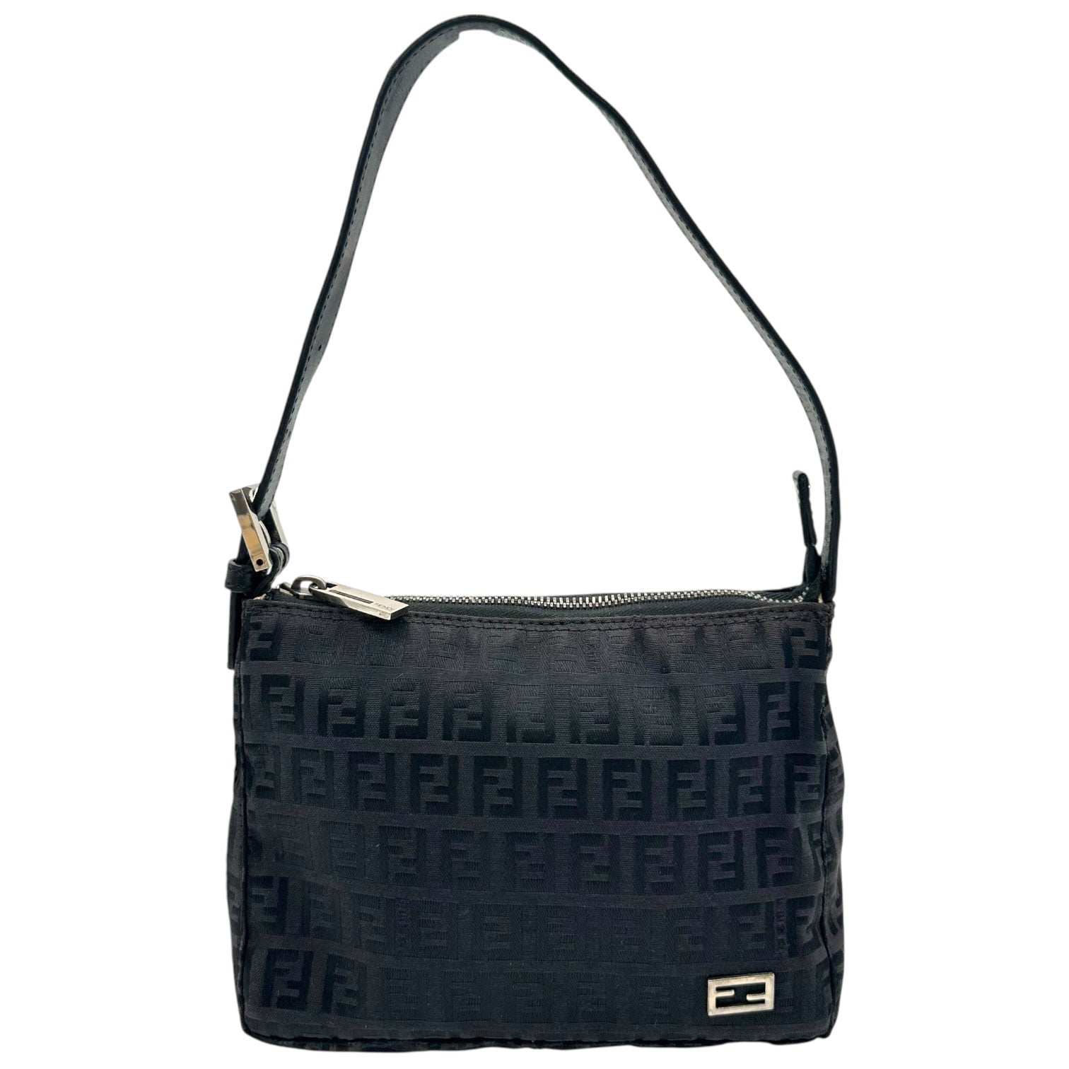 Fendi Black Zucchino Monogram Shoulder Pochette Bag
