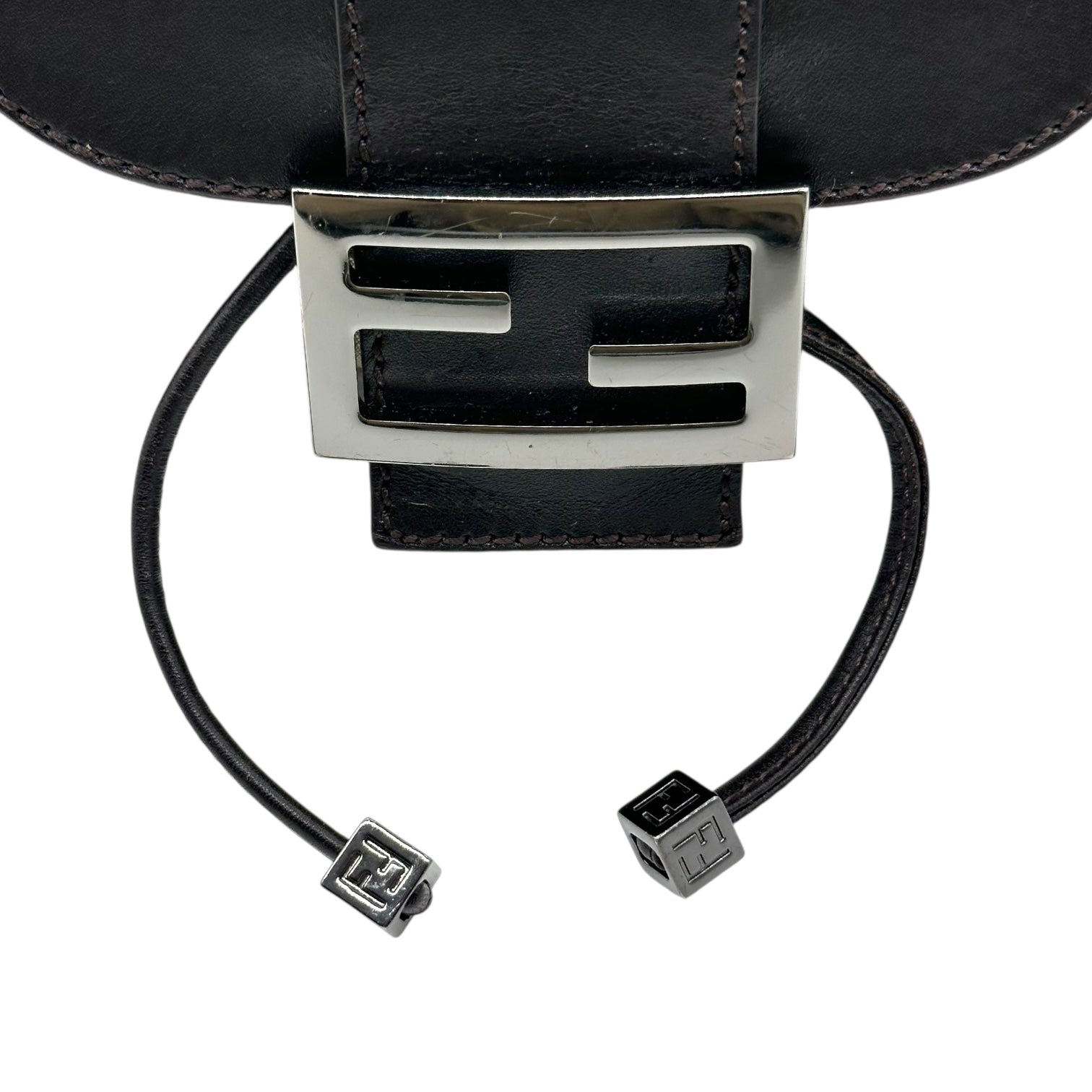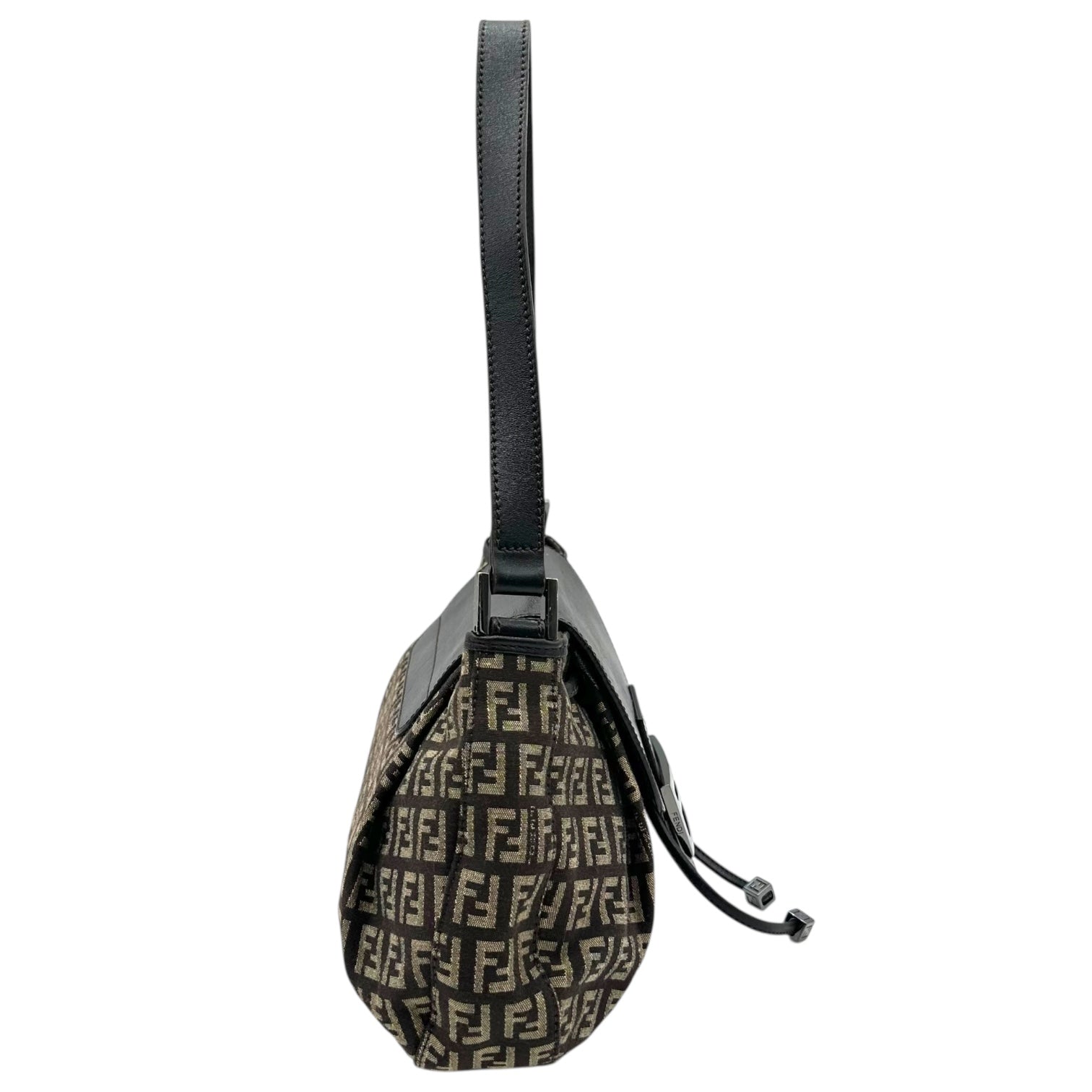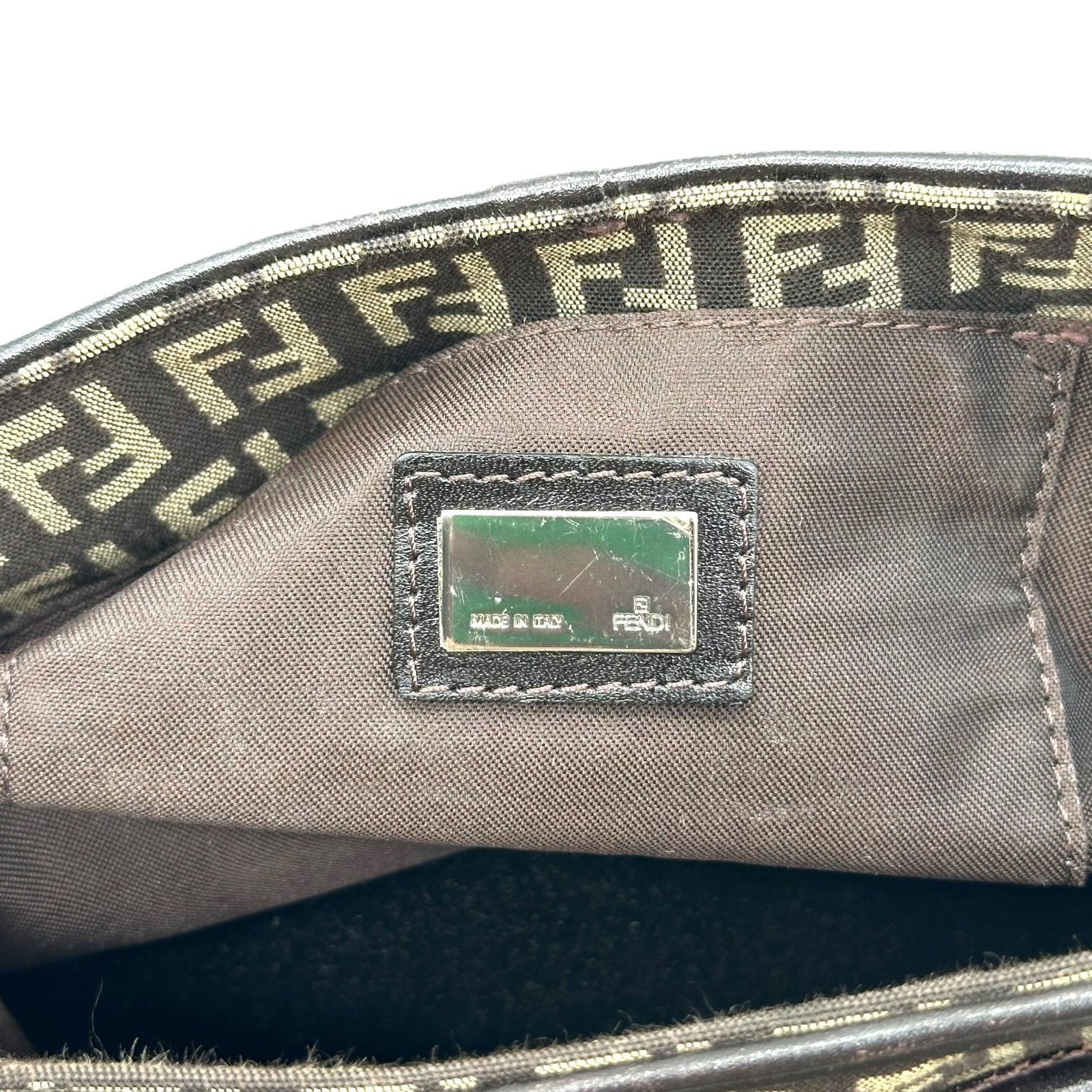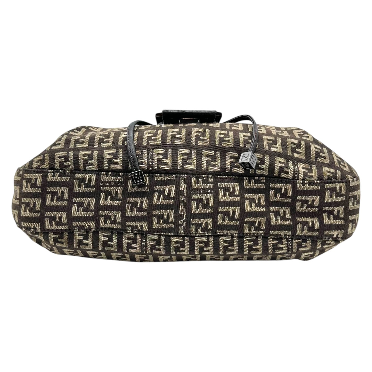 Fendi Brown Zucchino Monogram Drawstring Baguette Bag