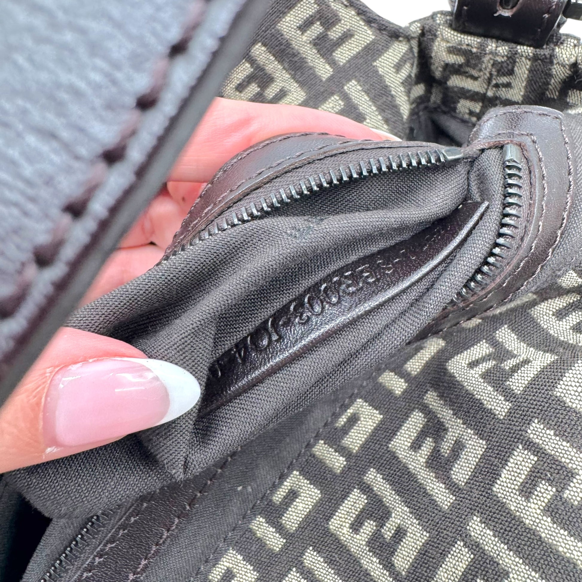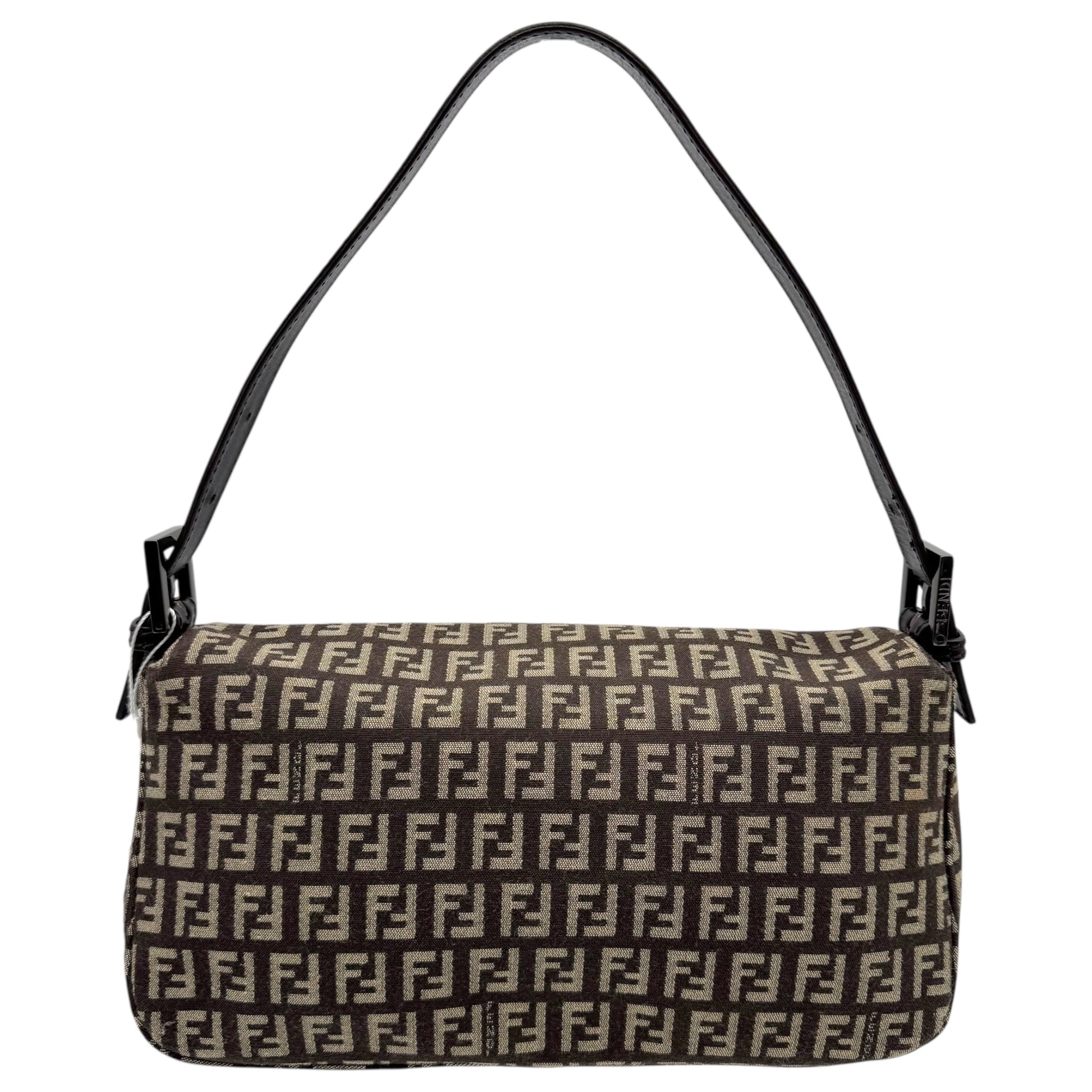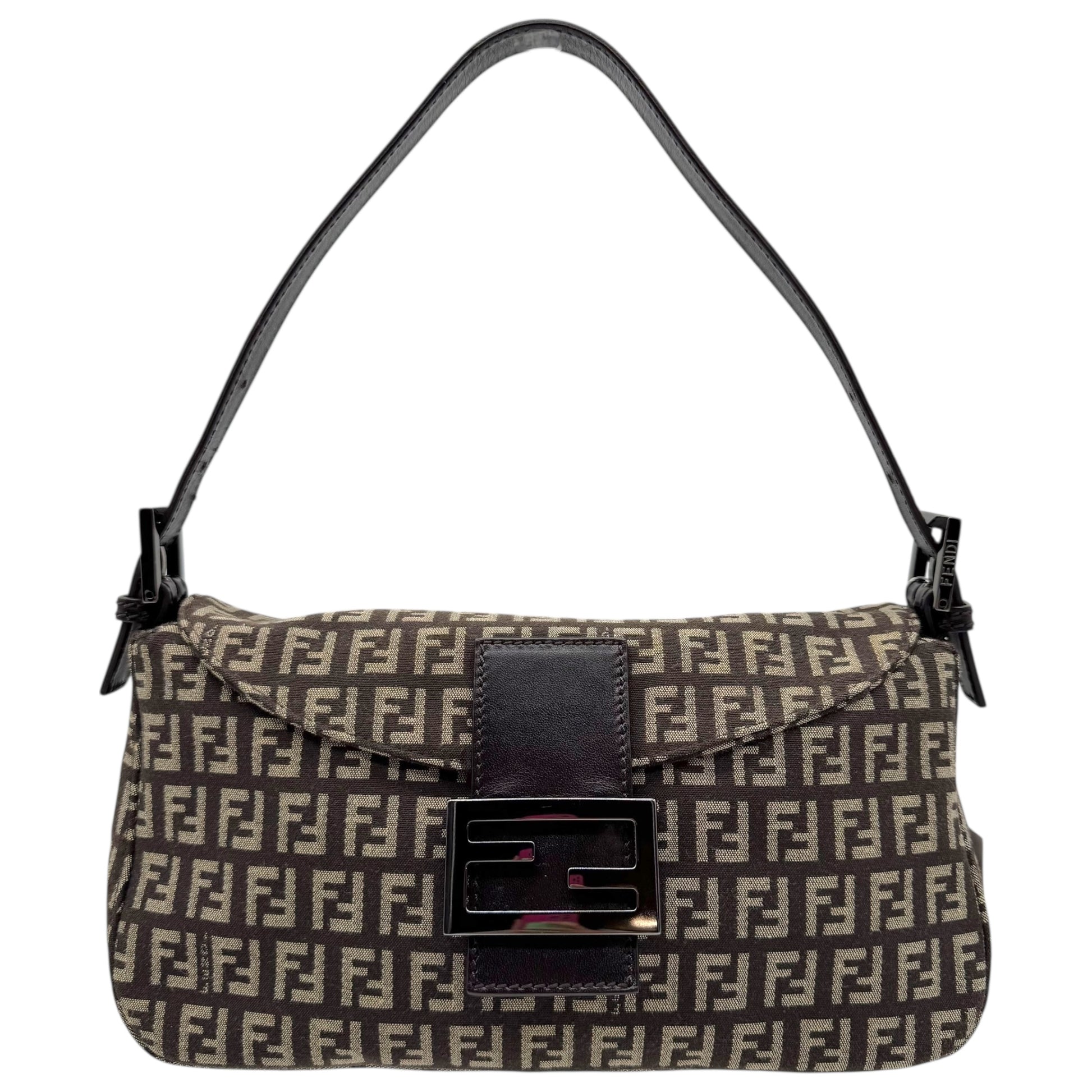 Fendi Brown Zucchino Monogram Fold-Over Baguette Bag