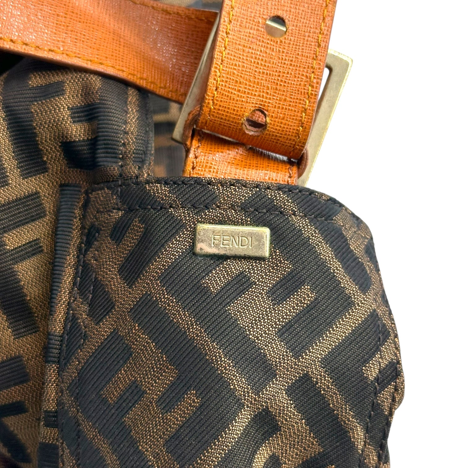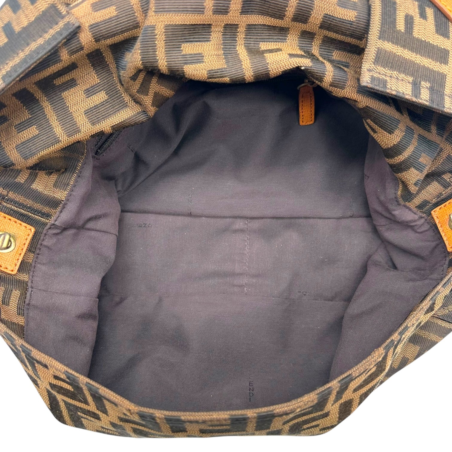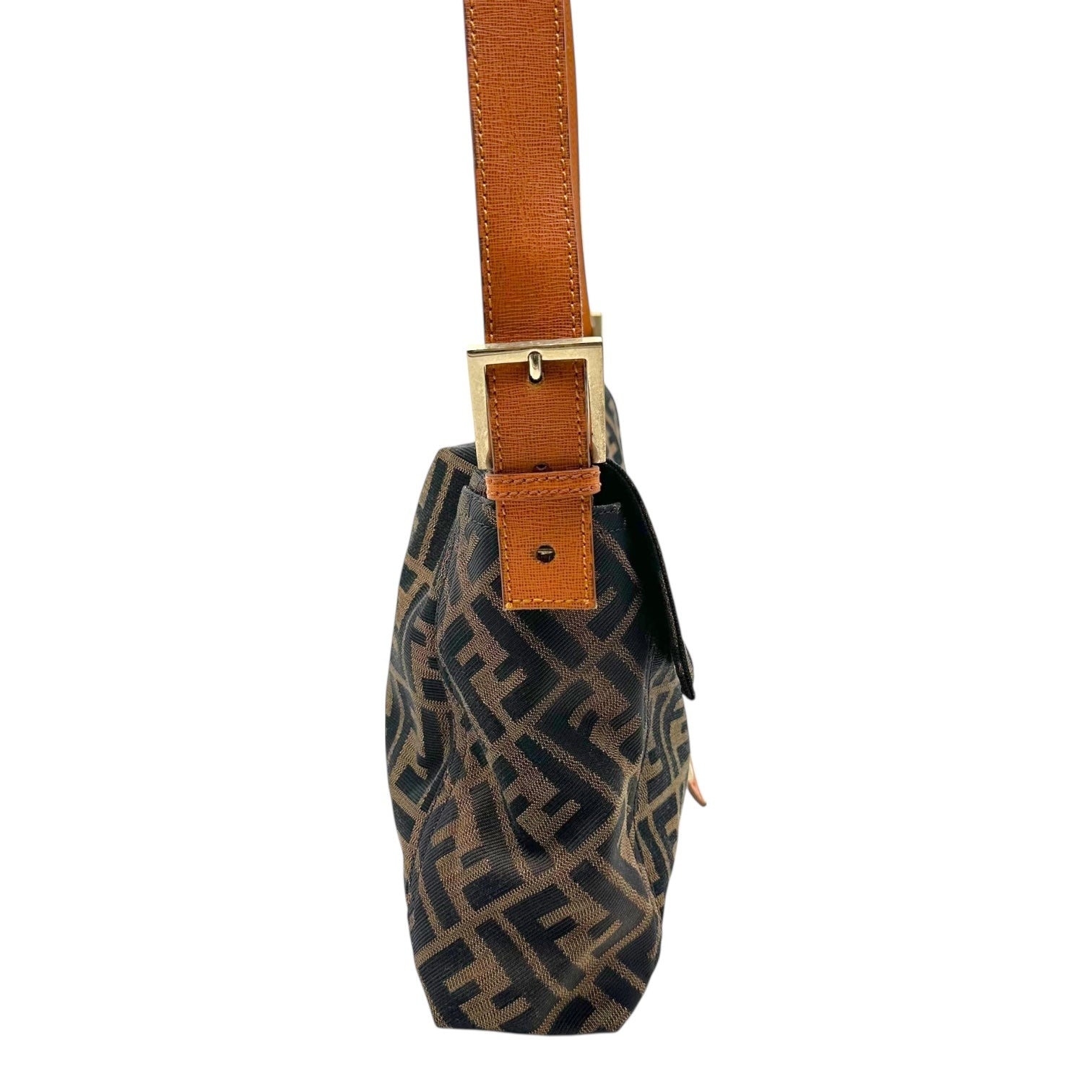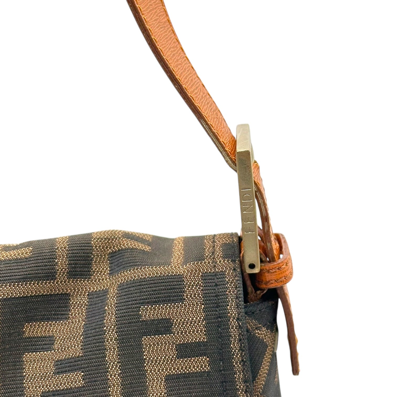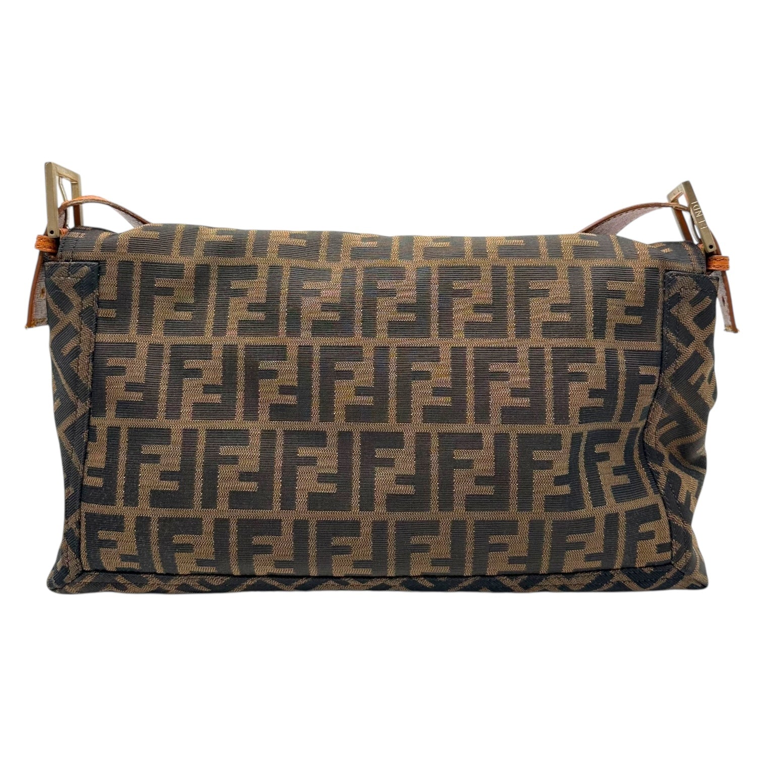 Fendi Classic Zucca Monogram & Cognac Leather Oversized Baguette Crossbody Bag