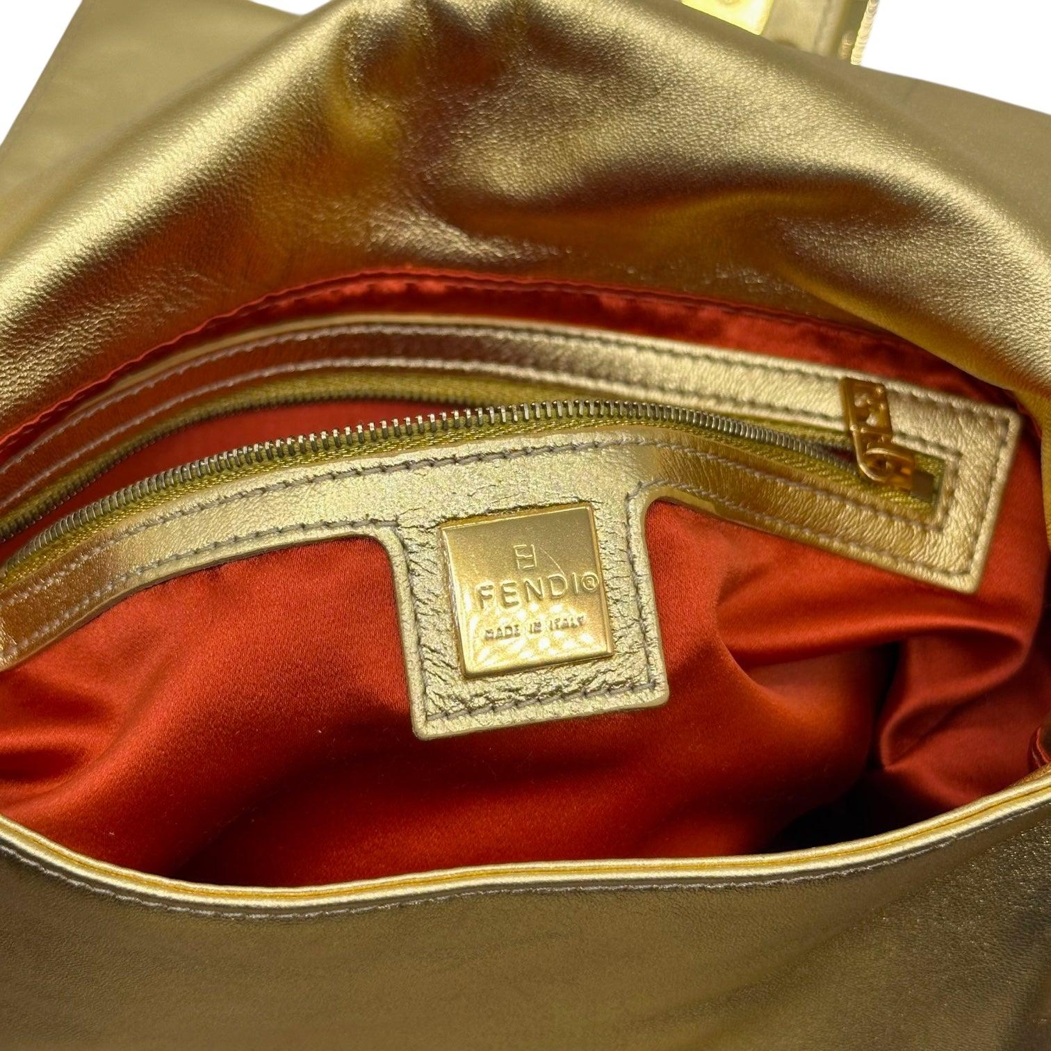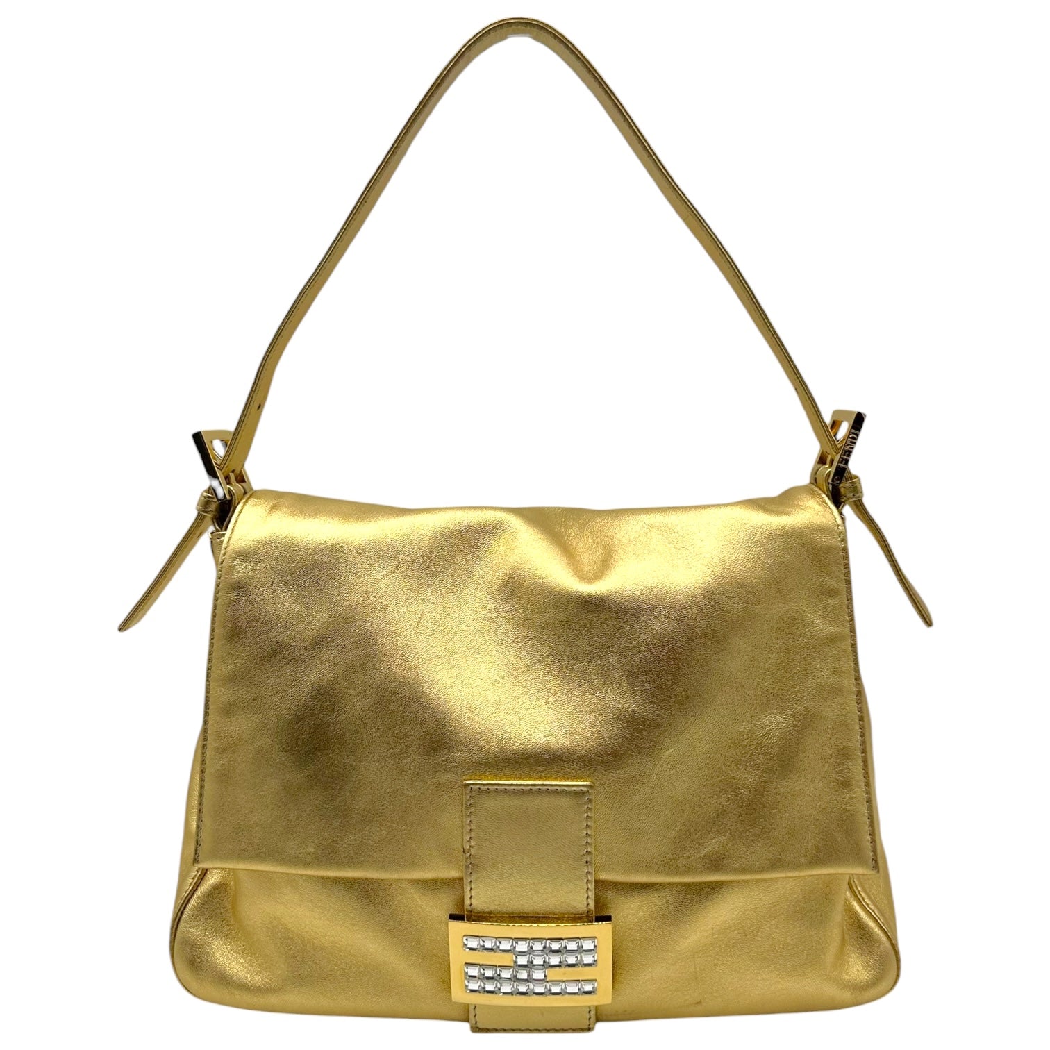 Fendi Gold Leather & Crystal Mama Baguette Bag