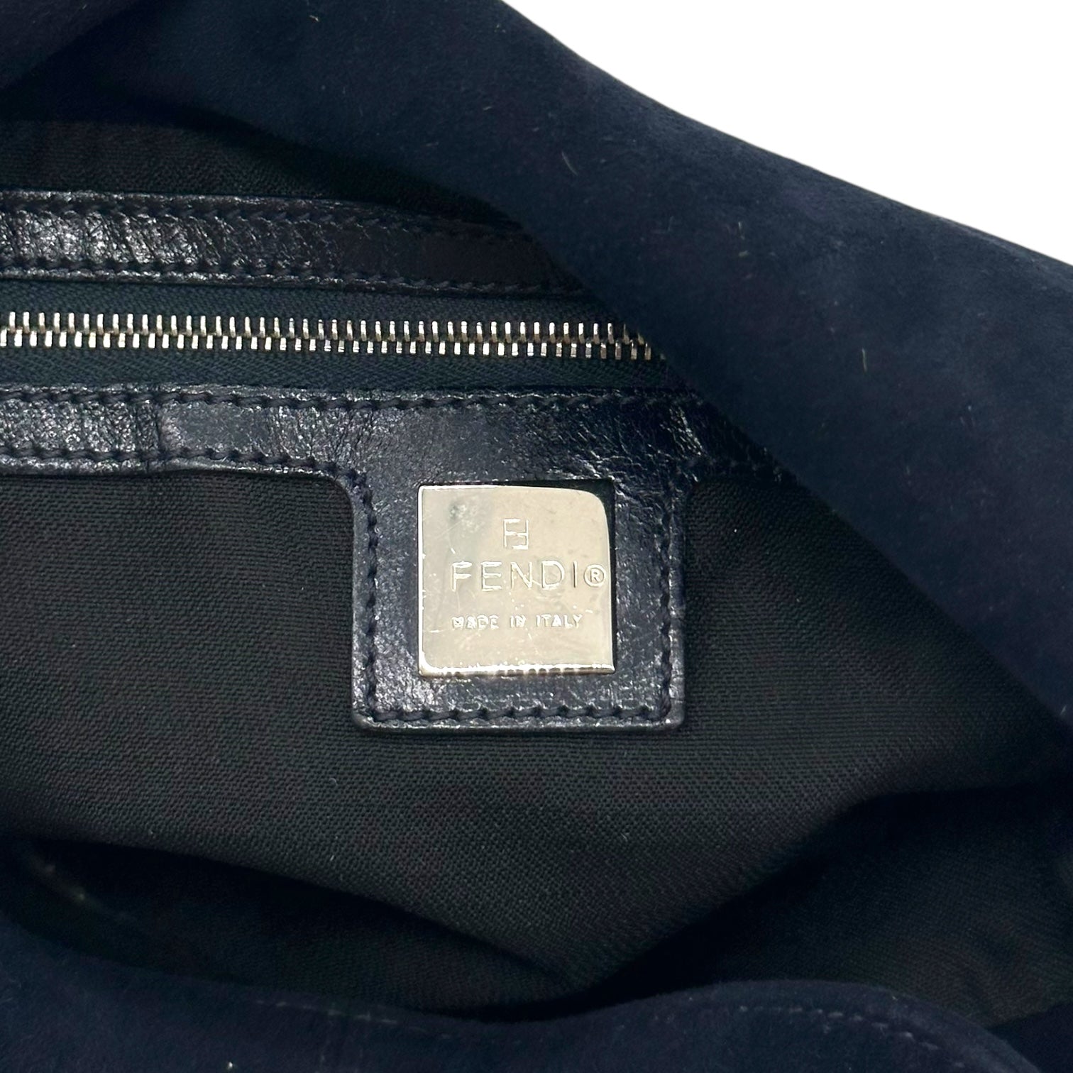 Fendi Navy Blue Suede Fold-Over Baguette Bag