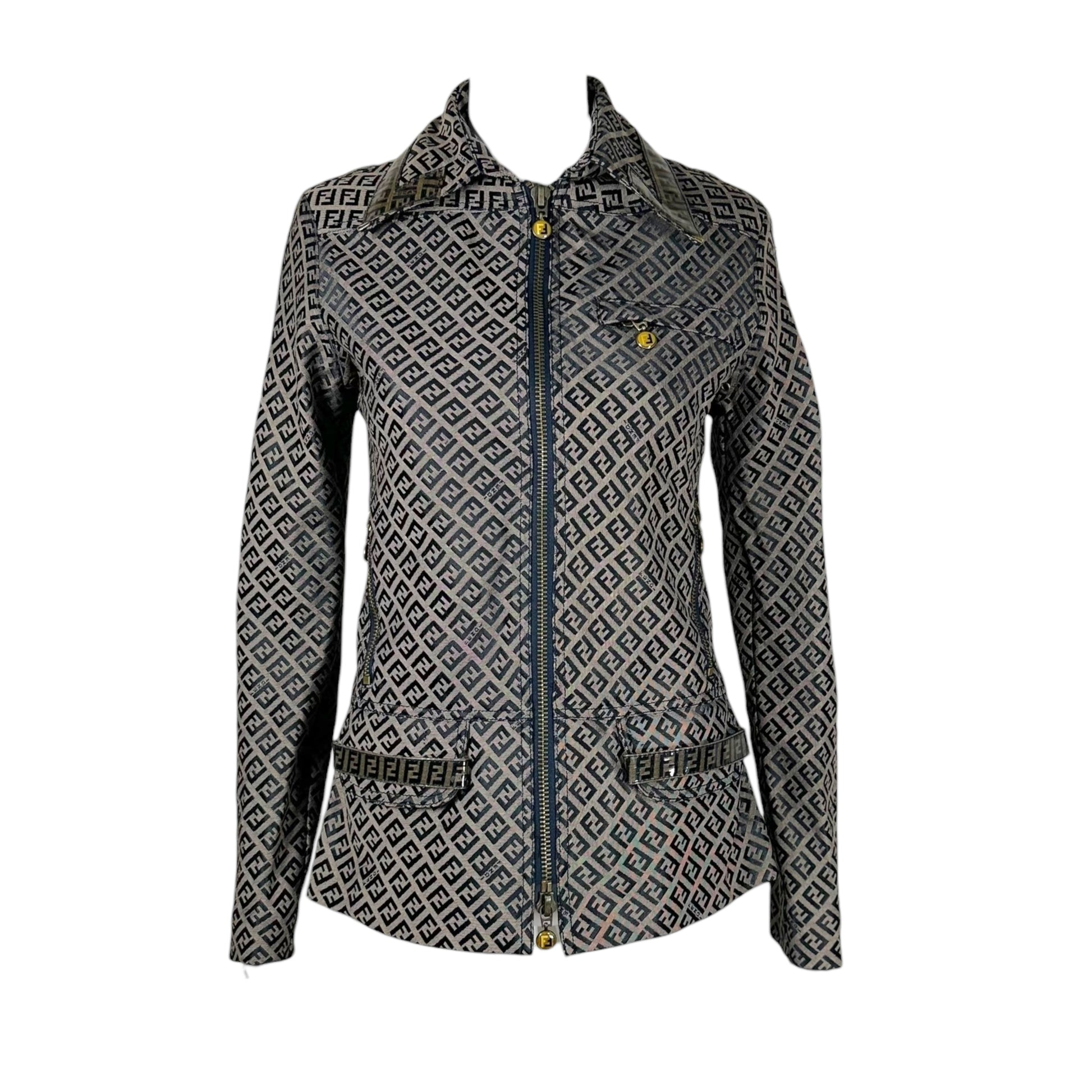Fendi Navy Blue Zucchino Monogram Print Jacket