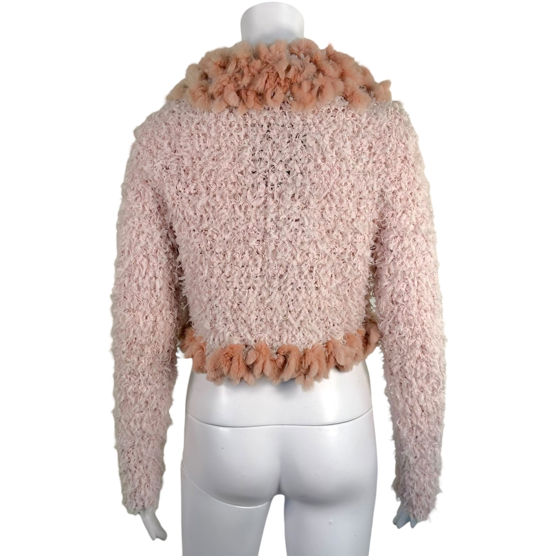 Fendi Pink Rabbit Fur Trim Cropped Knit Cardigan