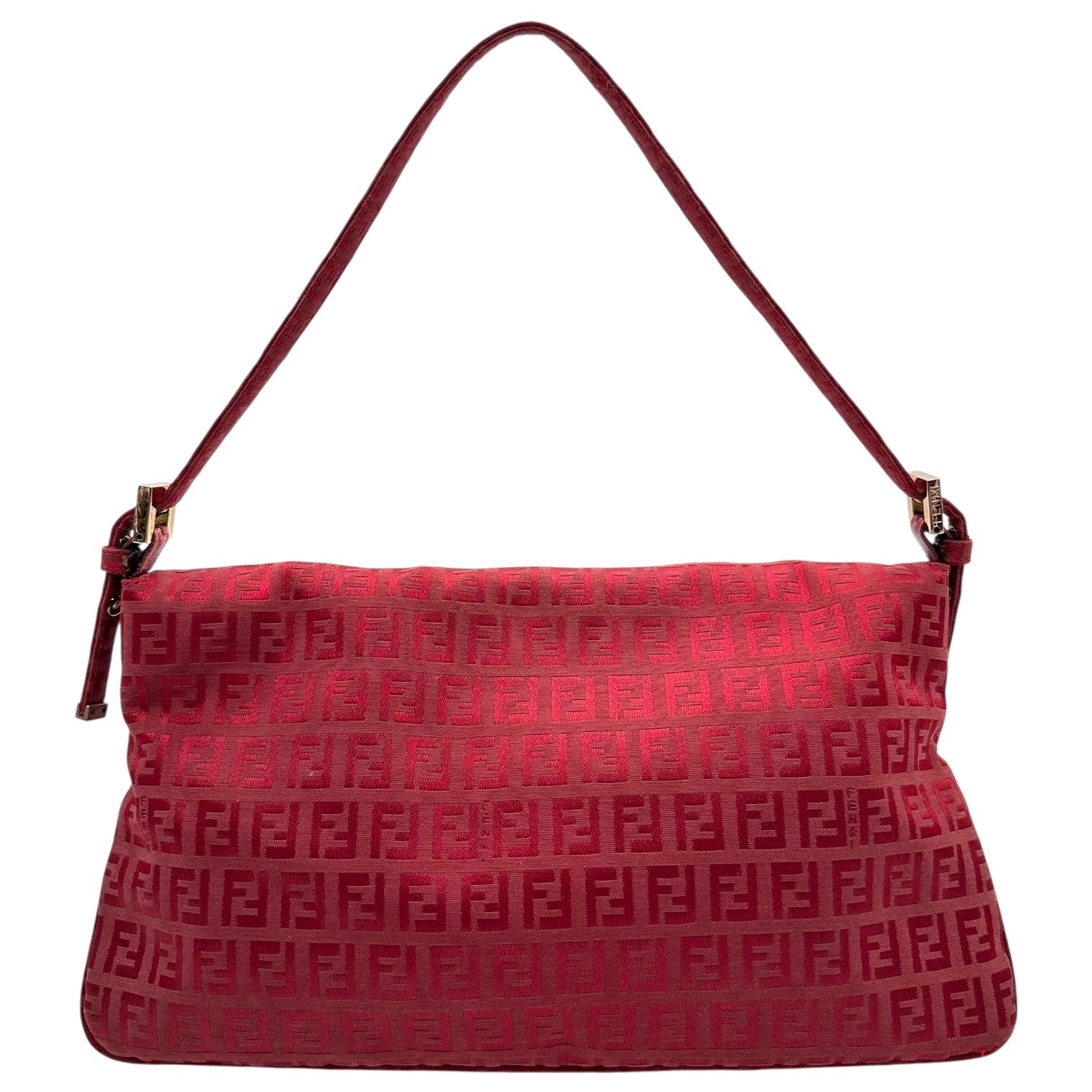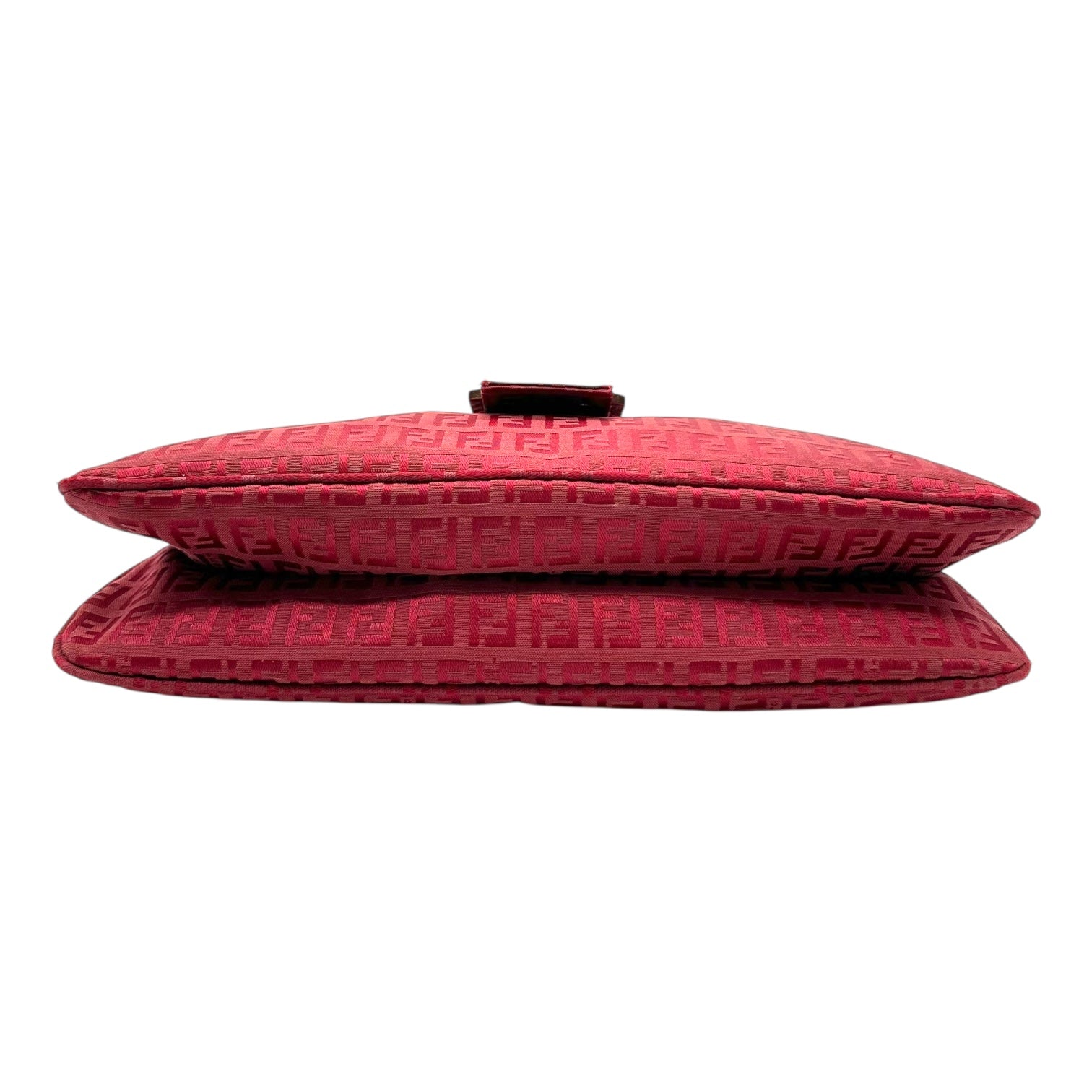 Fendi Red Zucchino Monogram Fold-Over Baguette Bag