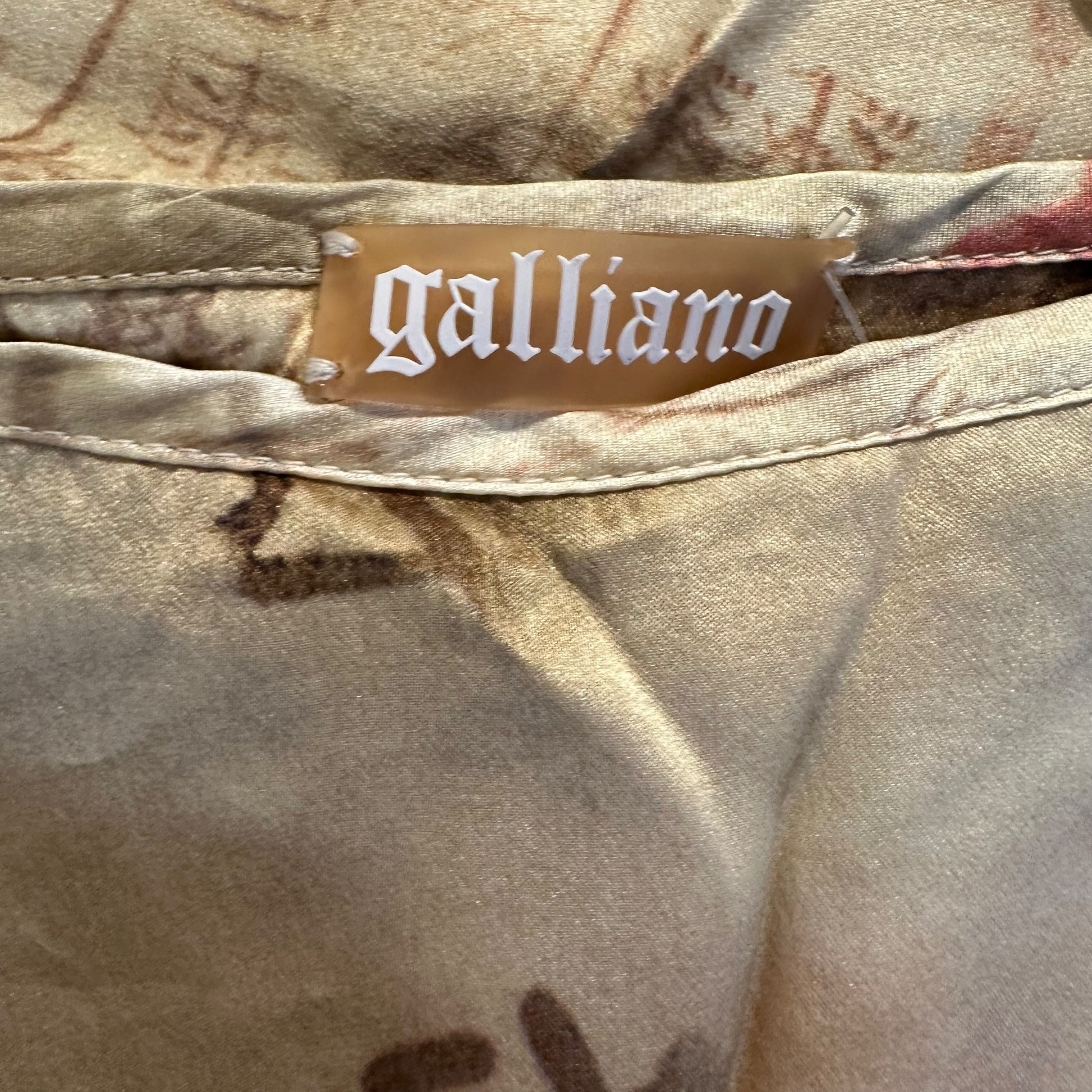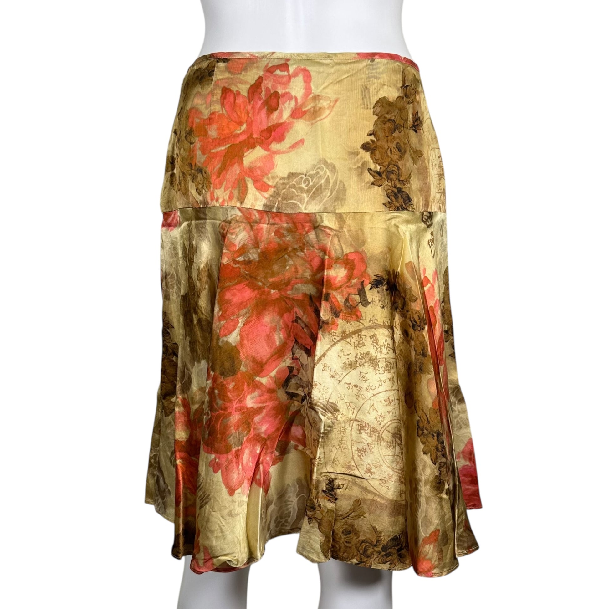 Galliano Ivory Silk Floral & Kanji Print Midi Skirt