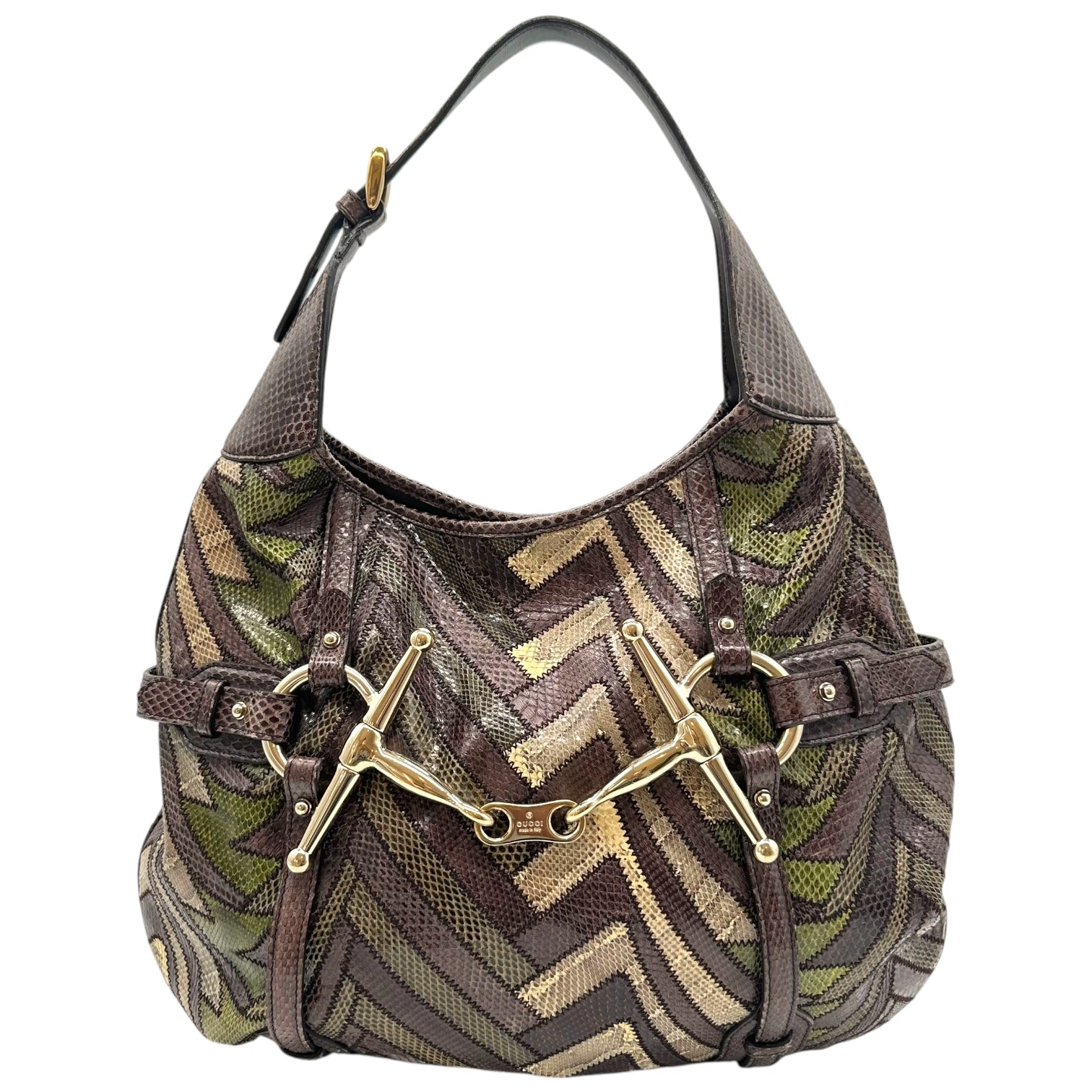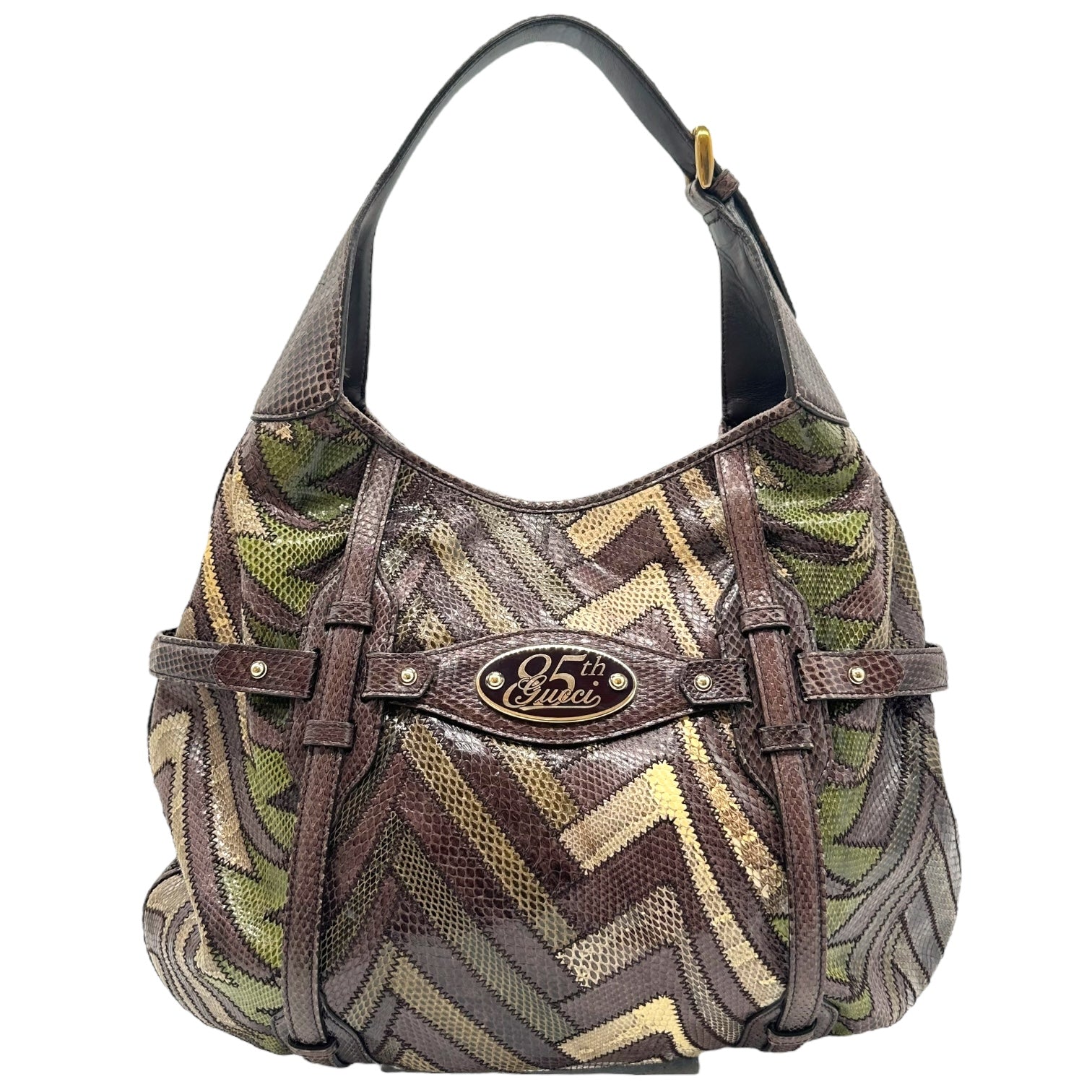 Gucci 85th Anniversary Green & Brown Snakeskin Horsebot Hobo Bag