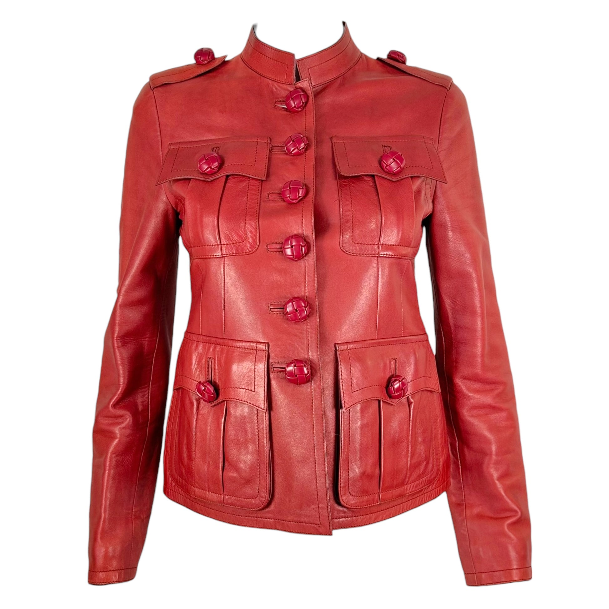 Gucci Burgundy Lambskin Leather Military Style Jacket