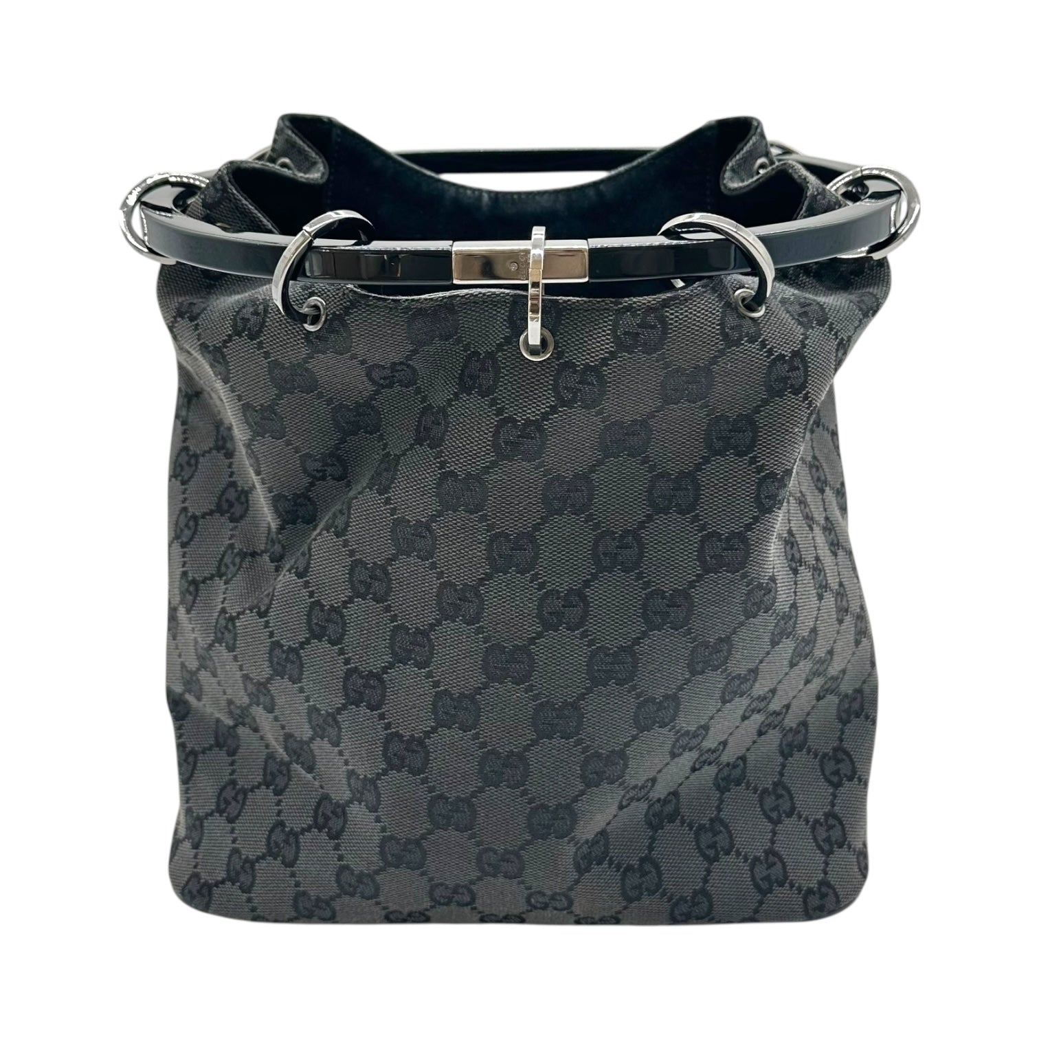 Gucci by Tom Ford Black Monogram Ring Bucket Bag