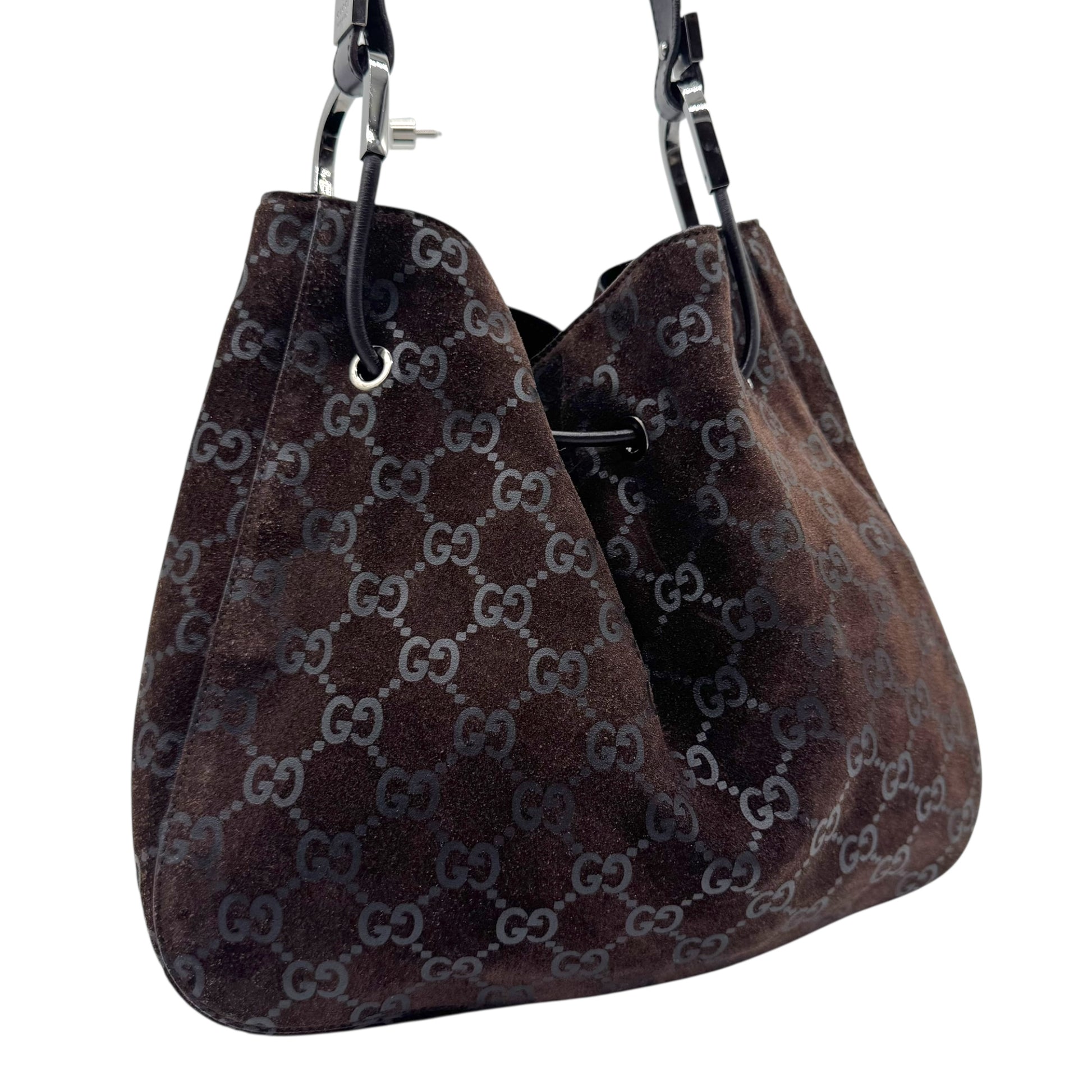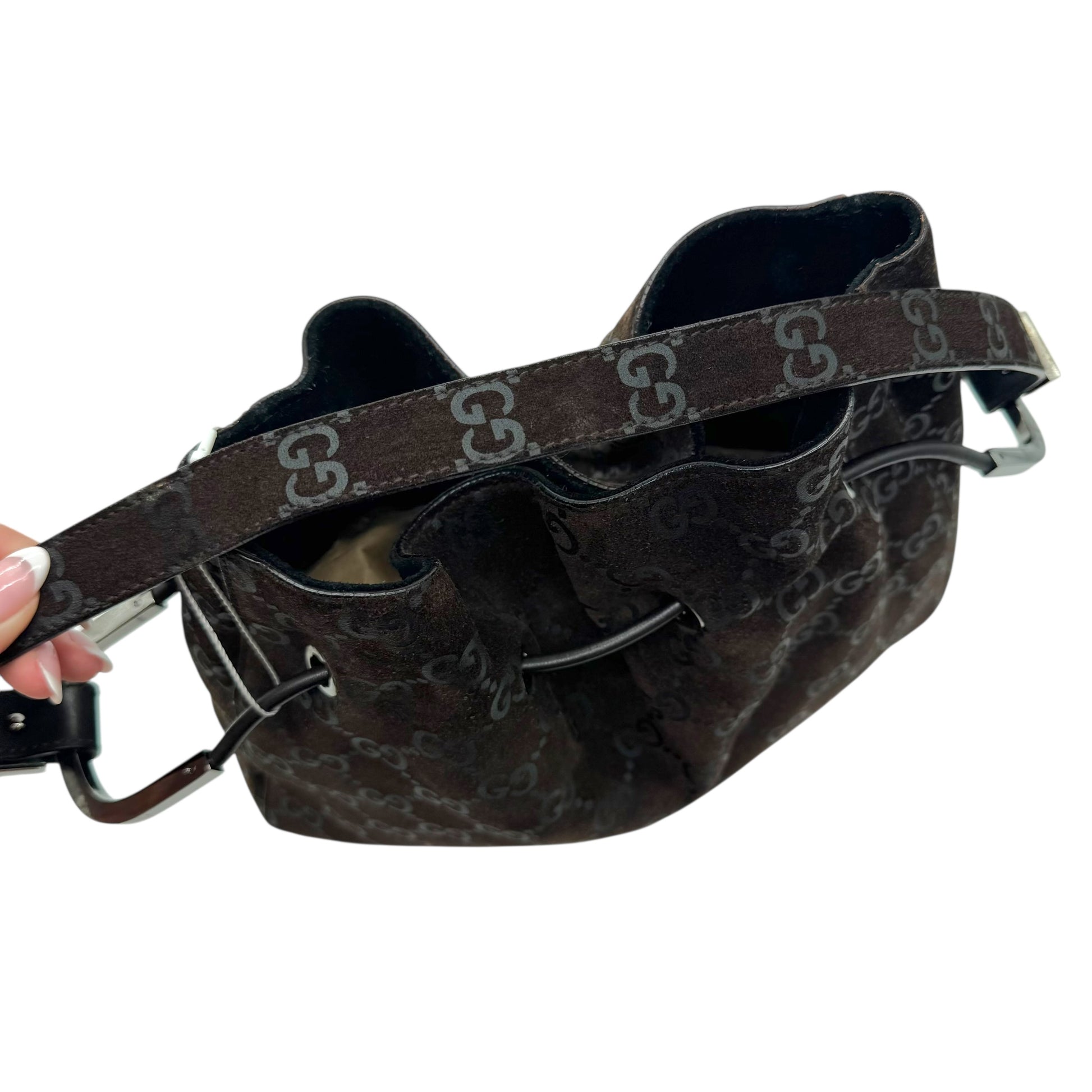 Gucci by Tom Ford Brown Suede Monogram Bucket Bag