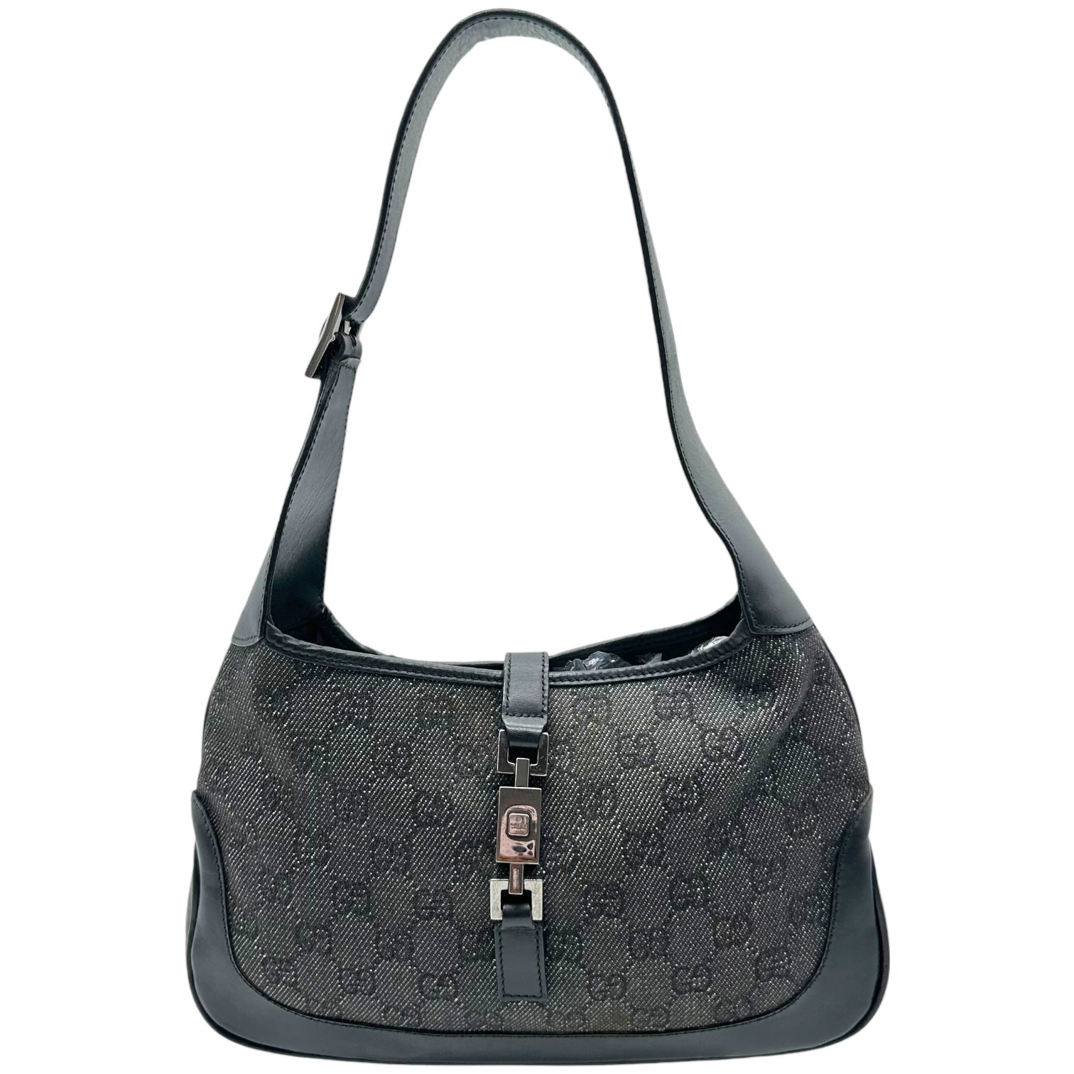 Gucci Gray Denim Monogram Shoulder Jackie Bag