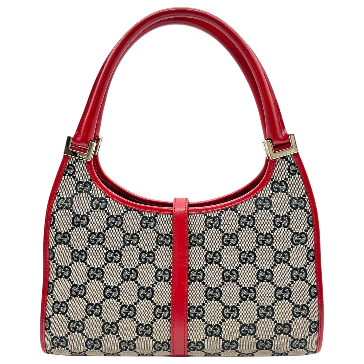Gucci Gray Monogram & Red Leather Mini Jackie Bag