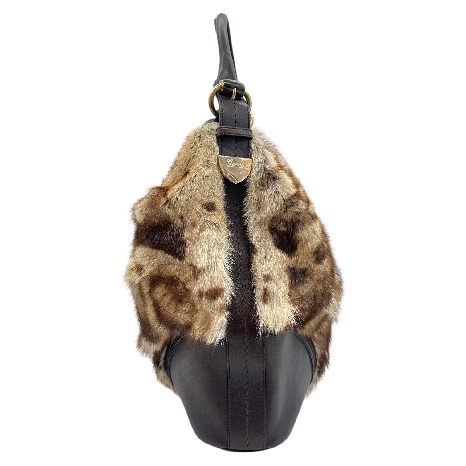 Gucci Leopard Print Fur Large Signoria Hobo Bag