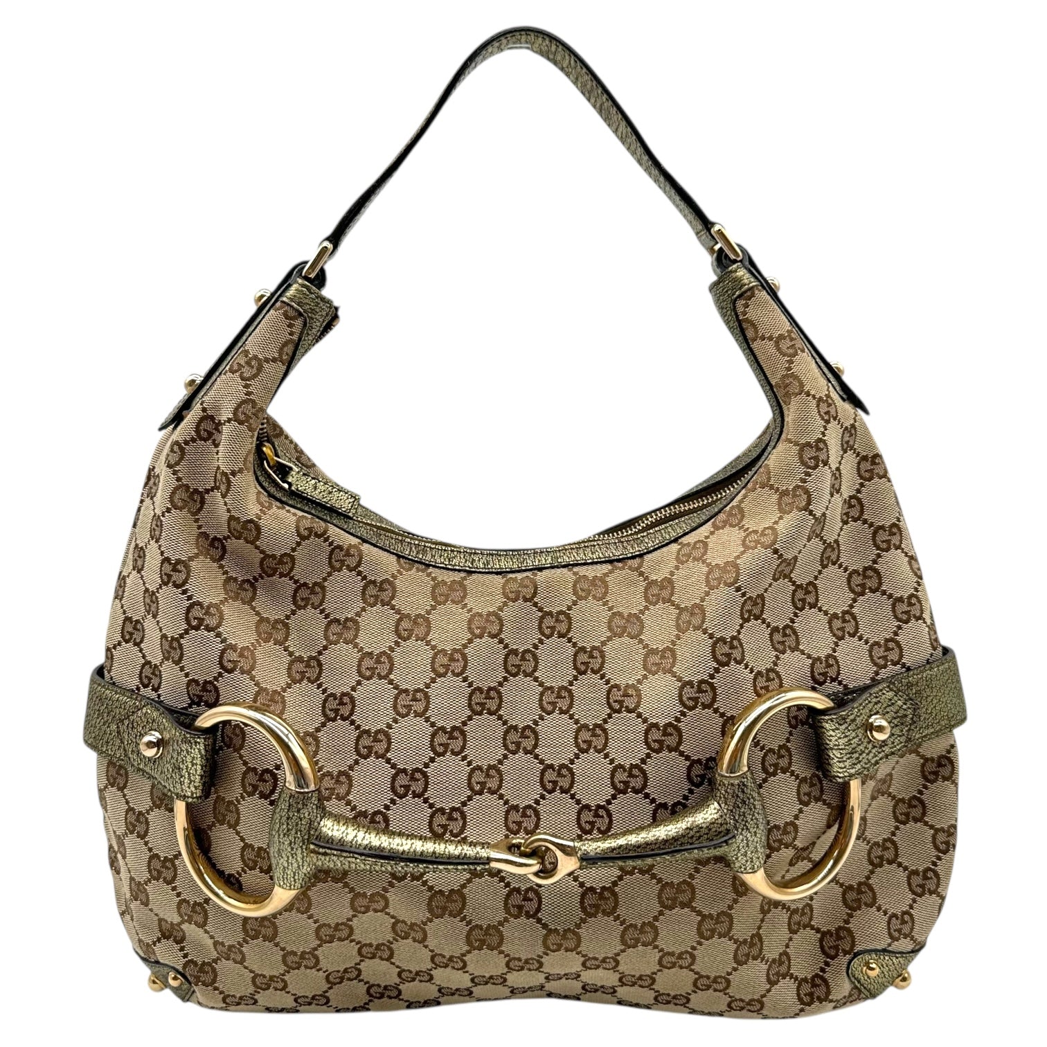 Gucci Tan Canvas Monogram Horsebit Hobo Bag