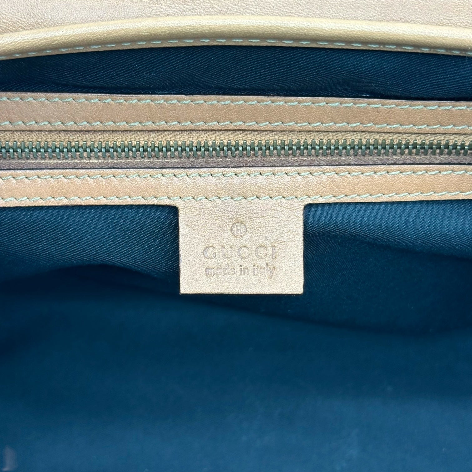 Gucci Tan Leather & Black Canvas Studded Bamboo Bullet Bag
