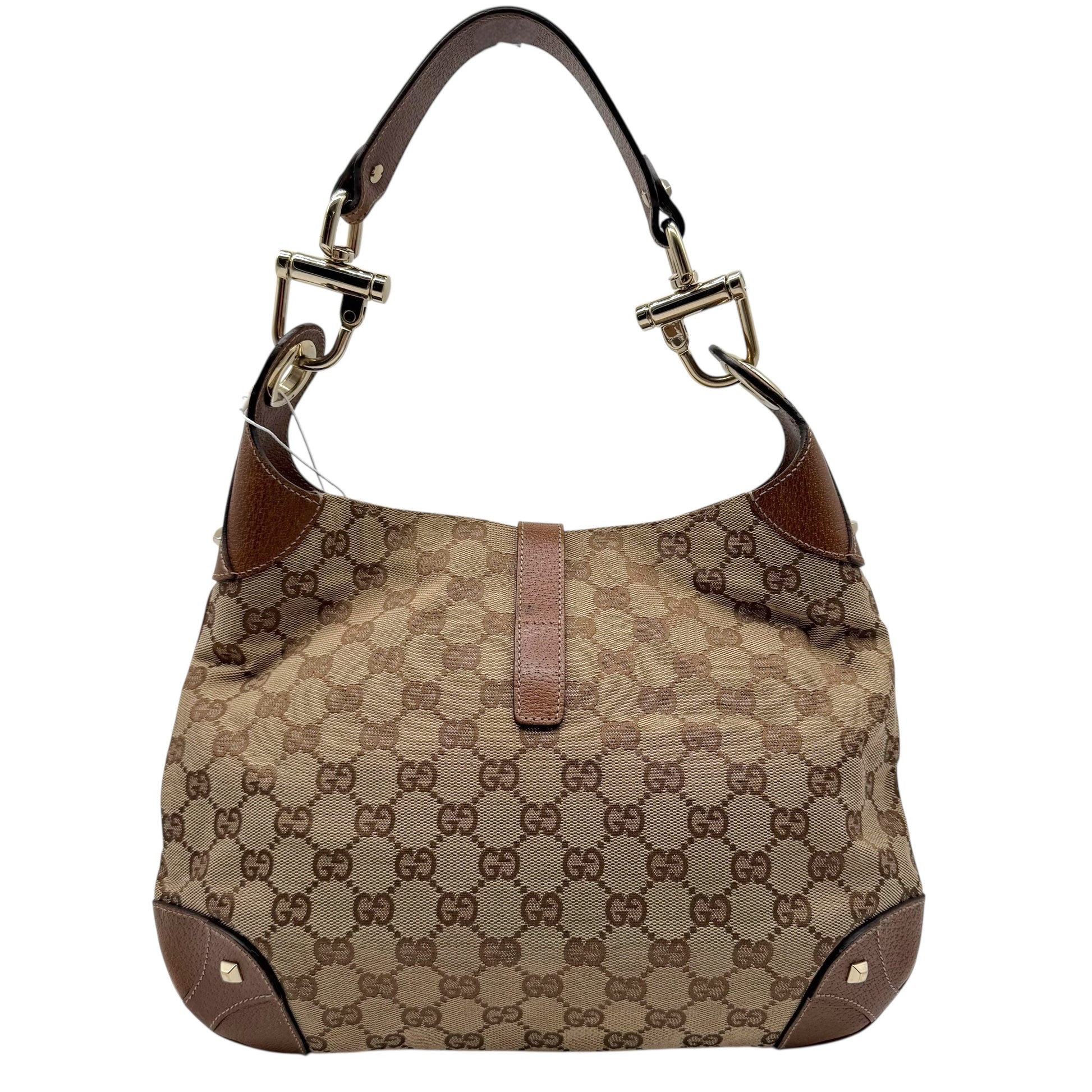 Gucci Tan Monogram & Brown Leather Piston Lock Shoulder Jackie Bag