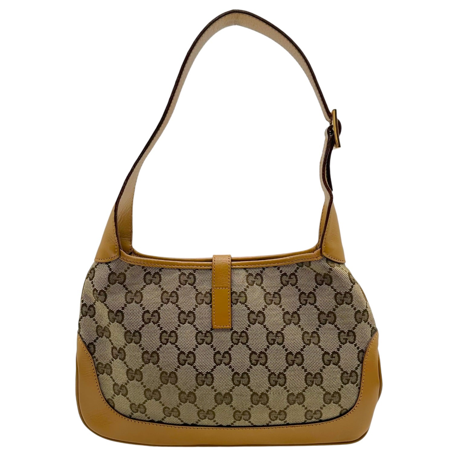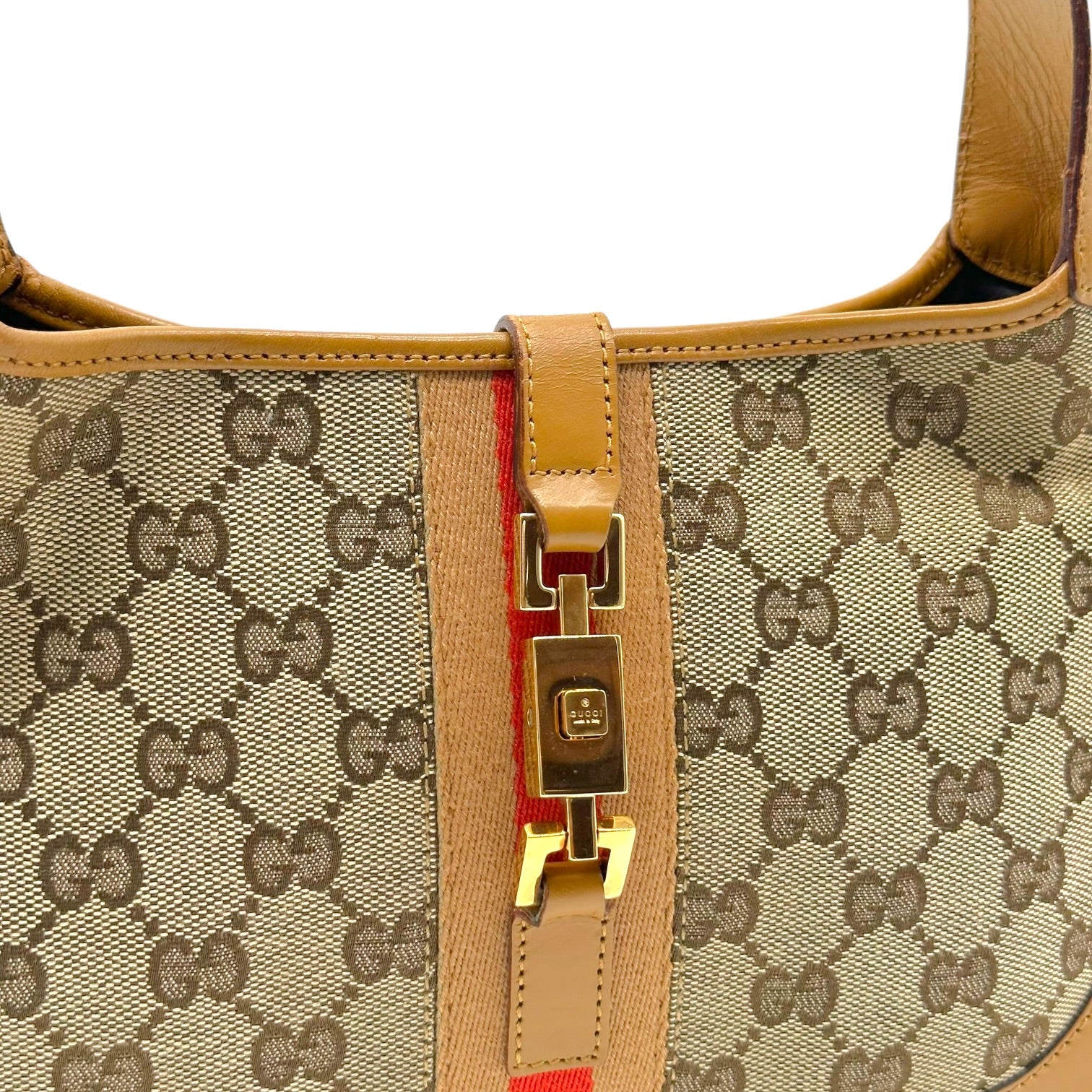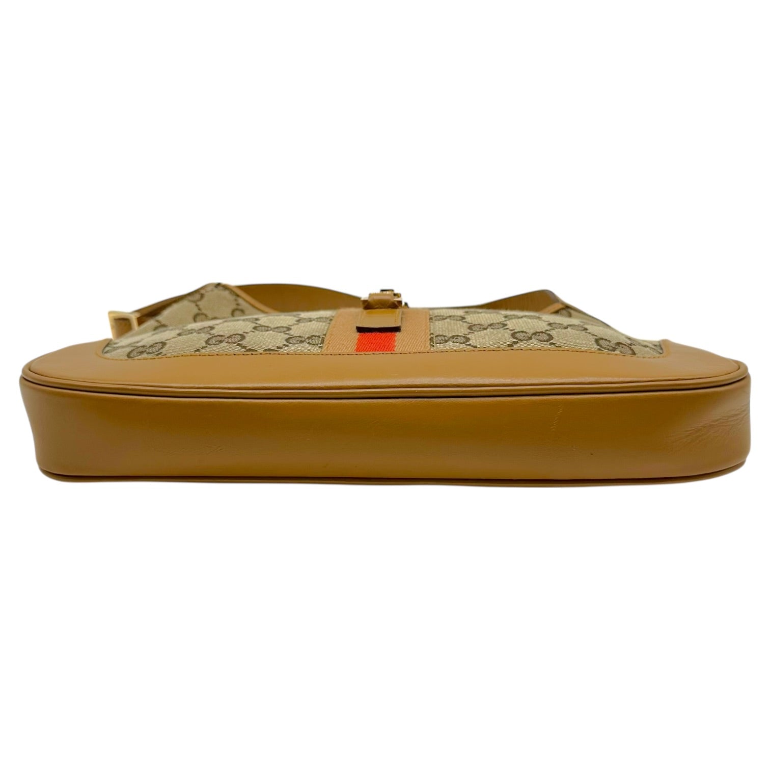 Gucci Tan Monogram Canvas & Stripe Shoulder Jackie Bag