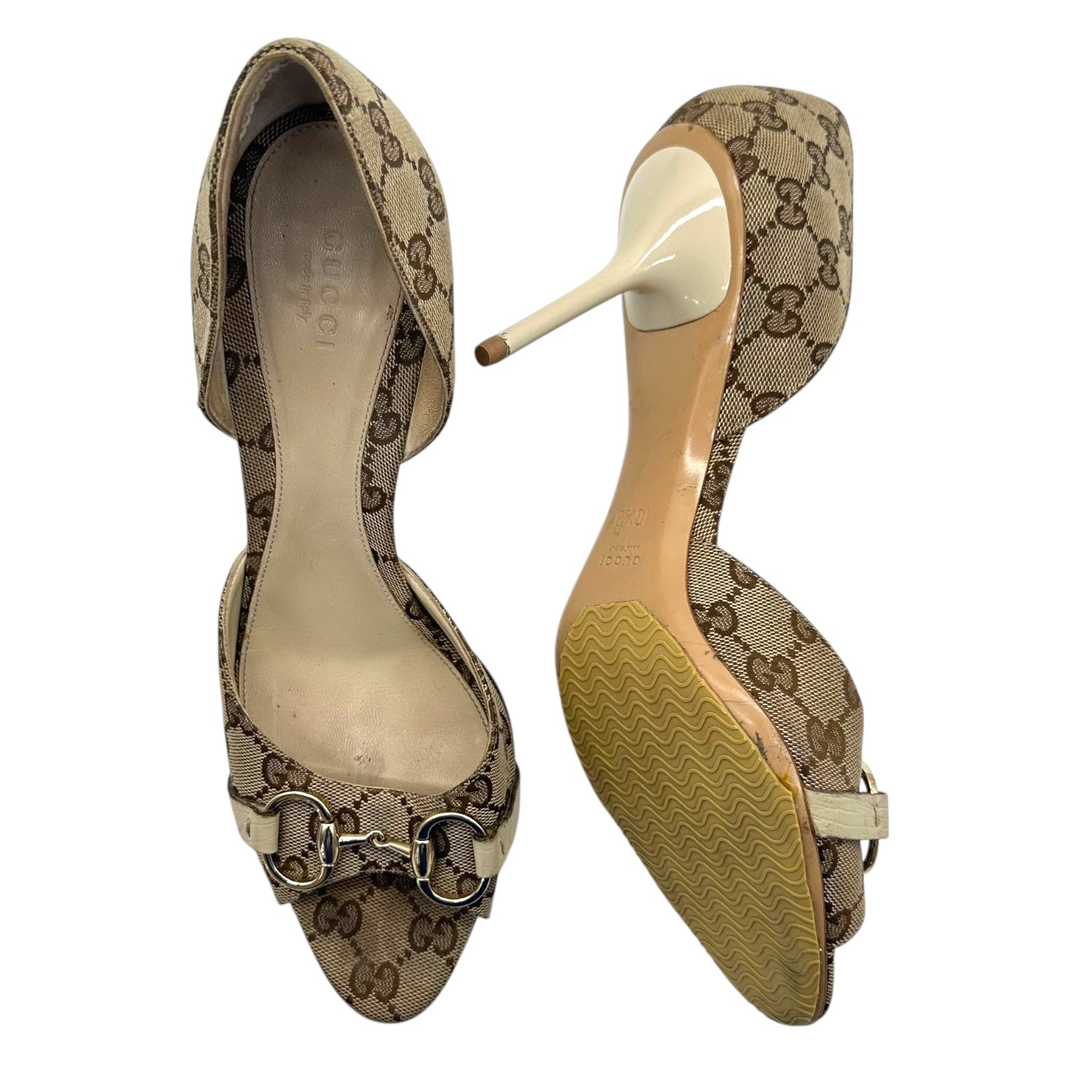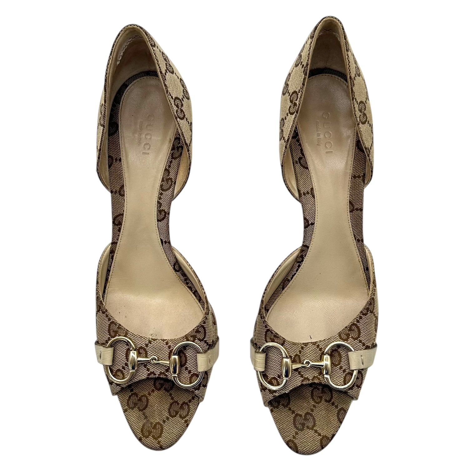 Gucci Tan Monogram Horsebit D'Orsay Heels