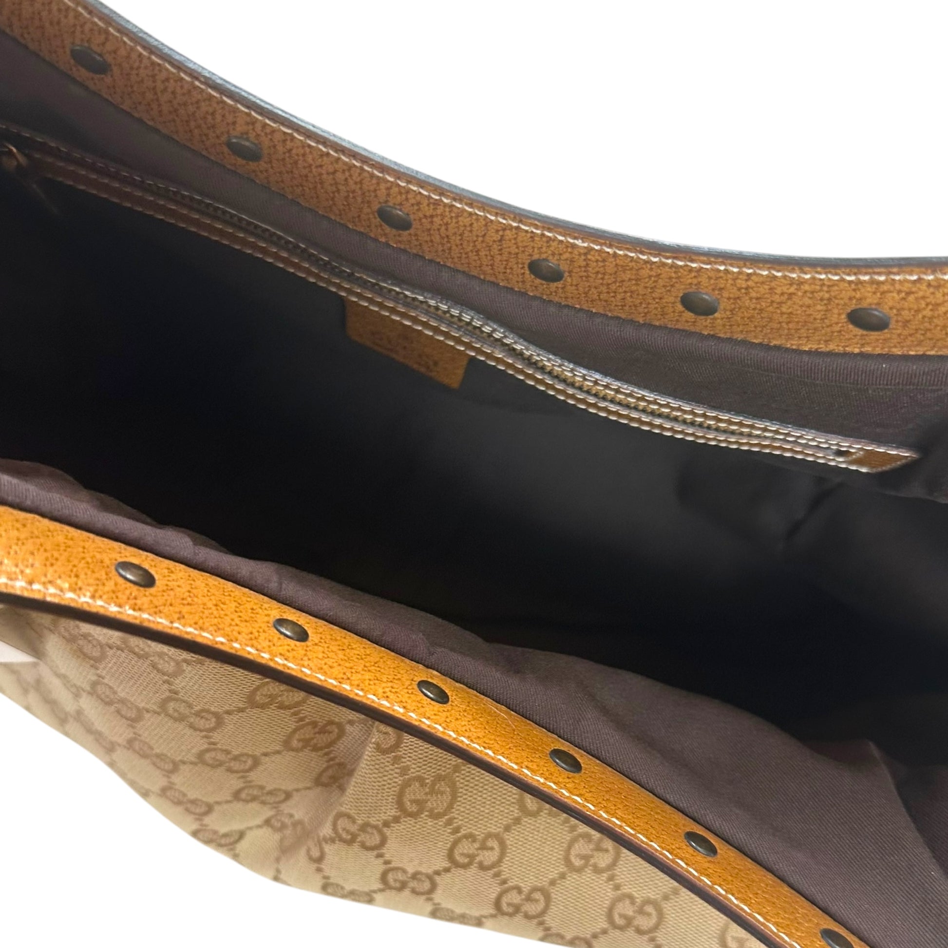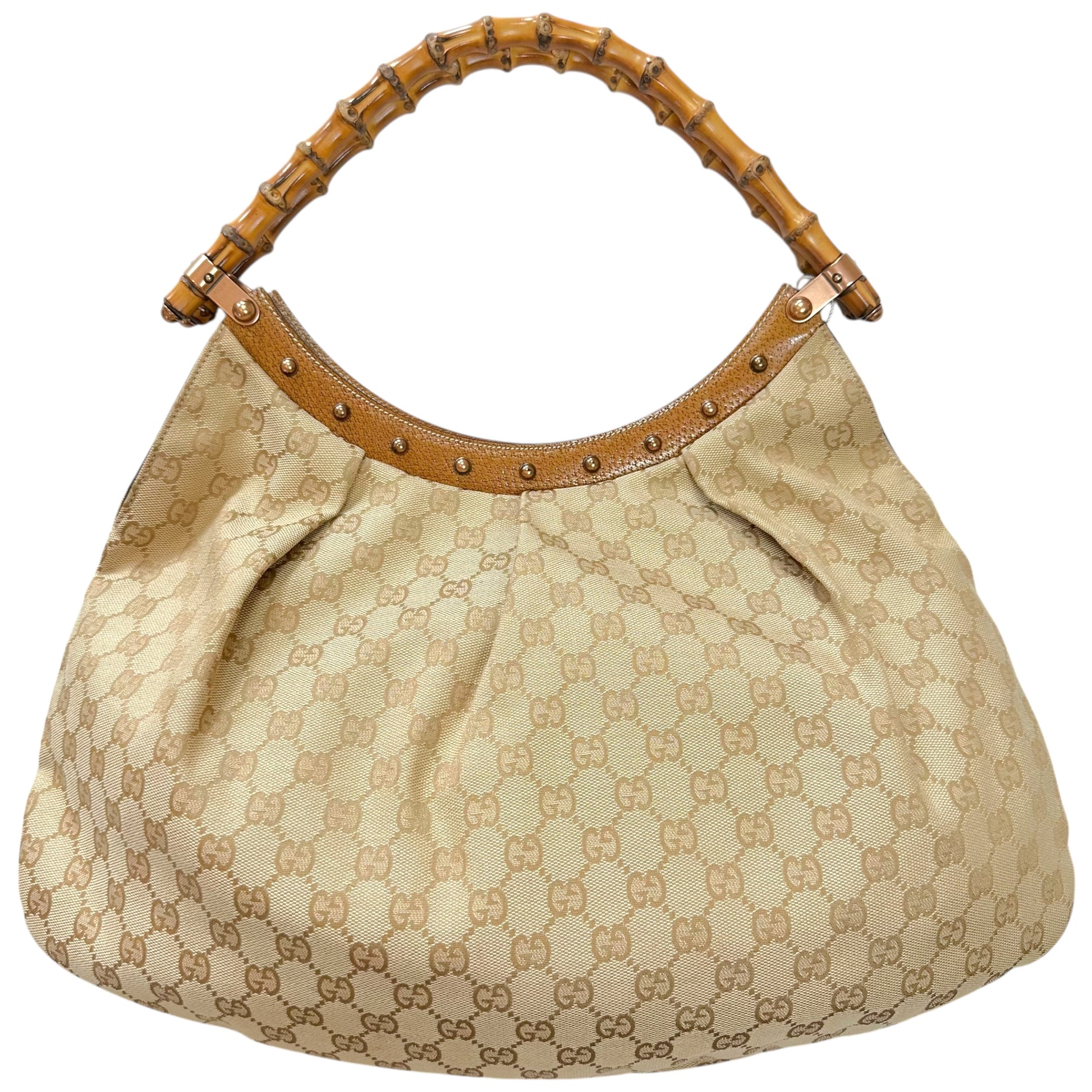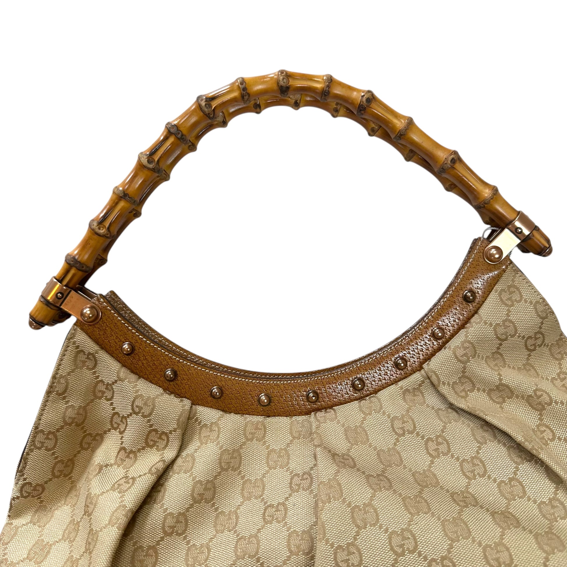 Gucci Tan Monogram Studded Bamboo Handle Shoulder Bag