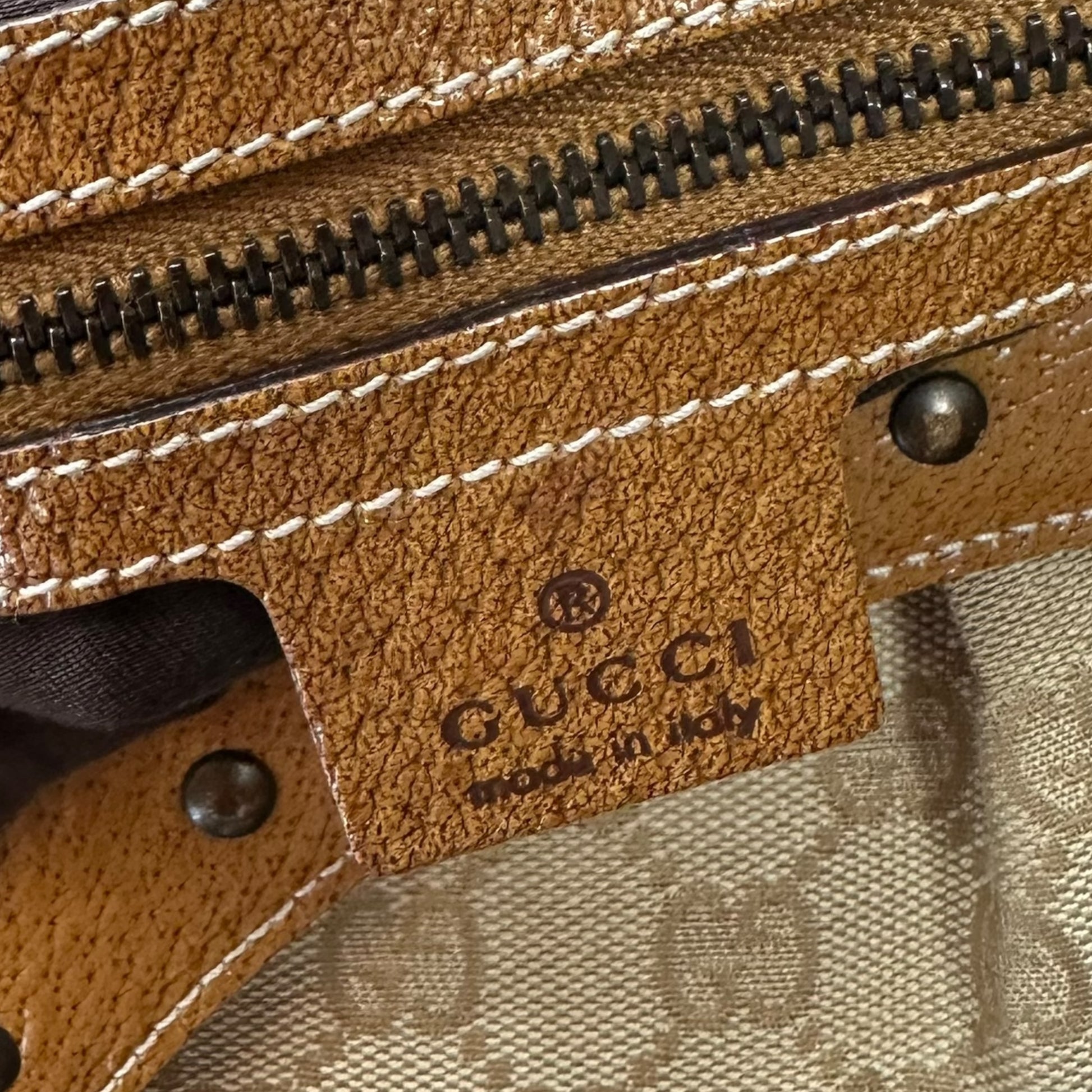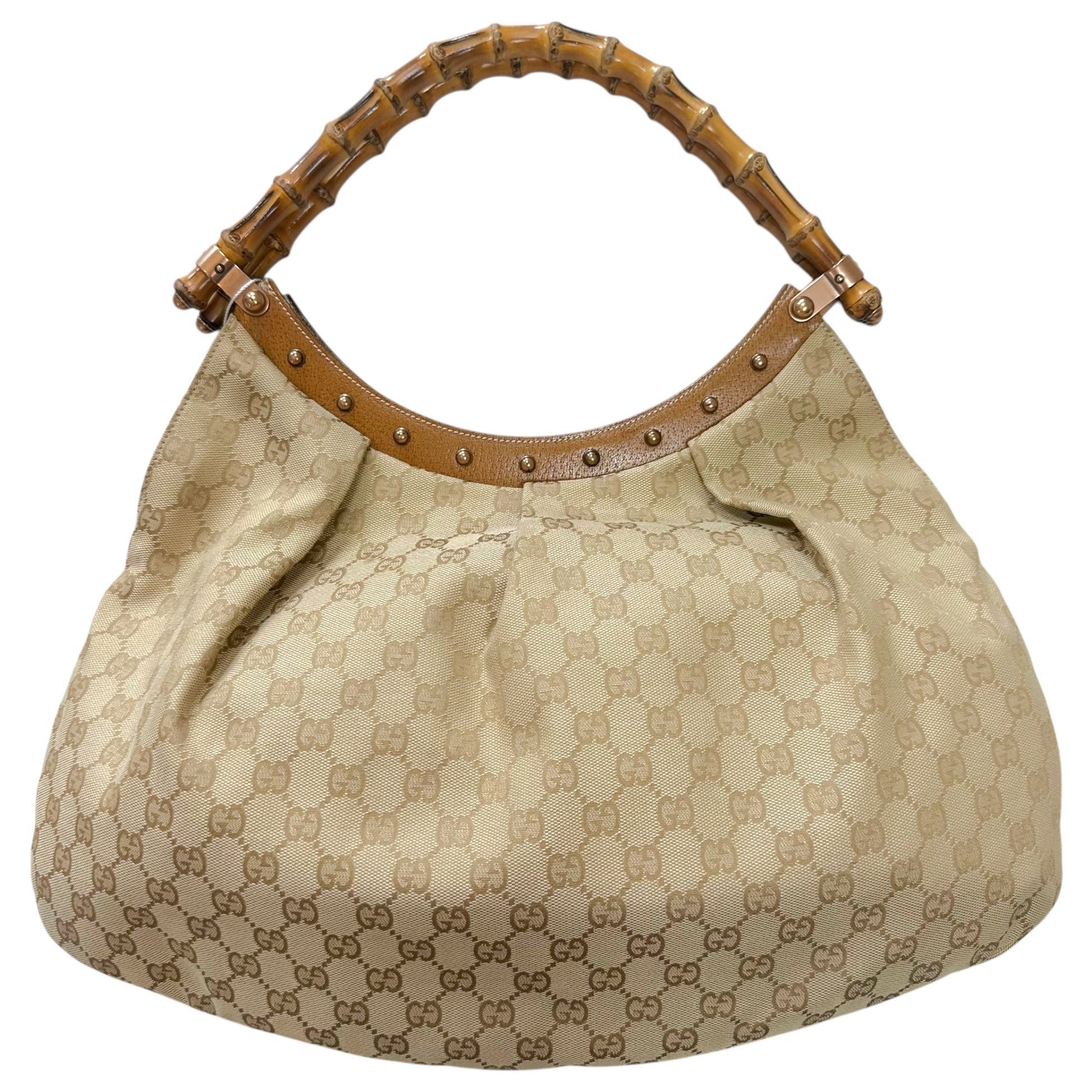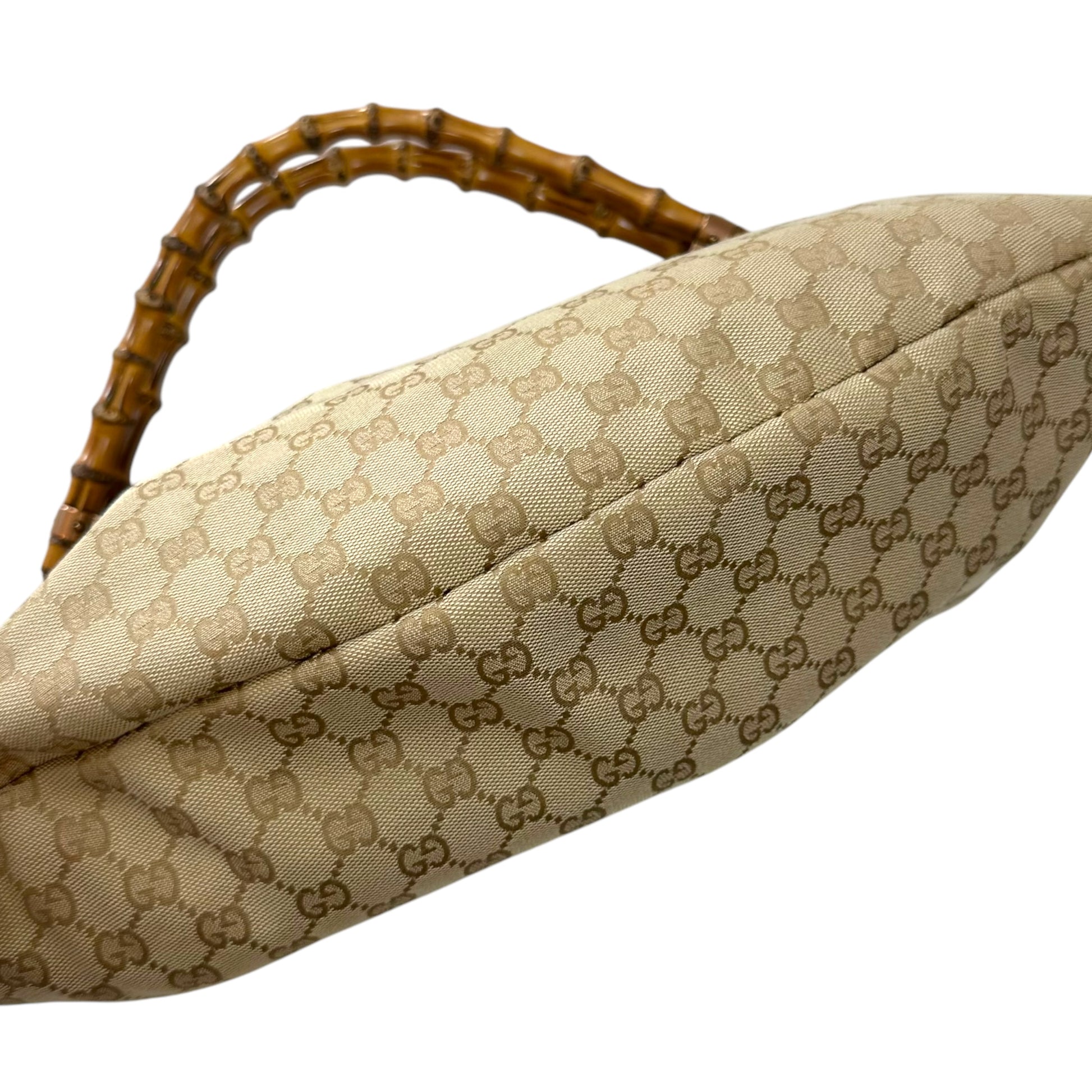 Gucci Tan Monogram Studded Bamboo Handle Shoulder Bag