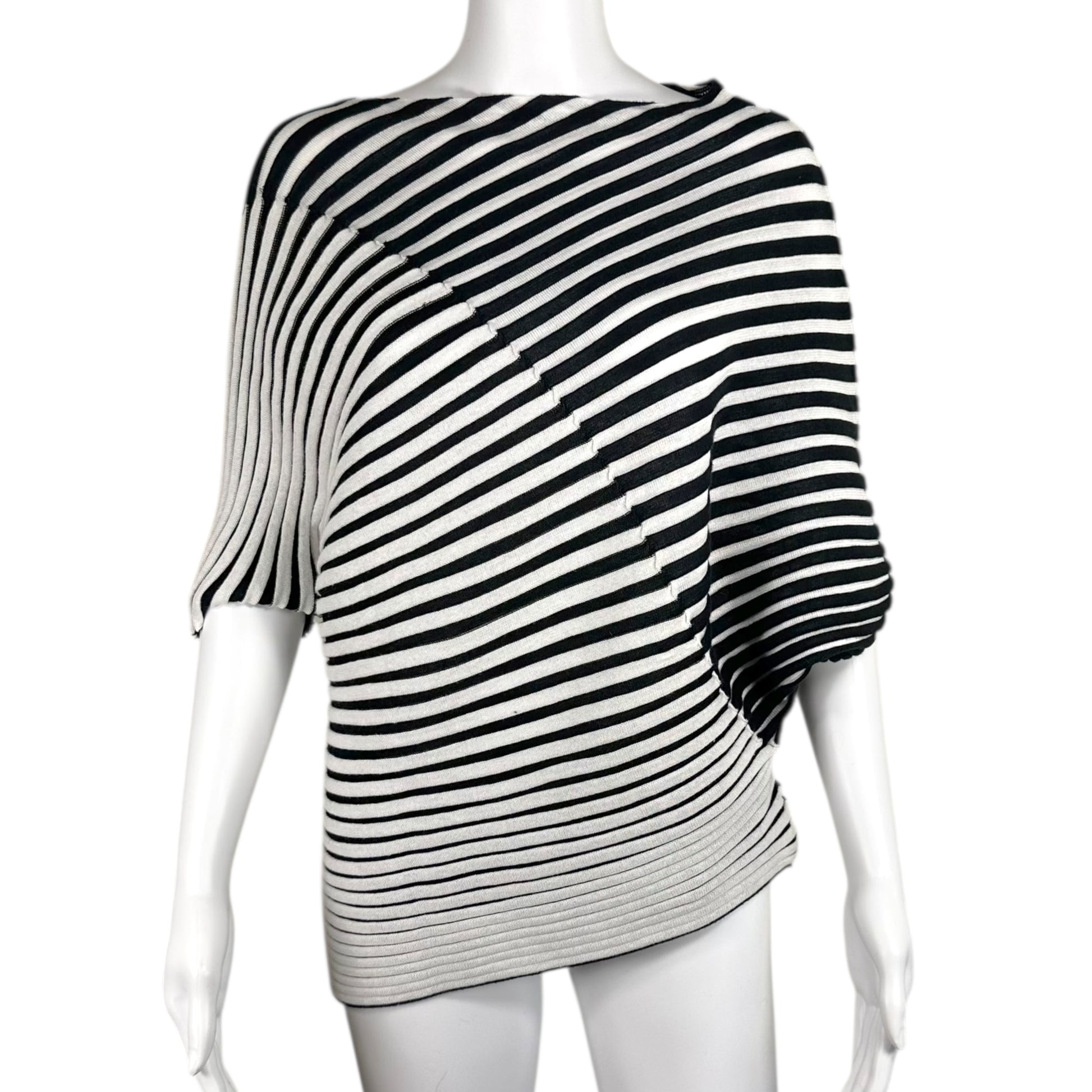 Issey Miyake Black & White Striped Knit Asymmetrical Top