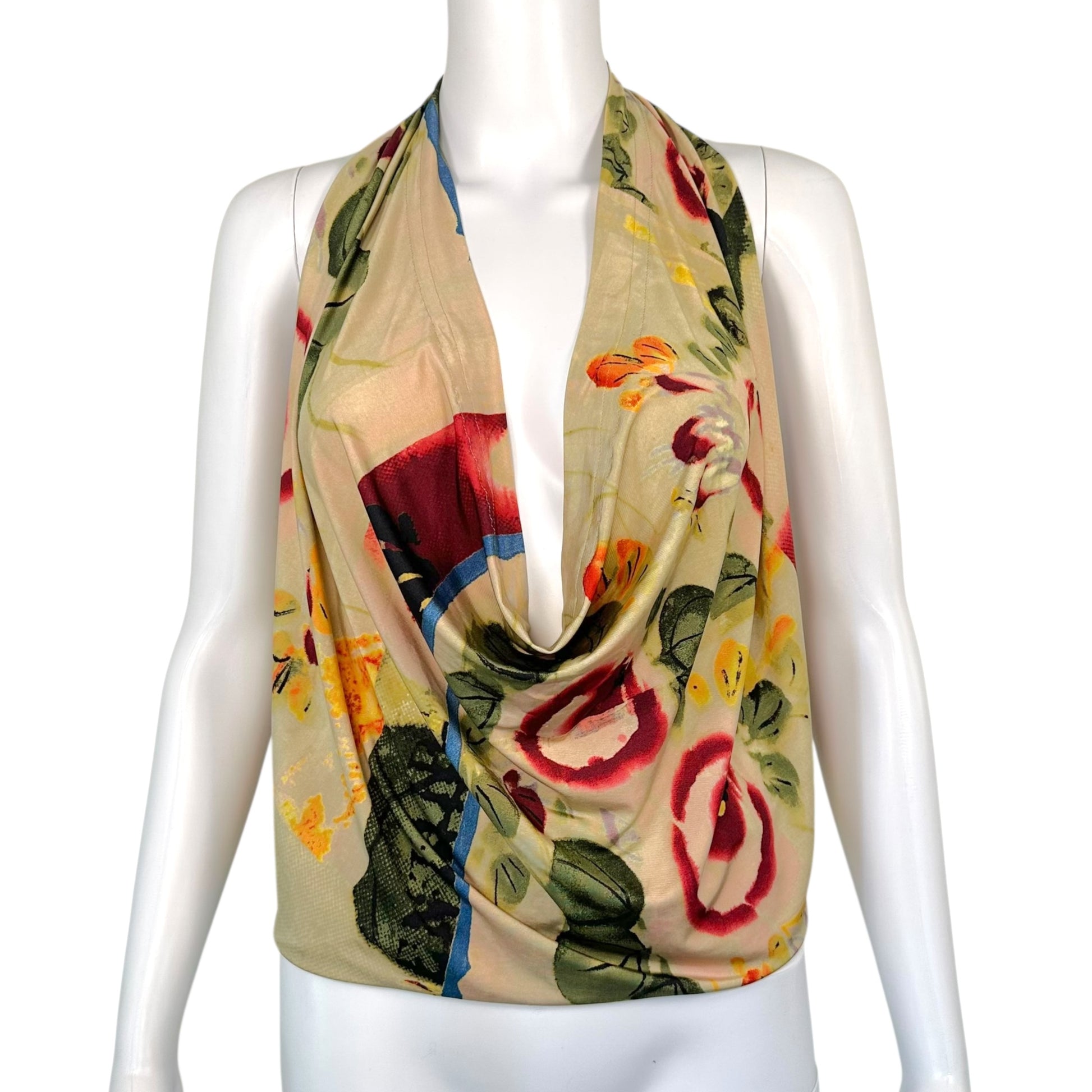 Jean Paul Galutier Floral Print Halter Neck Plunge Front Top