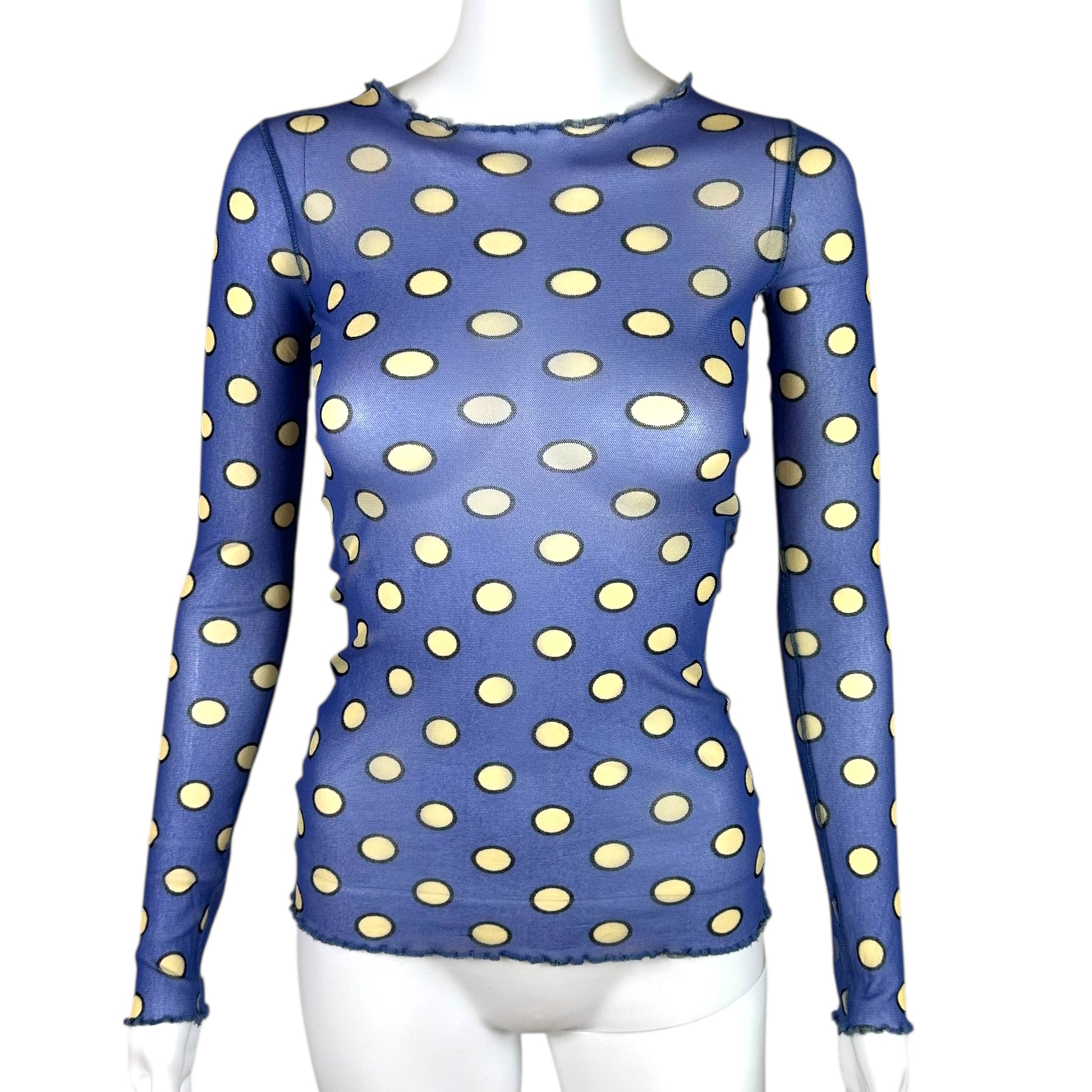 Jean Paul Gaultier Blue Polka Dot Mesh Longsleeve Top