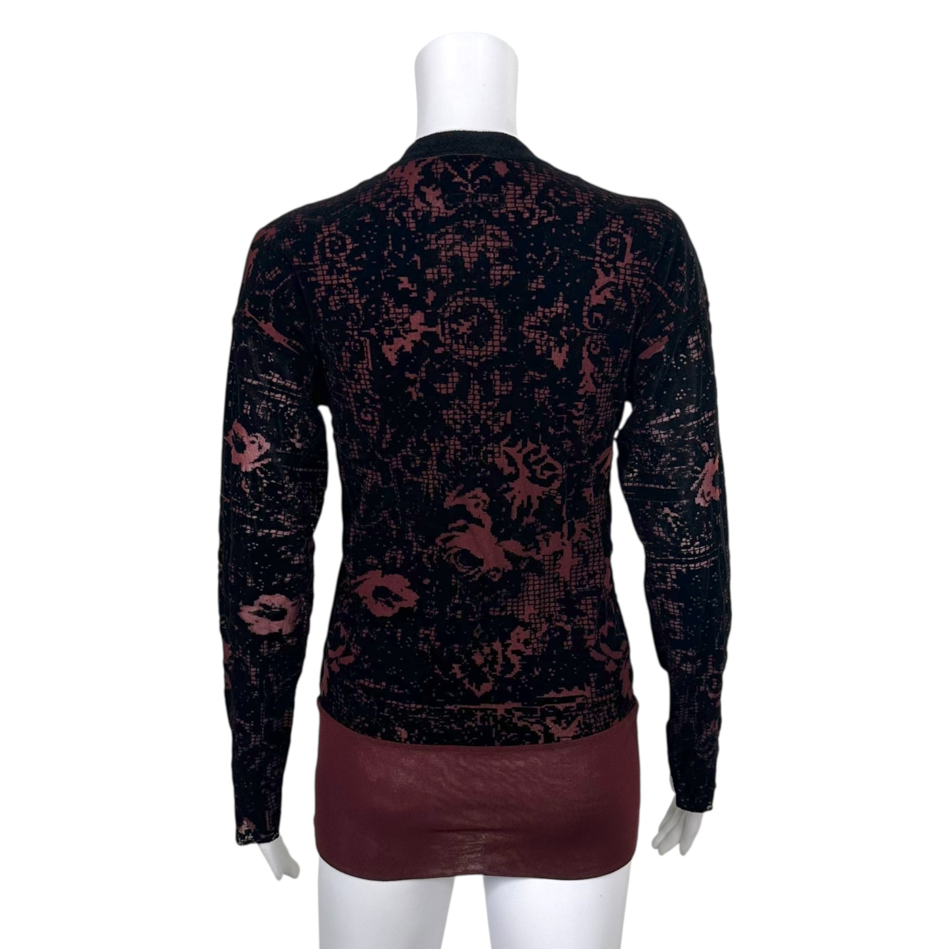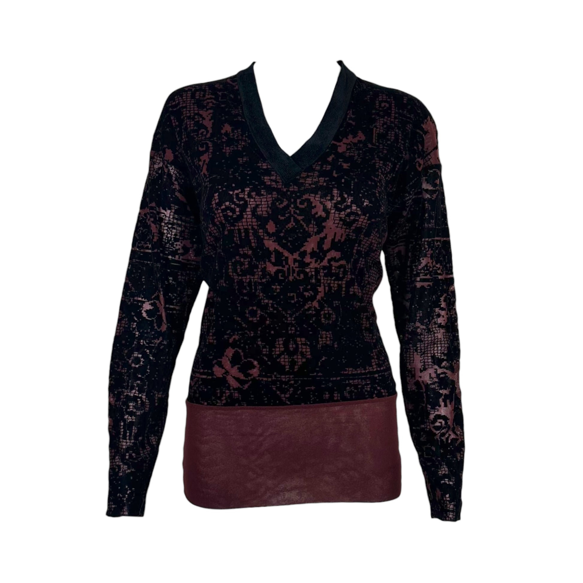 Jean Paul Gaultier Burgundy Mesh & Black Velvet Longsleeve Top