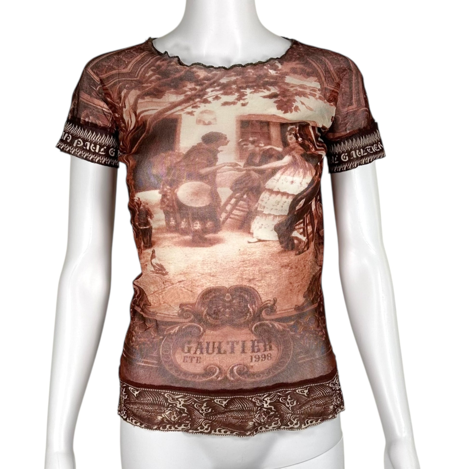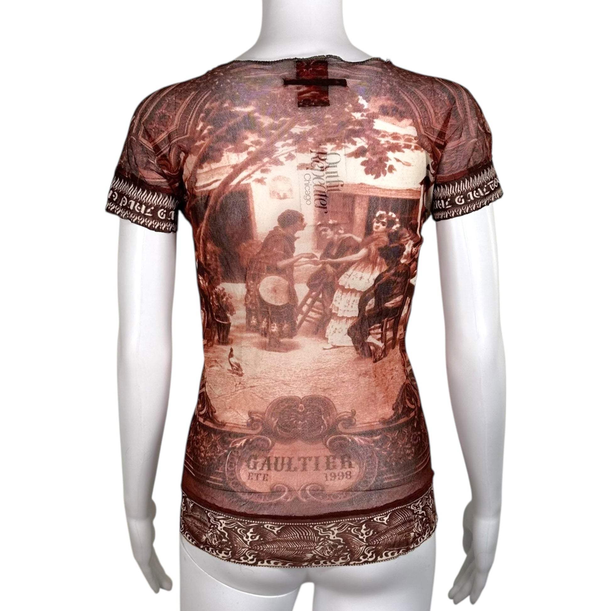 Jean Paul Gaultier Burgundy Old English Print Mesh T-Shirt