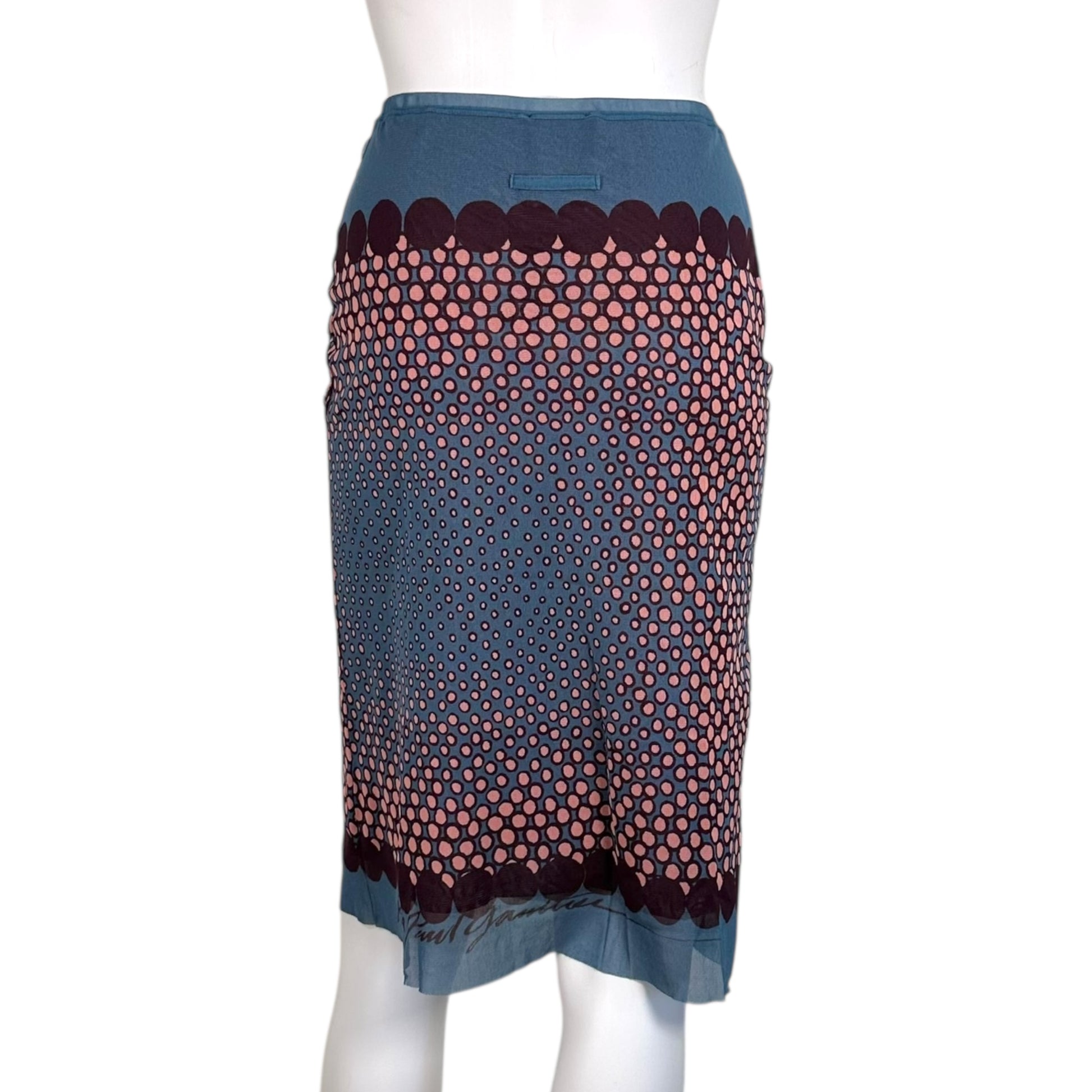 Jean Paul Gaultier JPG Teal & Pink Logo Print Mesh Midi Skirt
