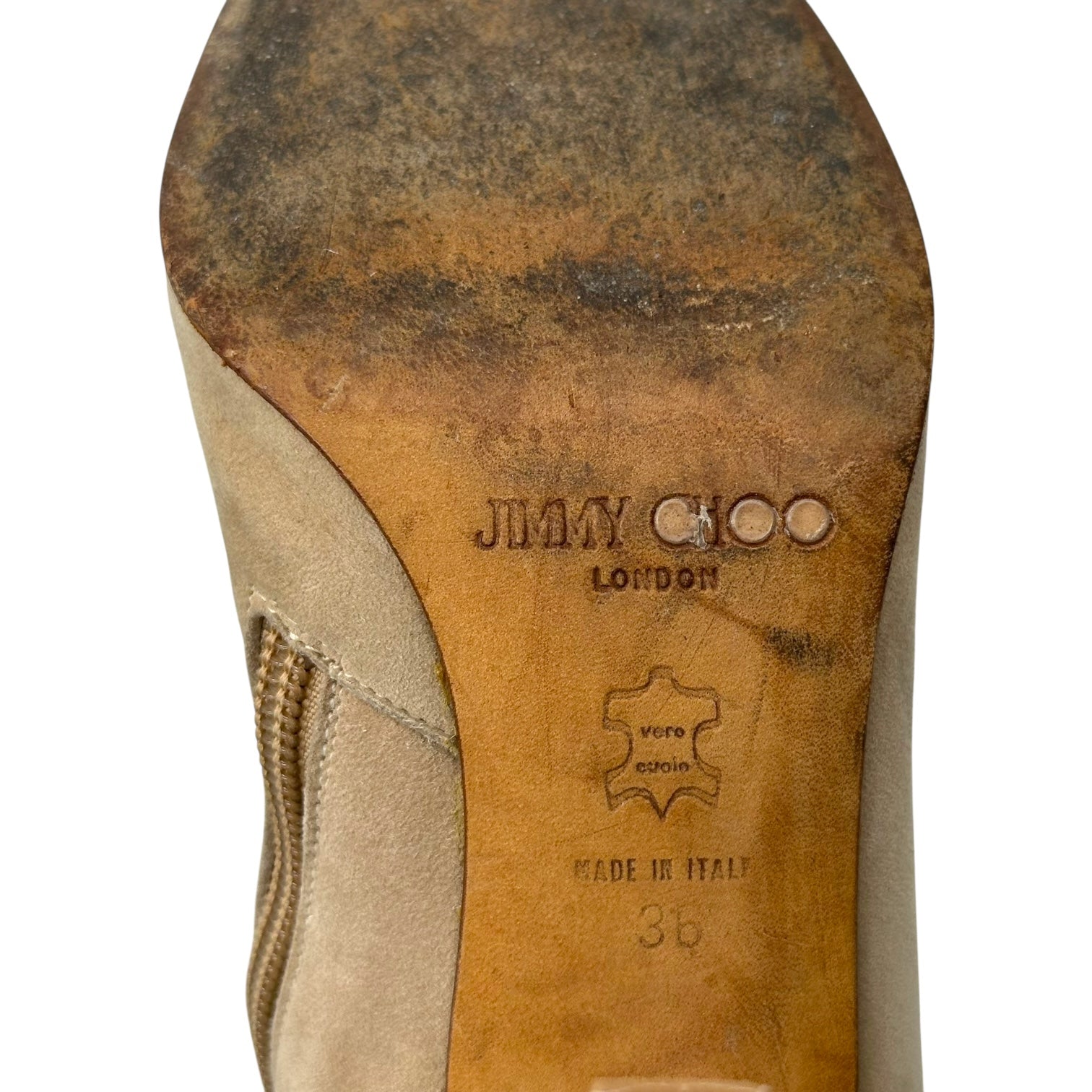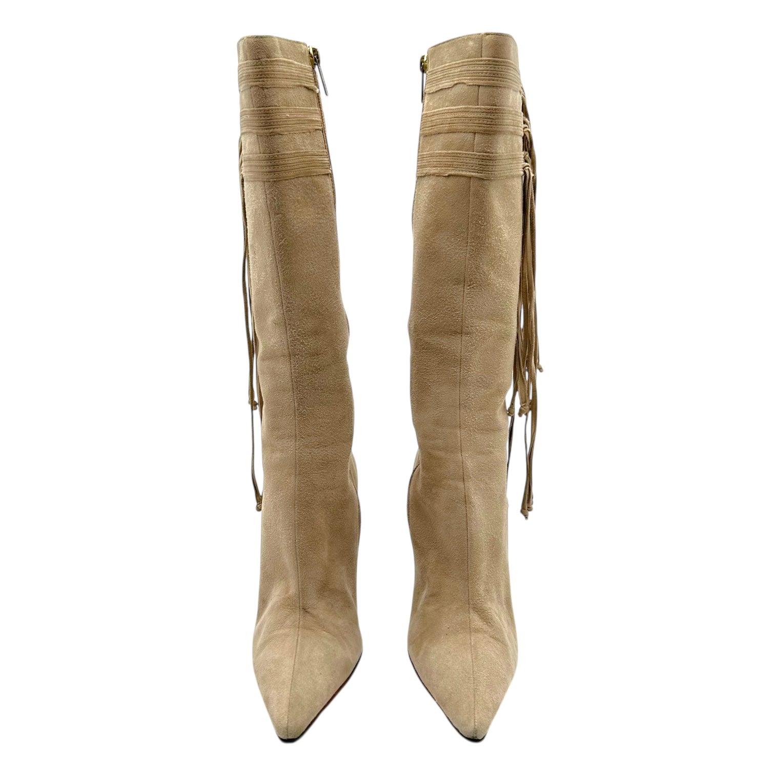 Jimmy Choo Beige Fringe Trim Heeled Boots