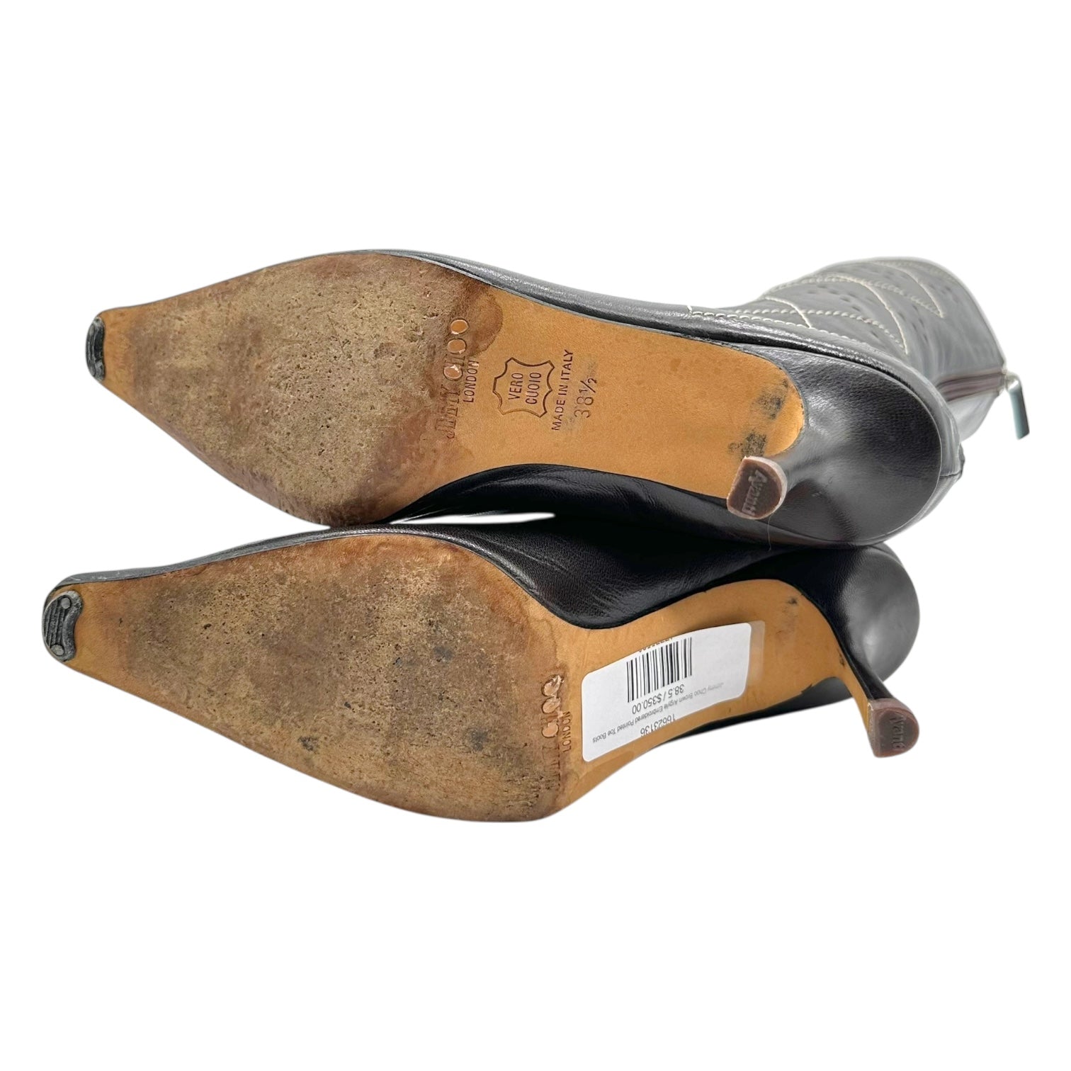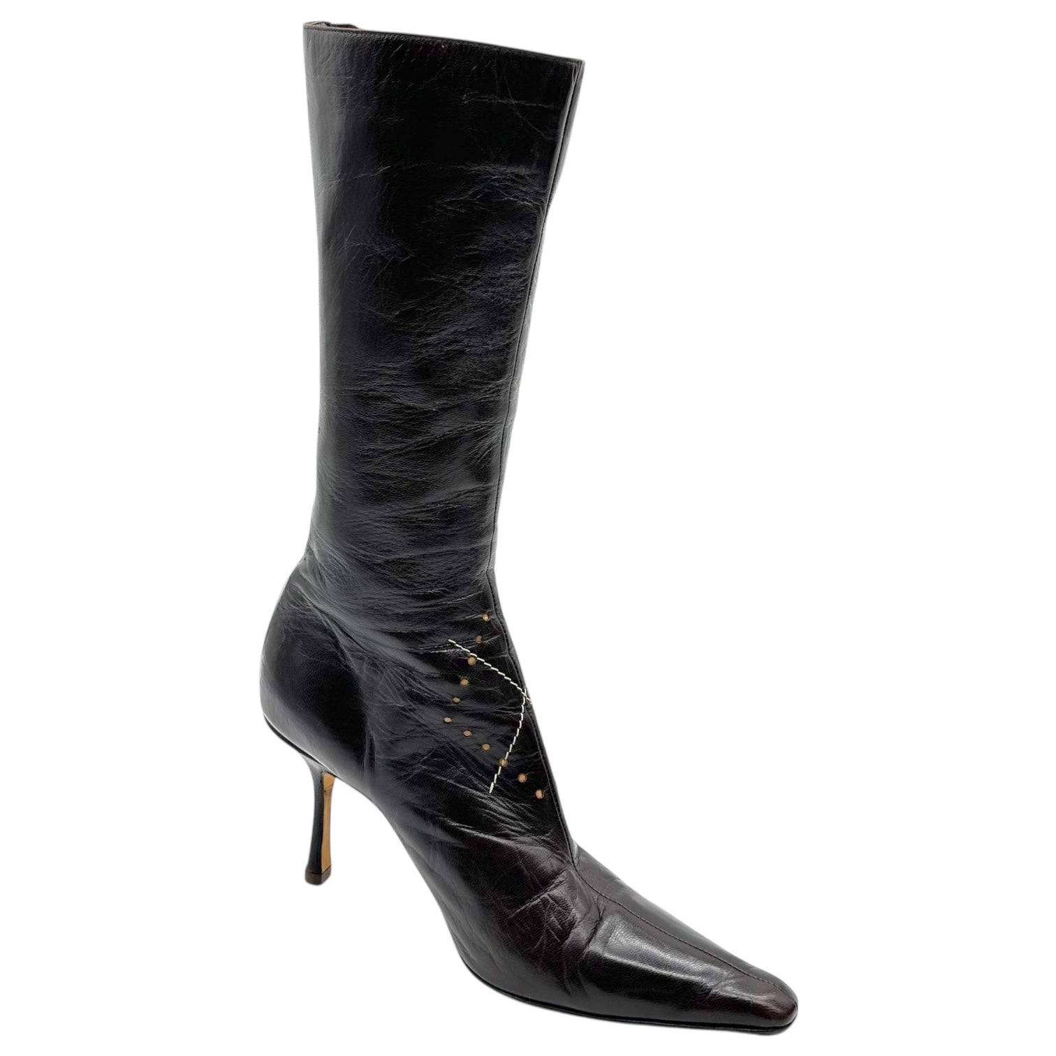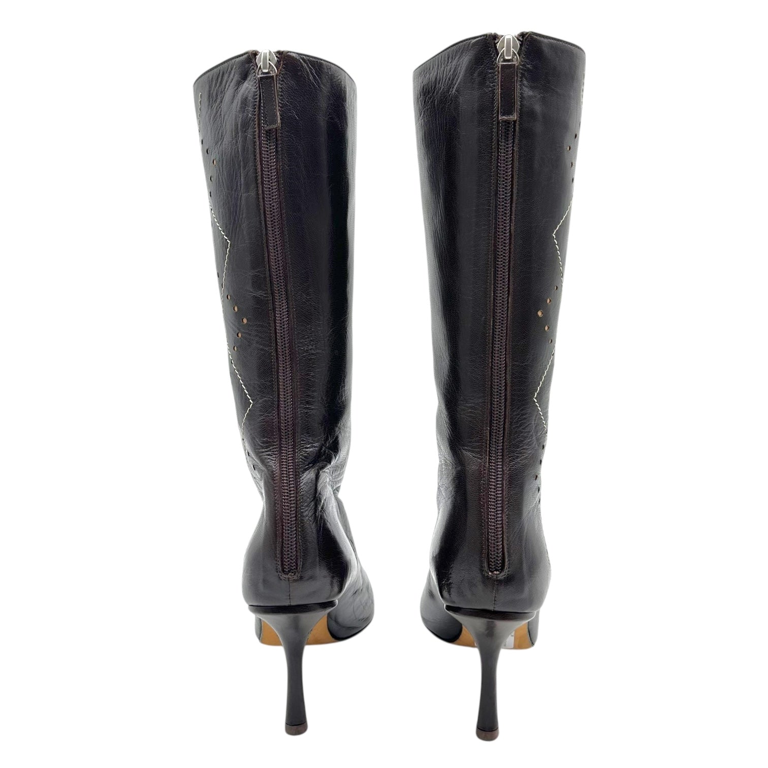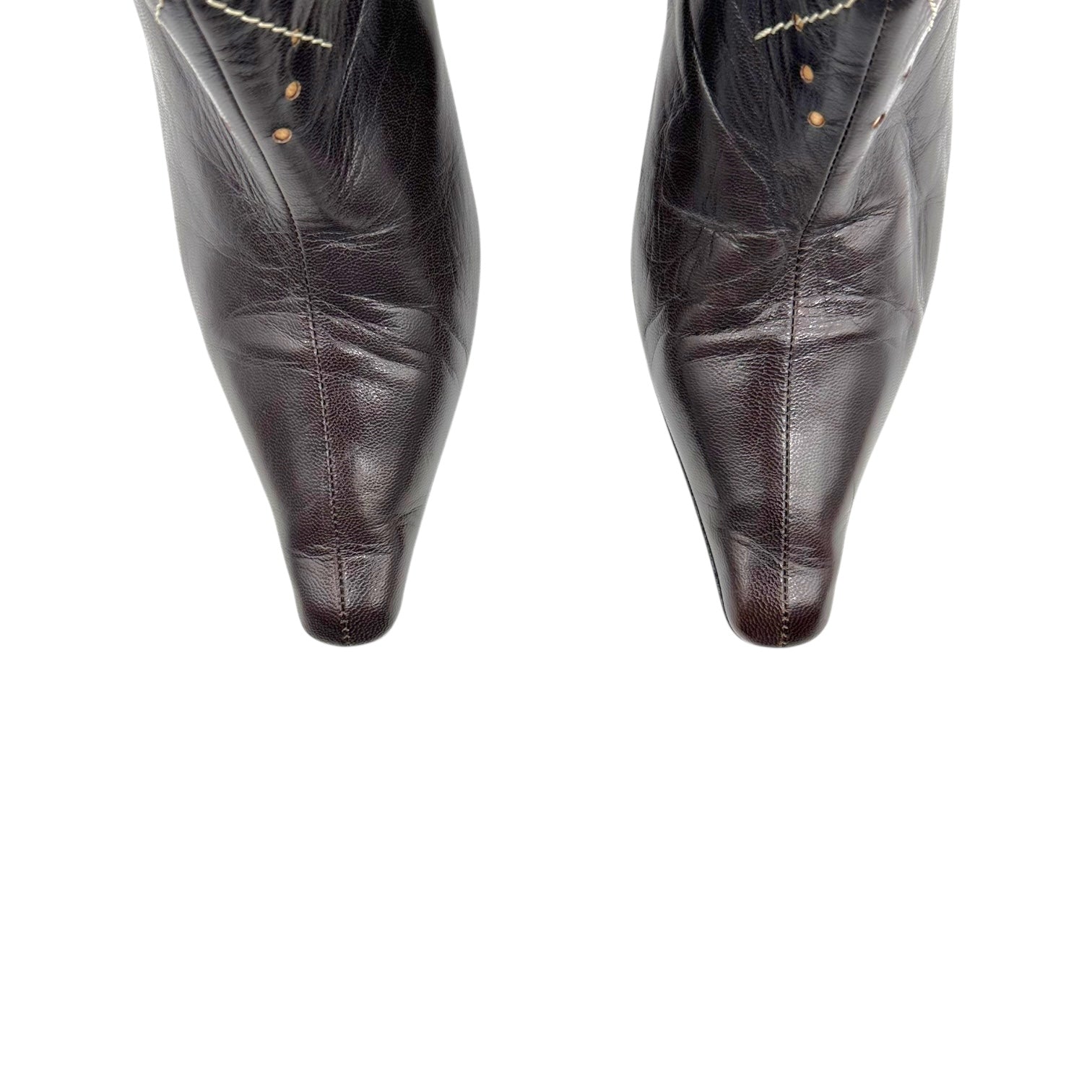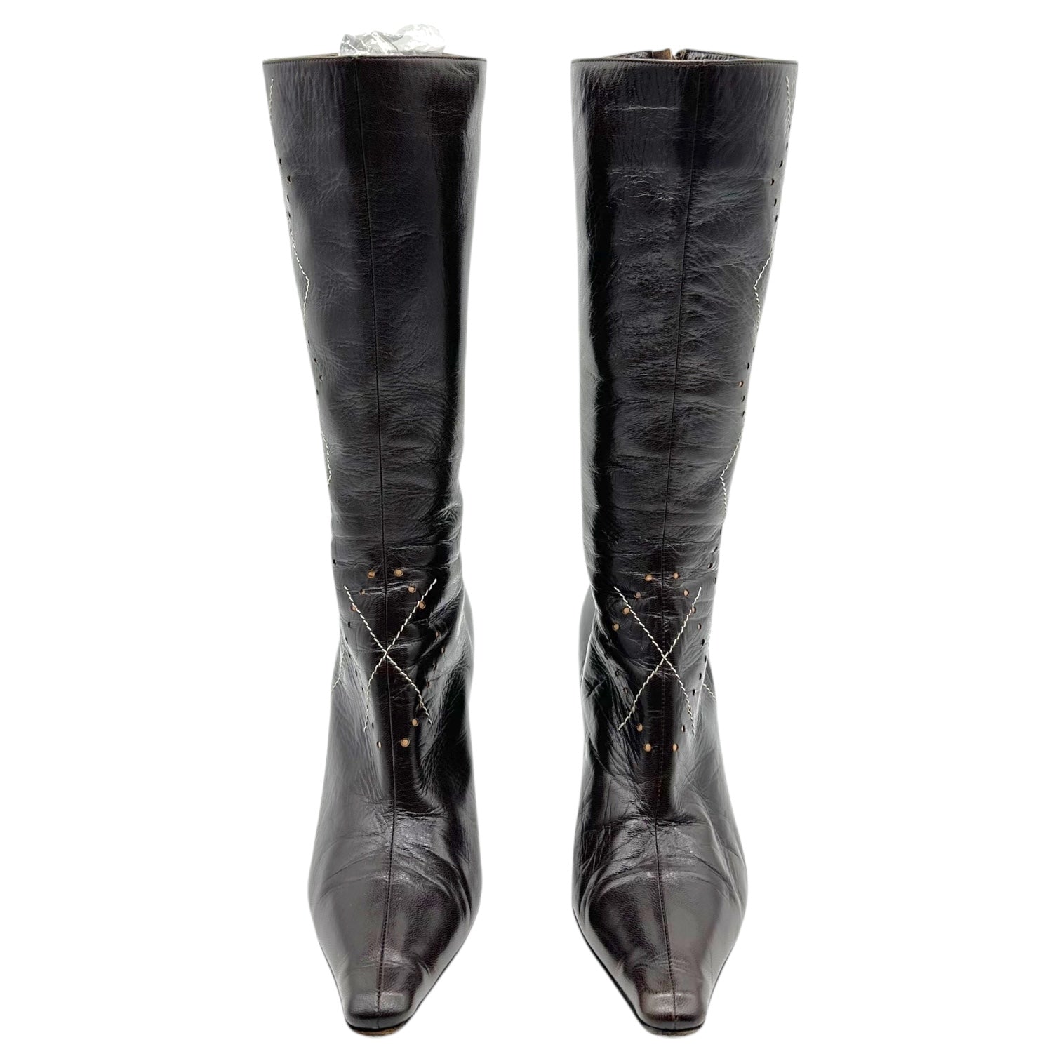 Jimmy Choo Brown Argyle Embroidered Pointed Toe Boots