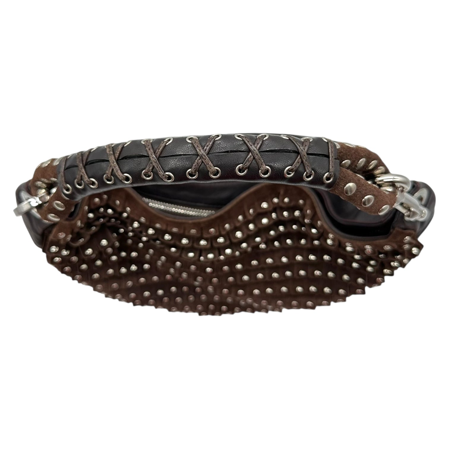 Jimmy Choo Brown Suede & Leather Studded Fringe Hobo Bag