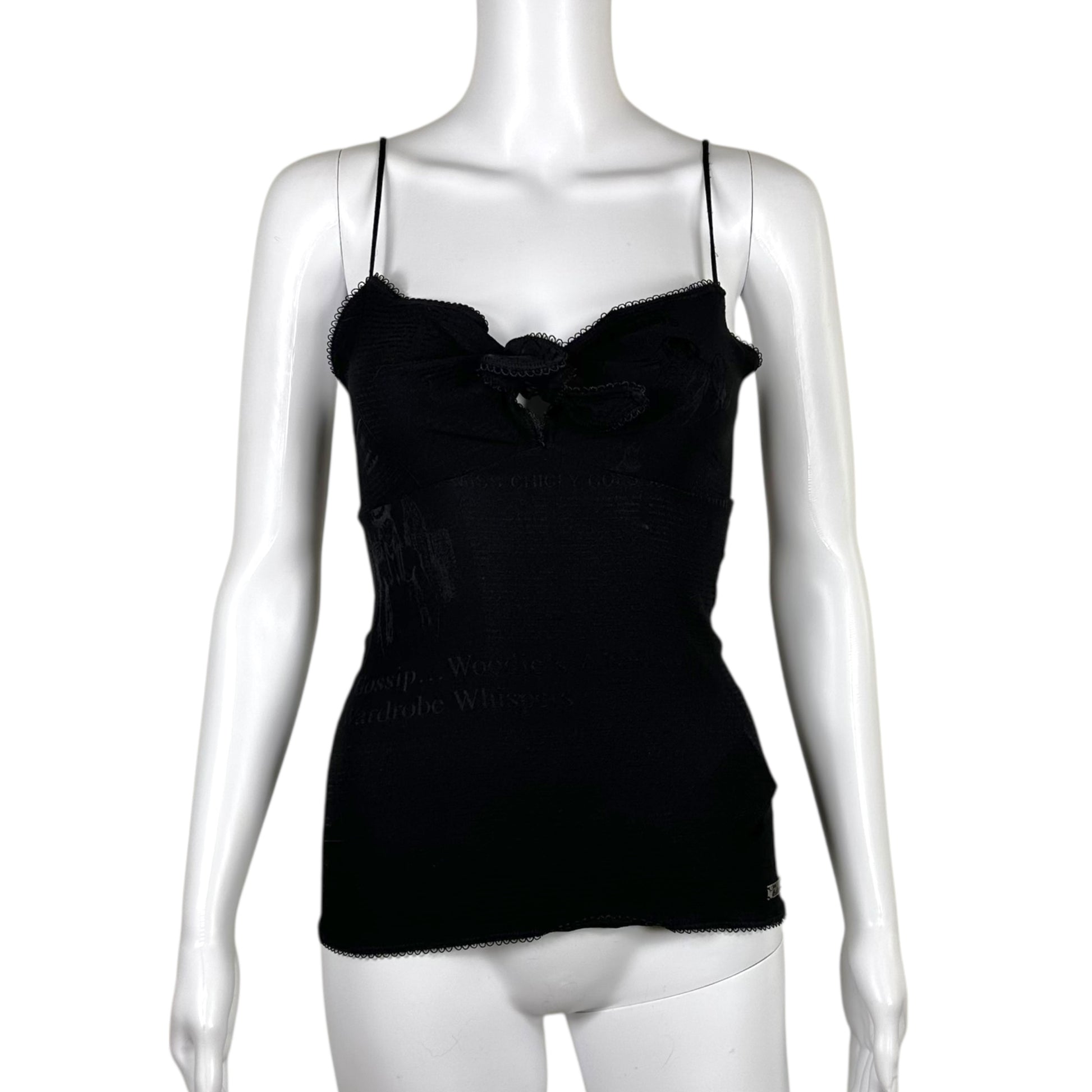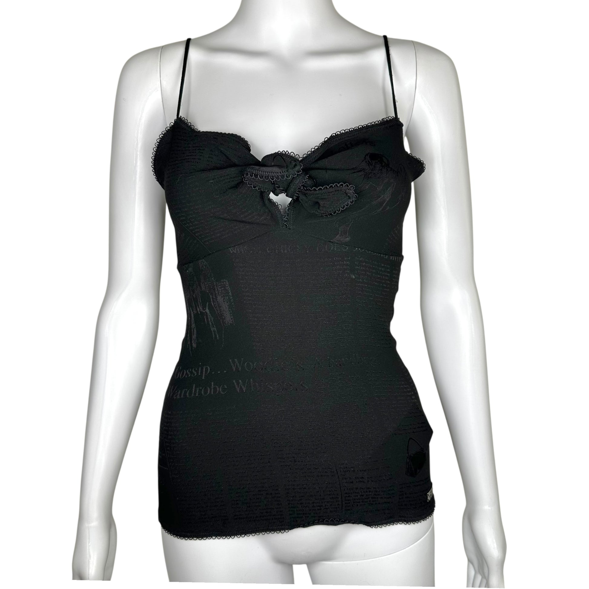 John Galliano S/S 2006 Silk Gazette Print Black Cami
