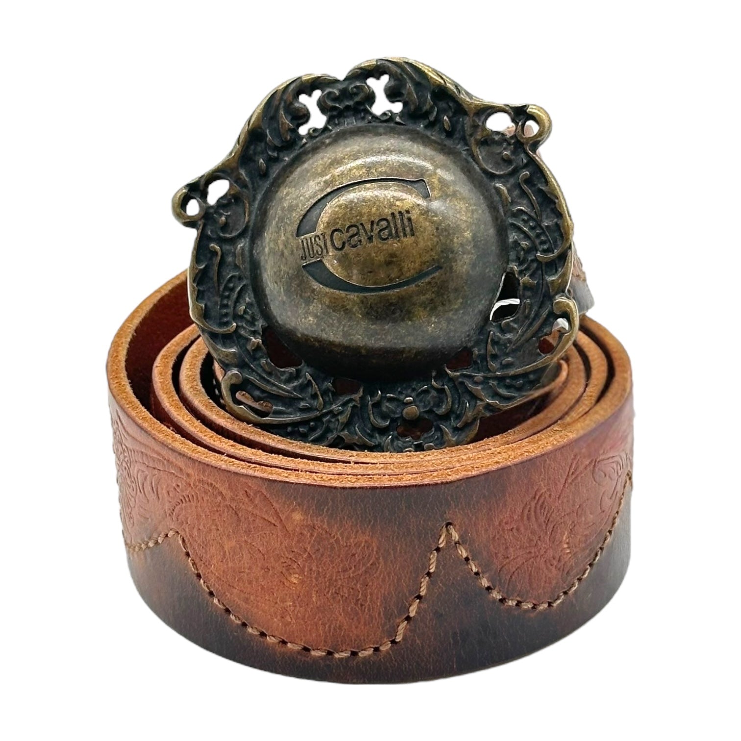 Just Cavalli Roberto Cavalli Brown Leather Logo Belt