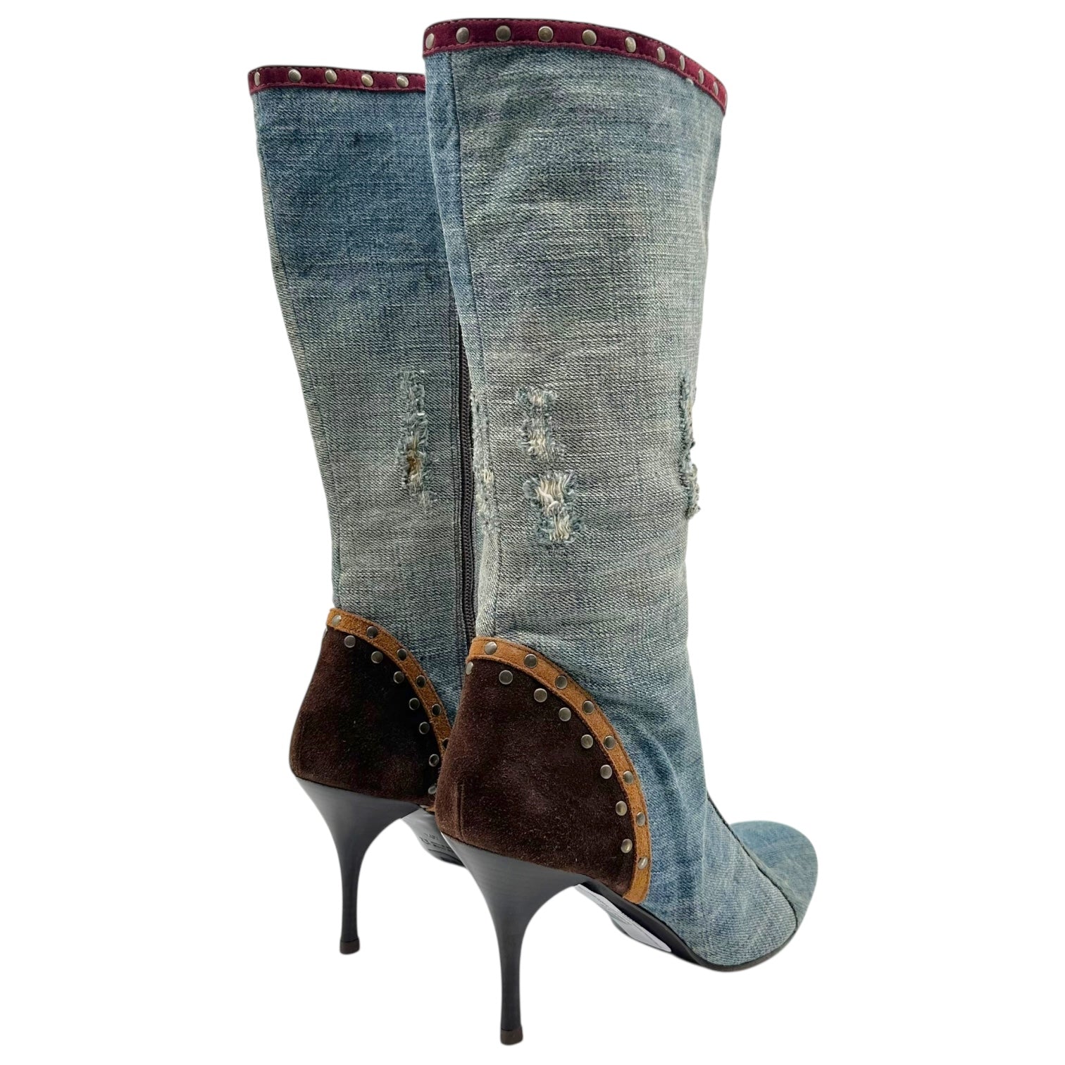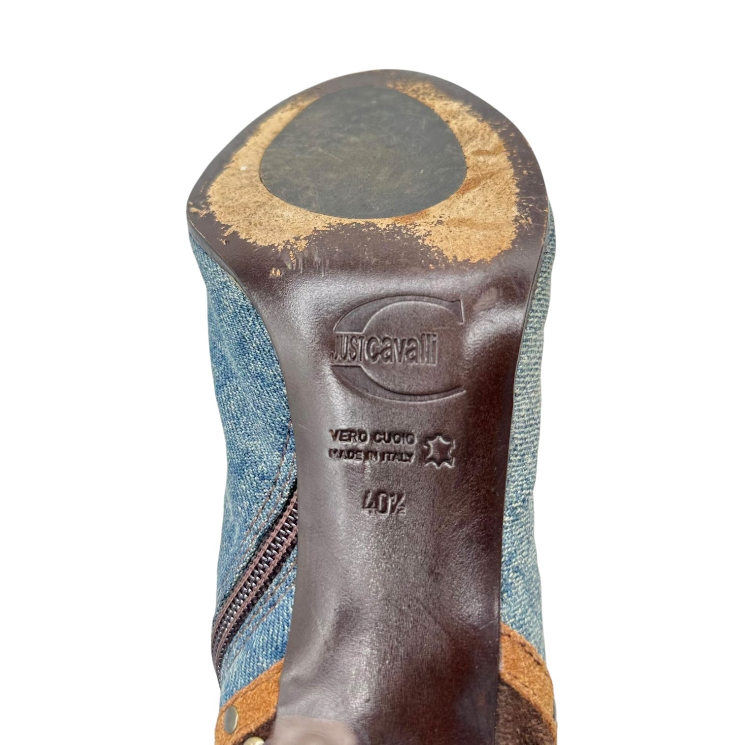 Just Cavalli Roberto Cavalli Denim Studded Heeled Boots