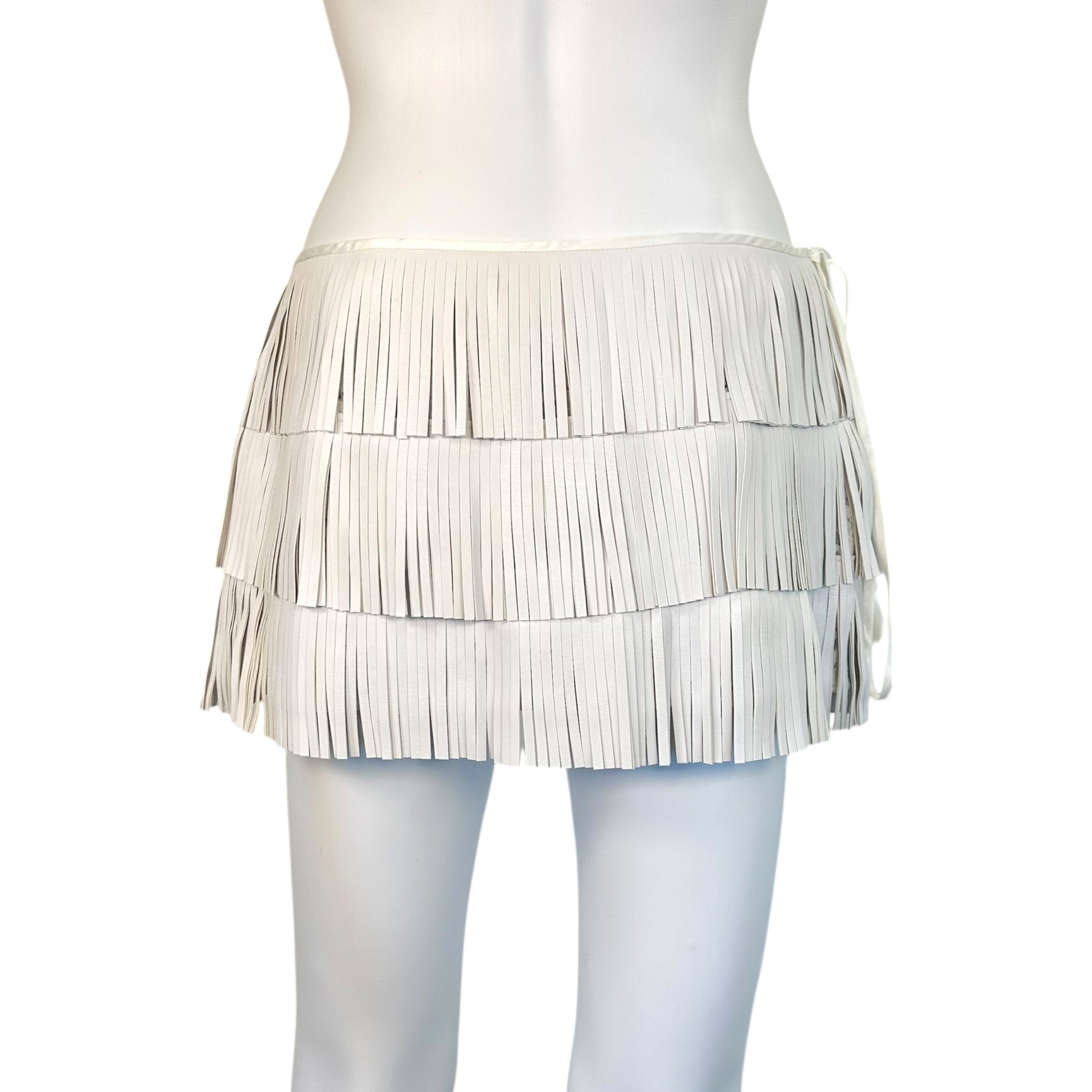 Kim Shui White Faux-Leather & Lace Micro Mini Fringe Skirt NEW