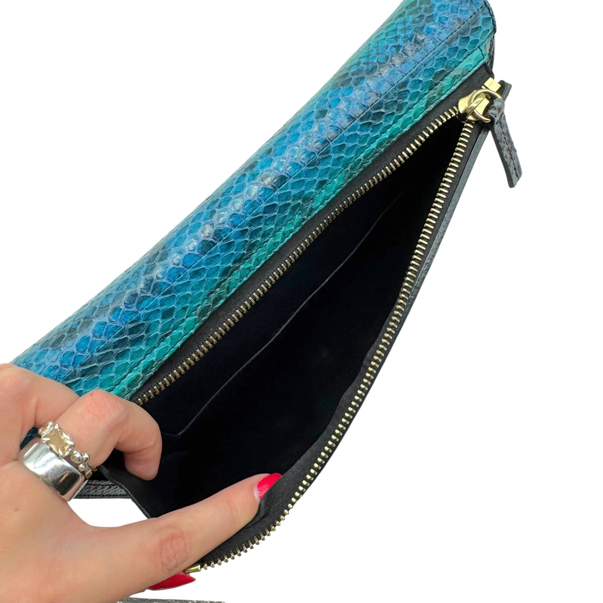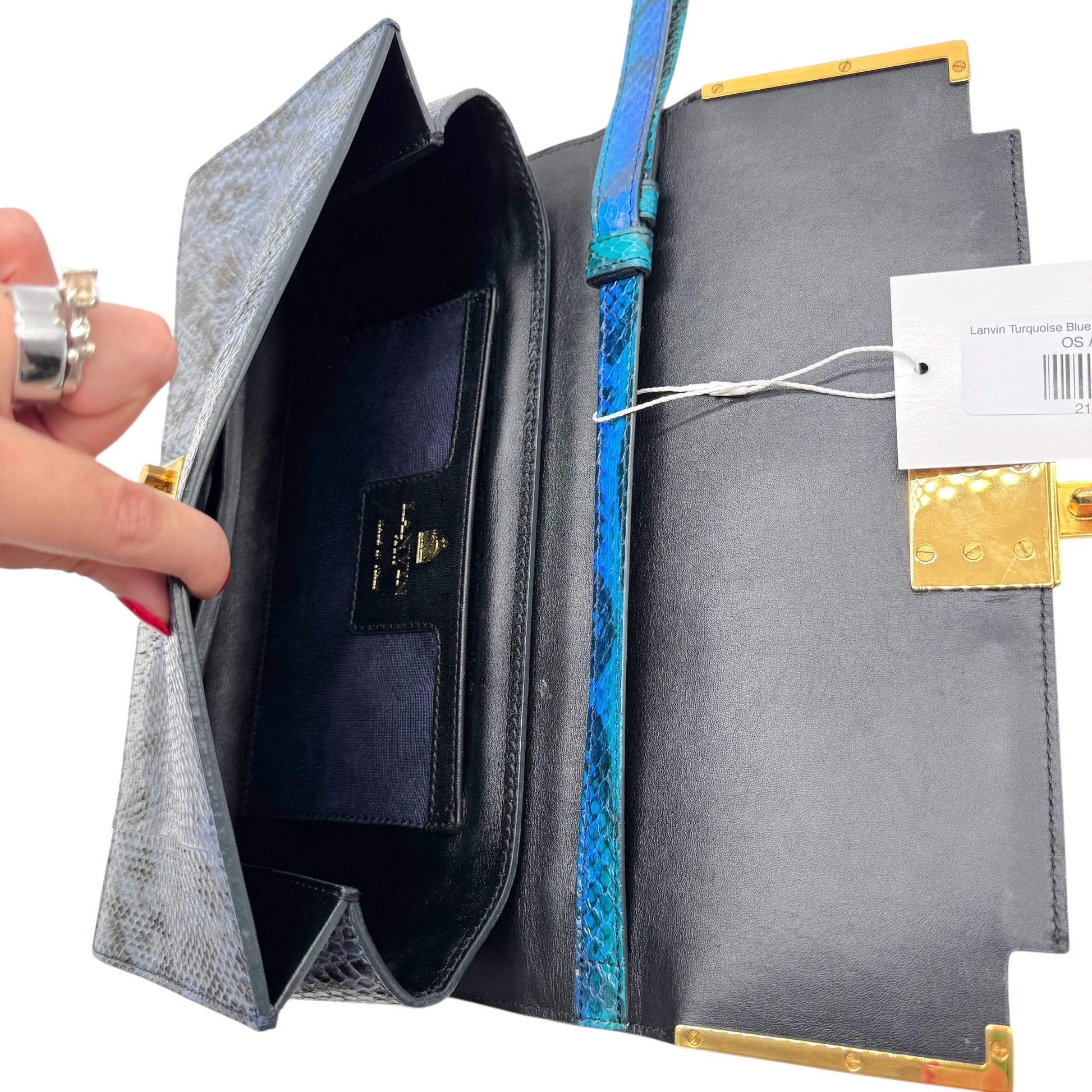 Lanvin Turquoise Blue Python & Stone Clutch Bag