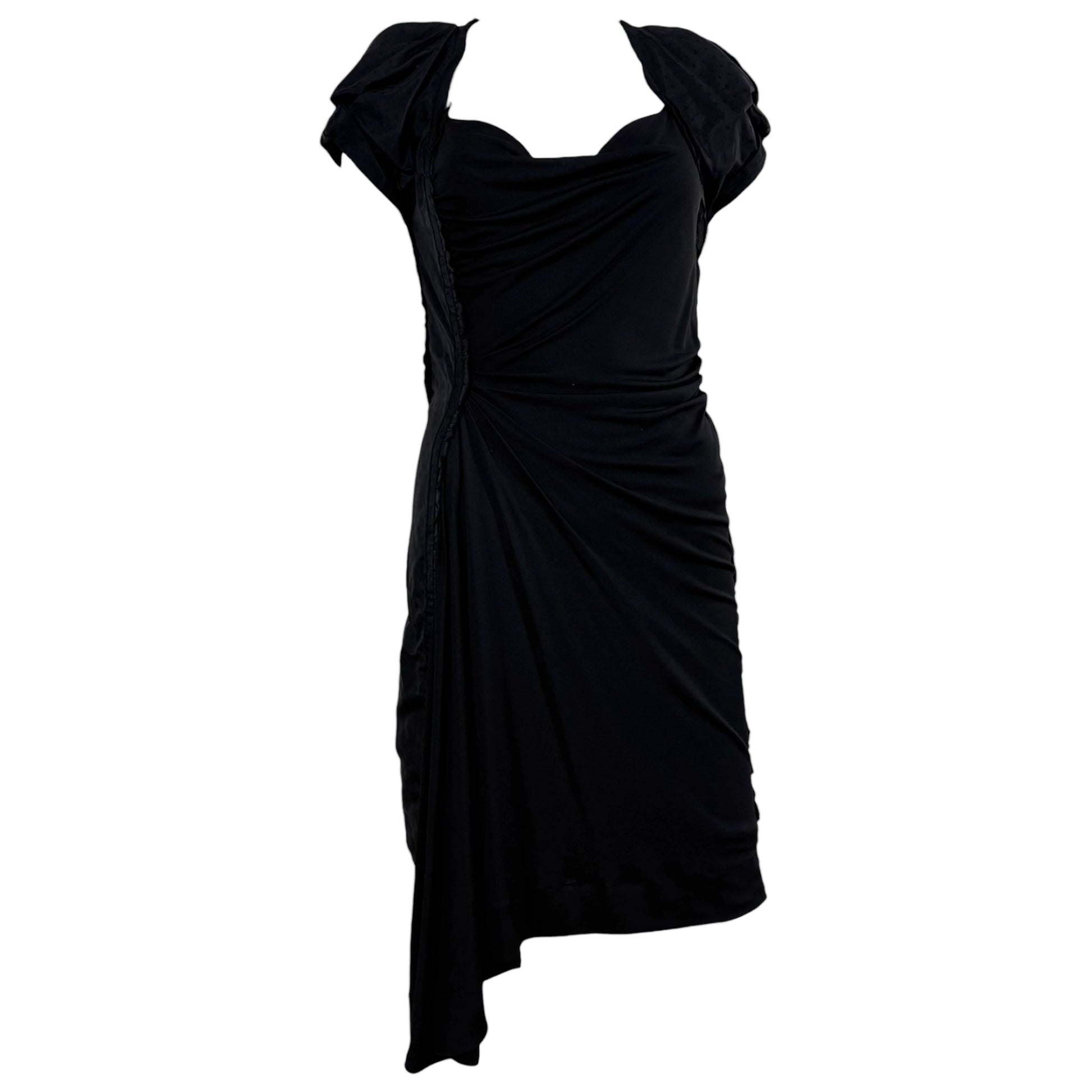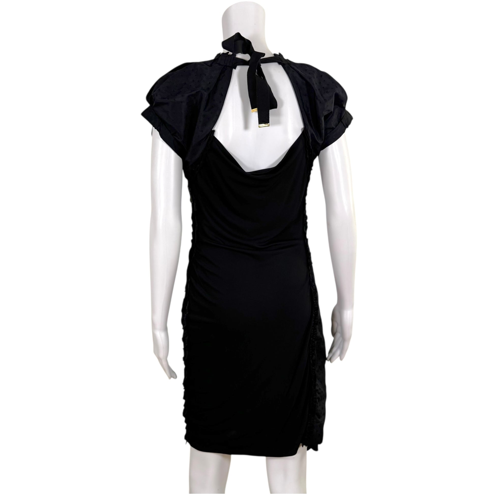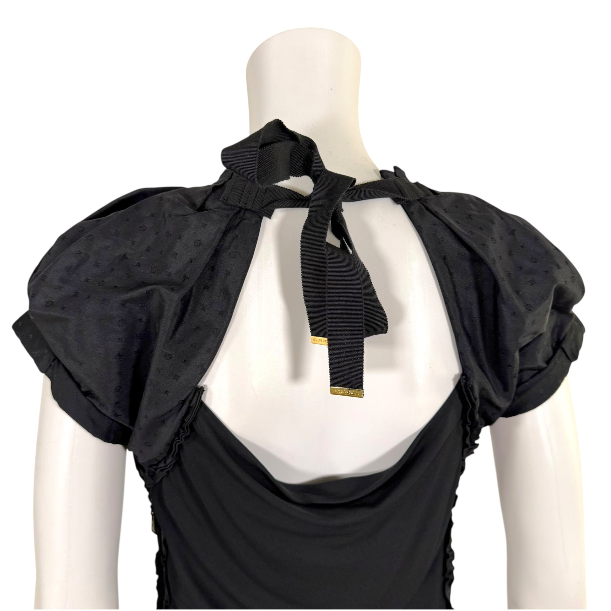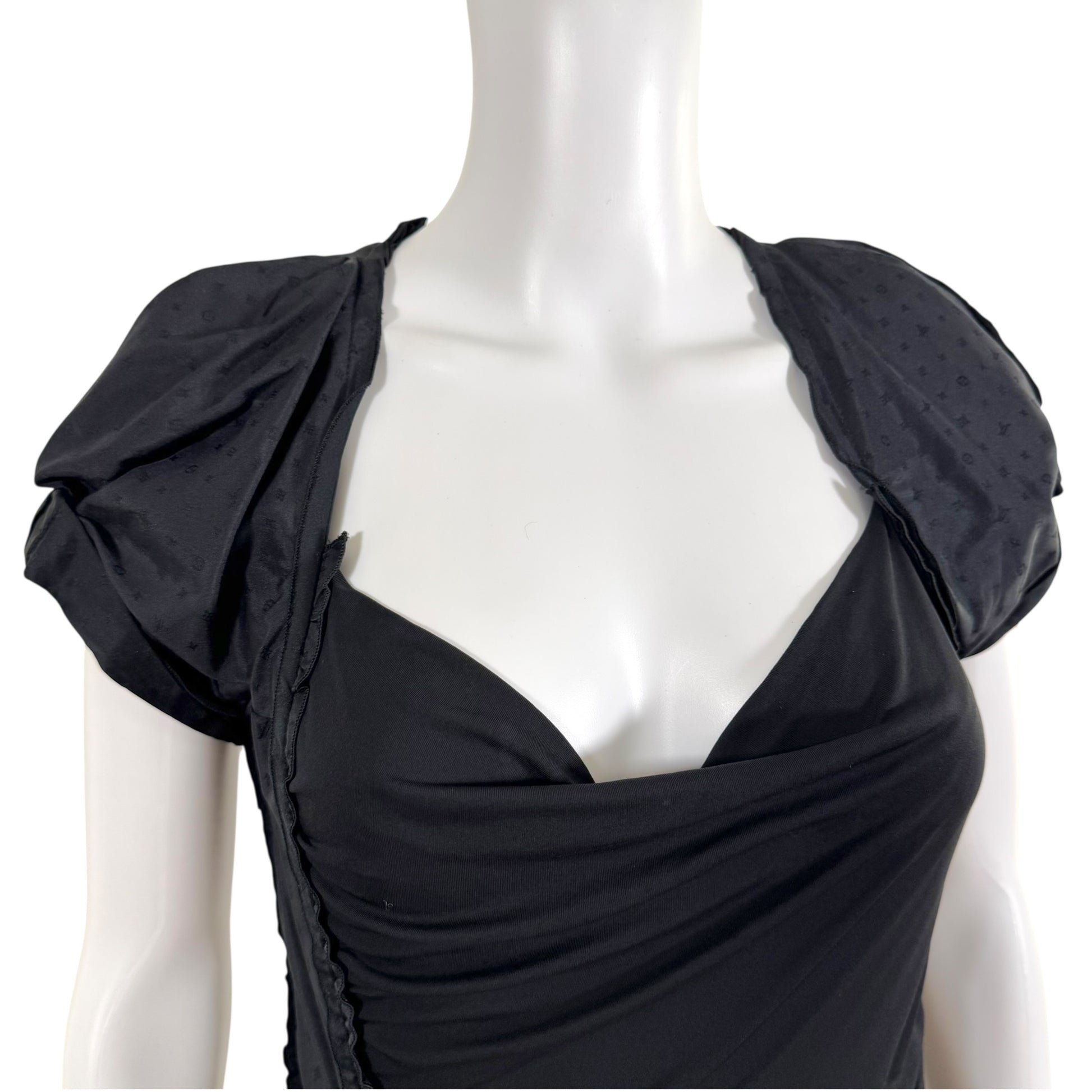 Louis Vuitton Black Logo Print Draped Silk Mini Dress