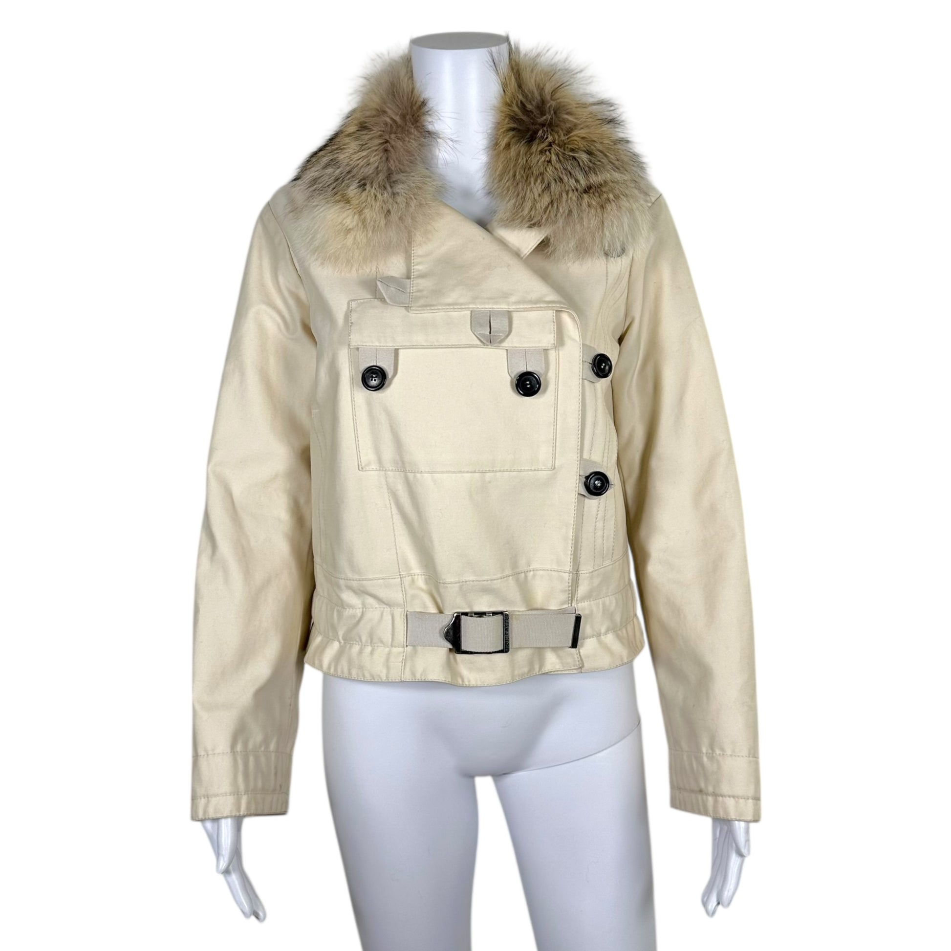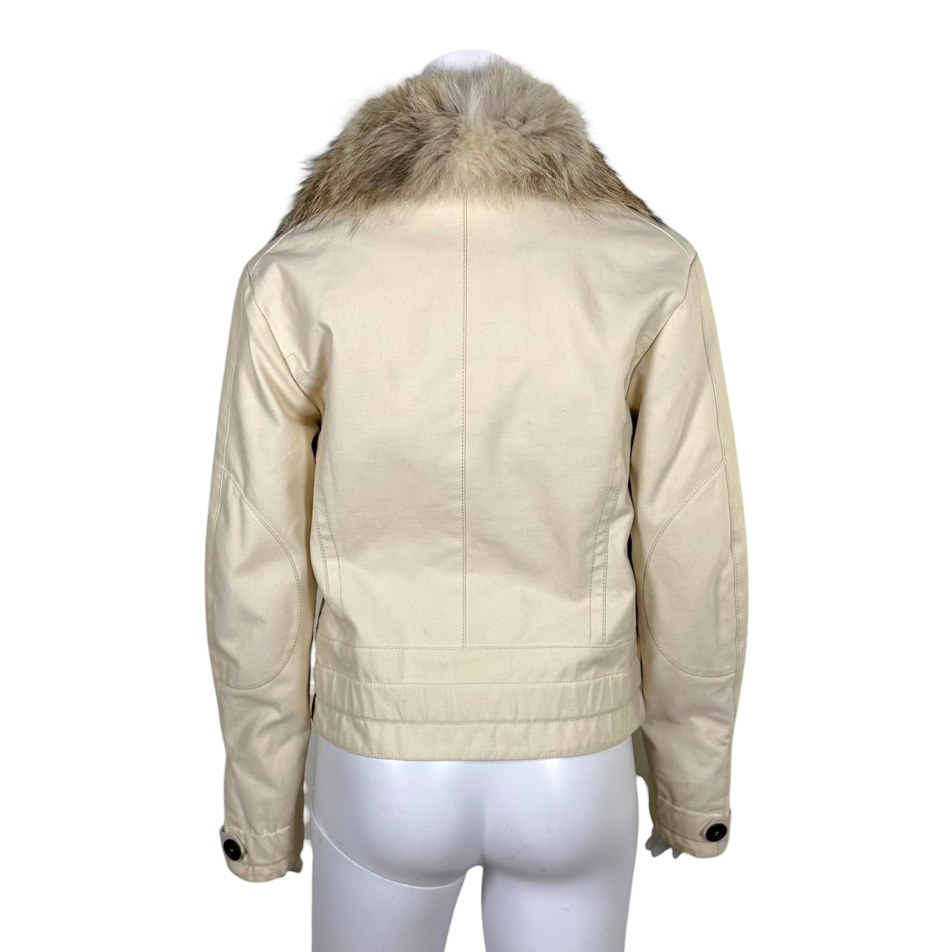 Louis Vuitton Ivory Button Front Fox Fur Collar Jacket